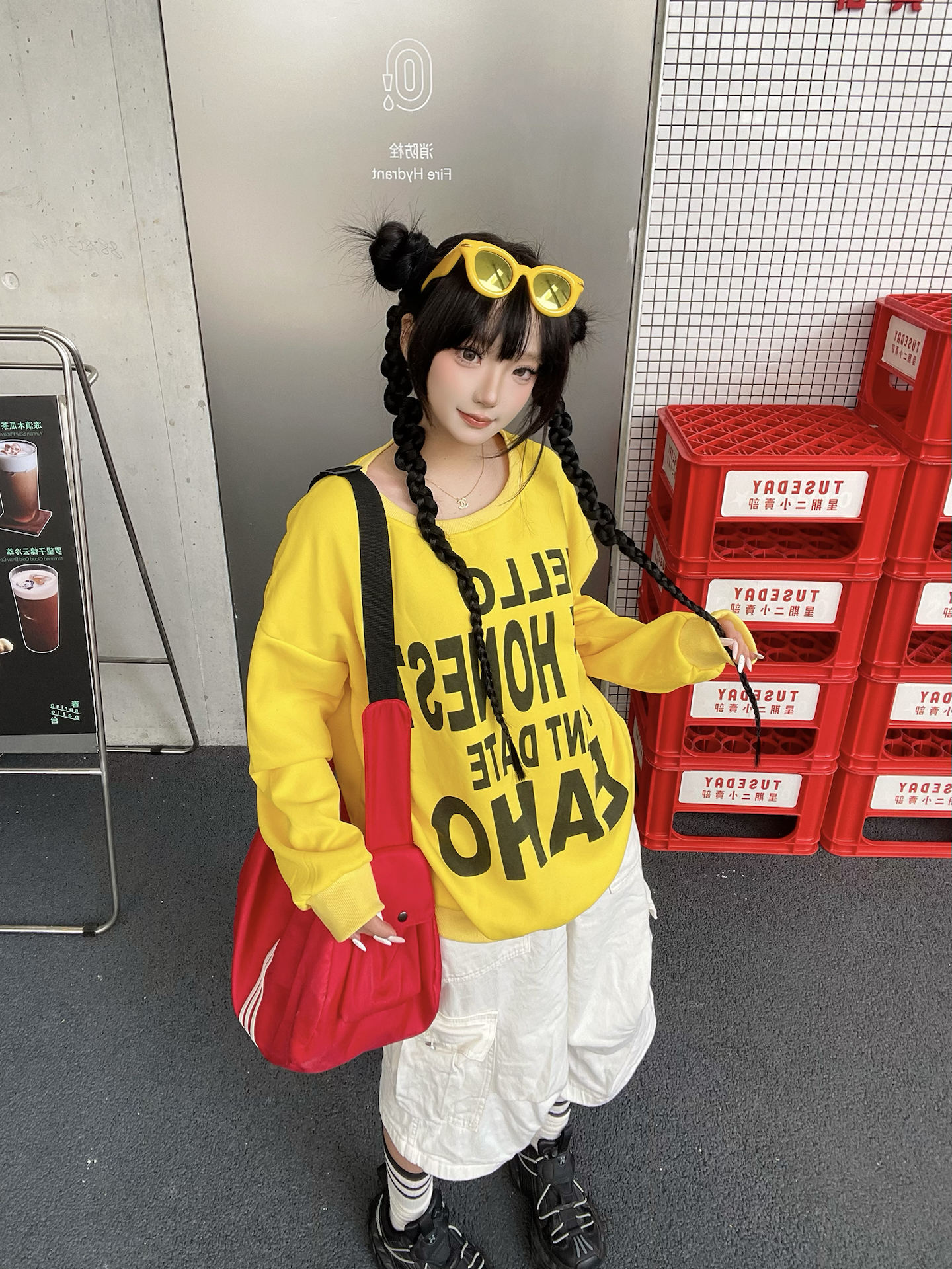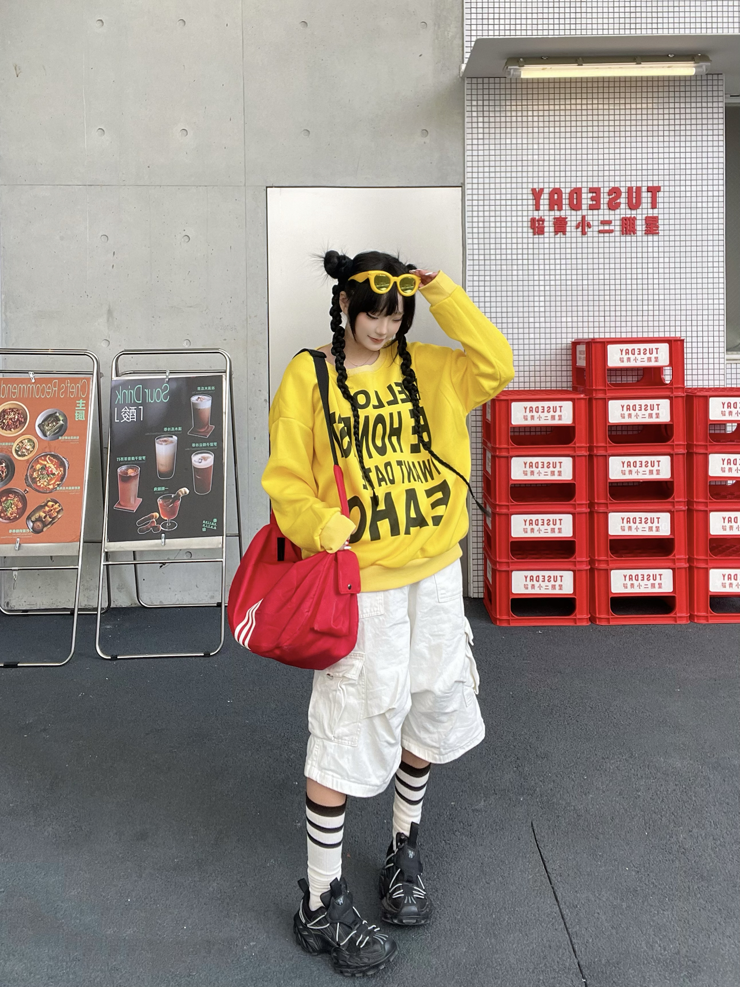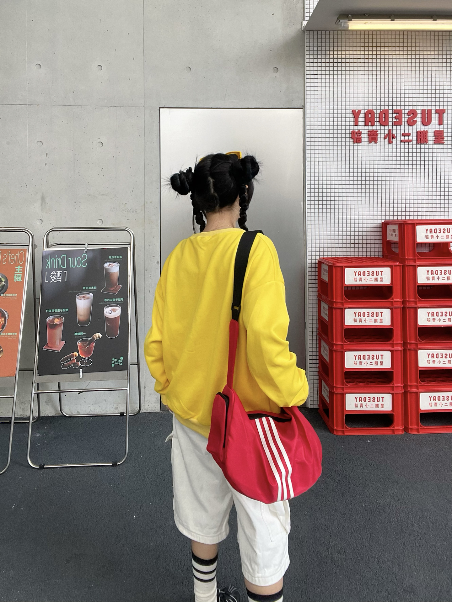 🗣️今日份穿搭分享来啦! 春日彩色系穿搭Look🌈:被这个明媚黄💛包围啦~ 超吸睛的亮黄色卫衣,穿上自带活力感✨,搭配同色系的圆框墨镜和红色包包📌,黄红撞色也太有多巴胺氛围惹📸(番茄🍅炒鸡蛋🍳配色~~) 包包容量也很大哦,早八党也可以轻松适配✅ #春日色彩穿上身 #街头重彩行动 #给春天点色彩震撼 #包包选对早八不累 #春日显色度穿搭