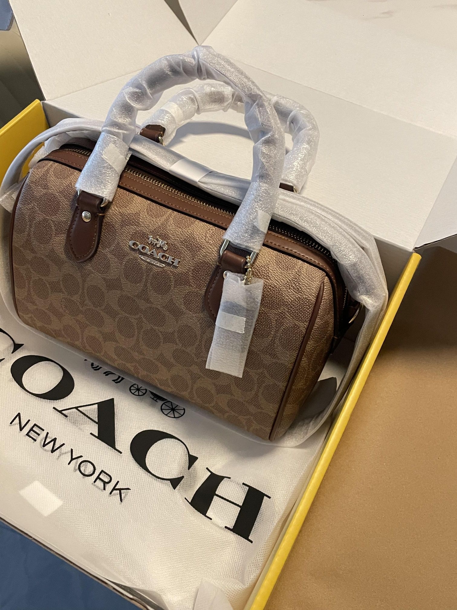 本篇笔记关联了Coach ROWAN 经典标志老花品牌徽标印花拉链开合涂层大容量人造革单肩手提包 棕黄色/棕色等商品,为用户提供真实的使用体验和购买参考。