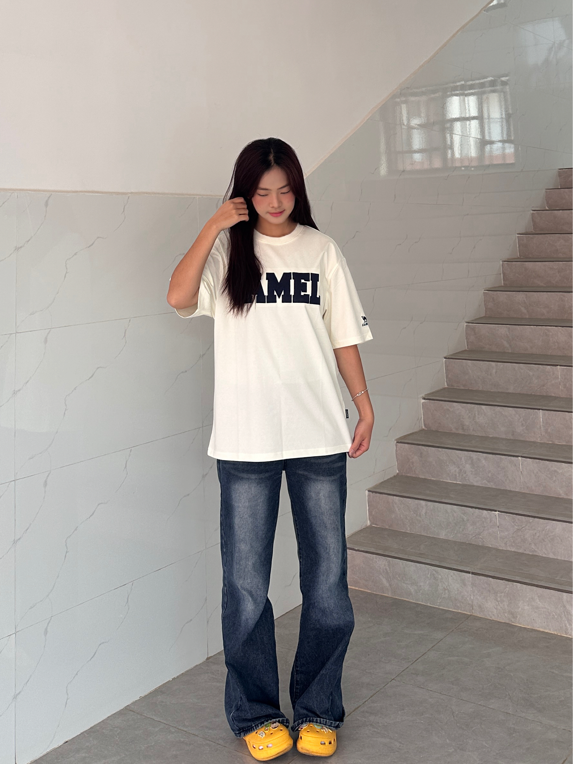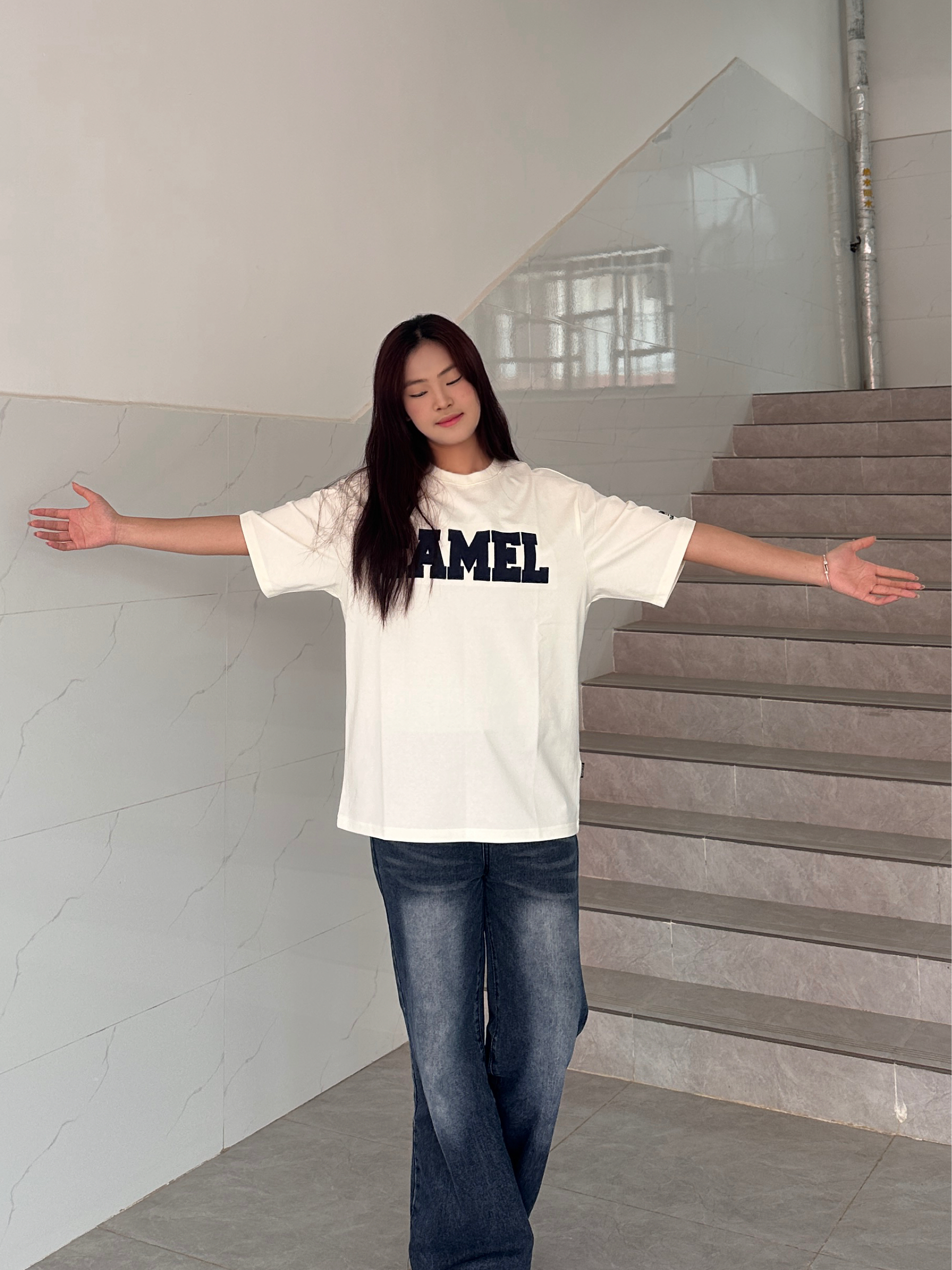 被这件CAMEL短袖圈粉了! 面料是那种透气的棉感,夏天穿不会闷汗,落肩设计对溜肩也很友好,藏蓝色字母印花刚好中和了米白的单调,洗了几次也没变形,性价比真的在线,已经打算再入个别的颜色了。