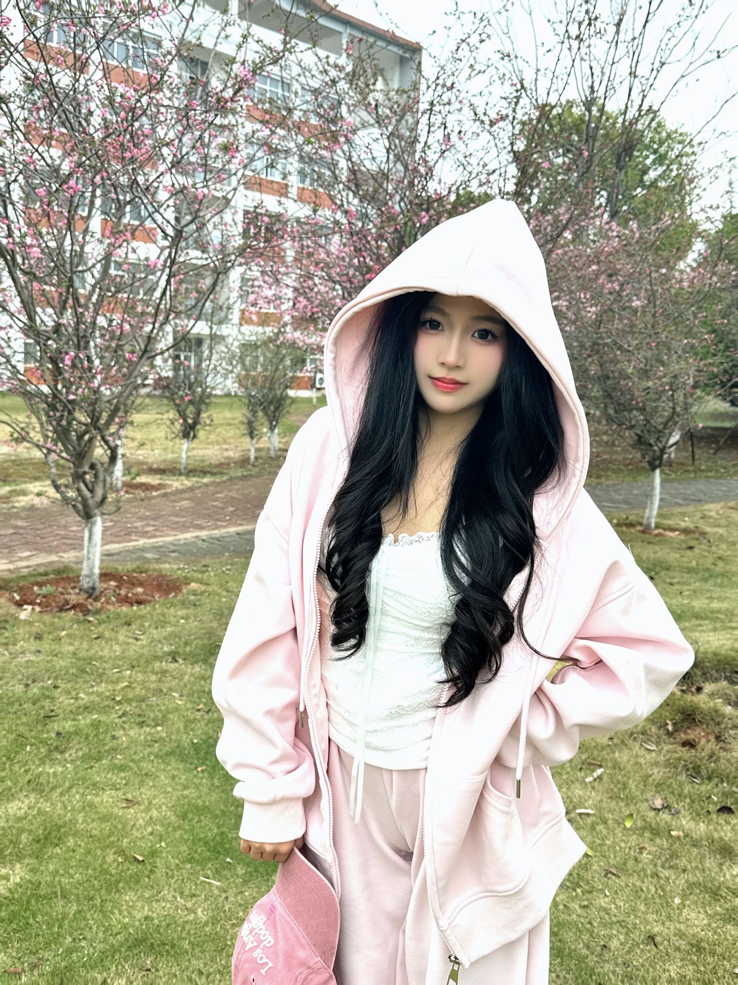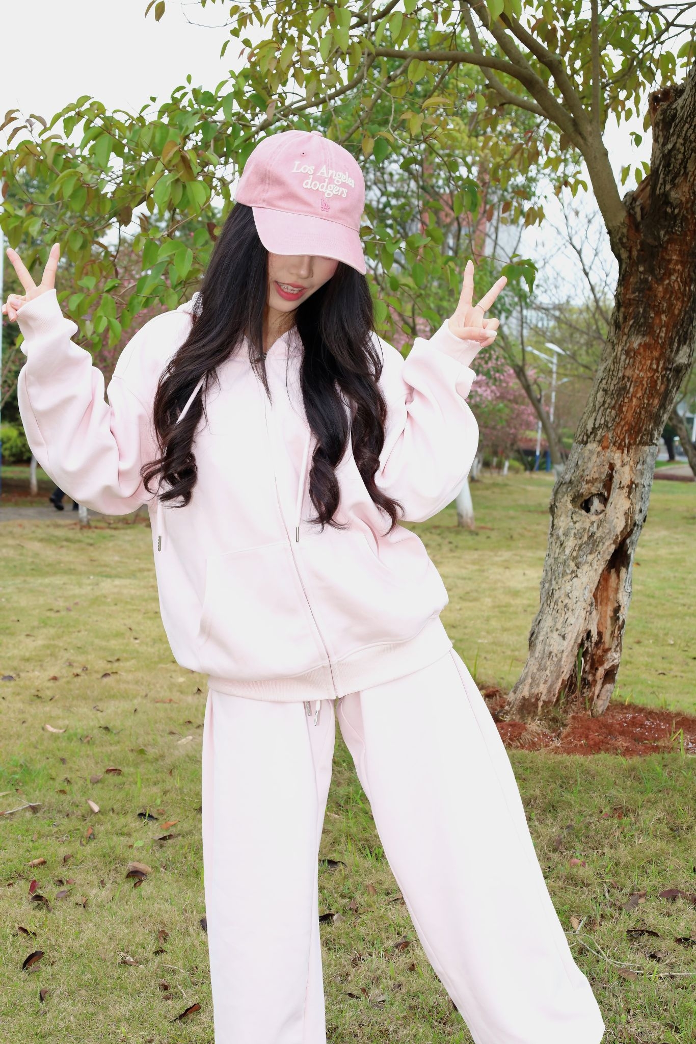 谁懂啊!这套奶fufu的粉色连帽套装直接戳中少女心 宽松版型藏肉又显瘦,卫衣+卫裤一套出门超省心~ 搭配同色系棒球帽,甜酷感拉满! 软乎乎的面料超舒服 温柔又元气 穿上就是行走的春日画报 毫不费力的慵懒感穿搭 氛围感直接拉满!