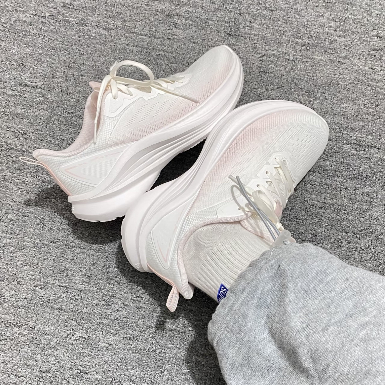 一眼就被这双李宁轻风v3跑步鞋给戳中了 粉嫩嫩的配色我好喜欢~🍃清爽干净 上脚感我觉得也很舒服 中底回弹感很不错 跑步的时候🏃缓震效果很明显 日常搭配也是少女心爆棚滴