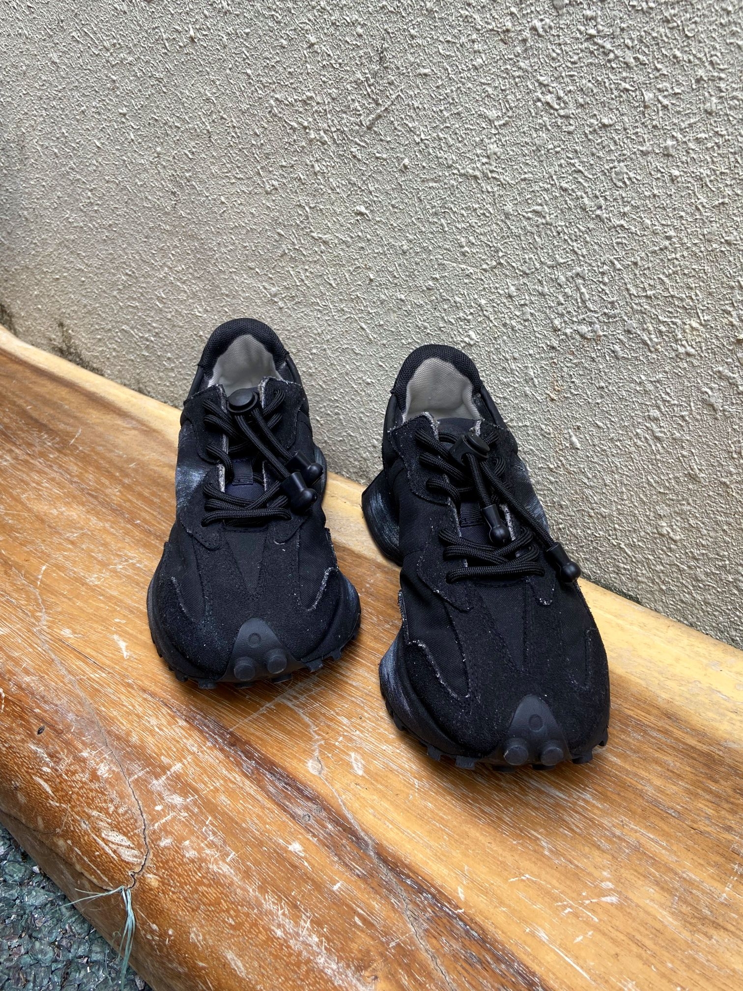 这双鞋的暗黑做旧设计真的太有腔调了!全黑鞋面搭配银灰色刷漆纹理,自带颓废又高级的街头氛围感,上脚瞬间变身酷感十足的穿搭主角,不管是配工装裤、阔腿裤还是暗黑系裙装都超适配。 鞋面采用麂皮+帆布拼接,质感扎实又透气,春夏穿也不会闷脚。抽绳锁扣设计太省心了,一拉就能固定,不用反复系鞋带,懒人党狂喜。 锯齿状的复古大底,缓震和抓地力都在线,日常通勤、逛街暴走都很稳,脚感软弹不压脚。而且做旧设计特别...