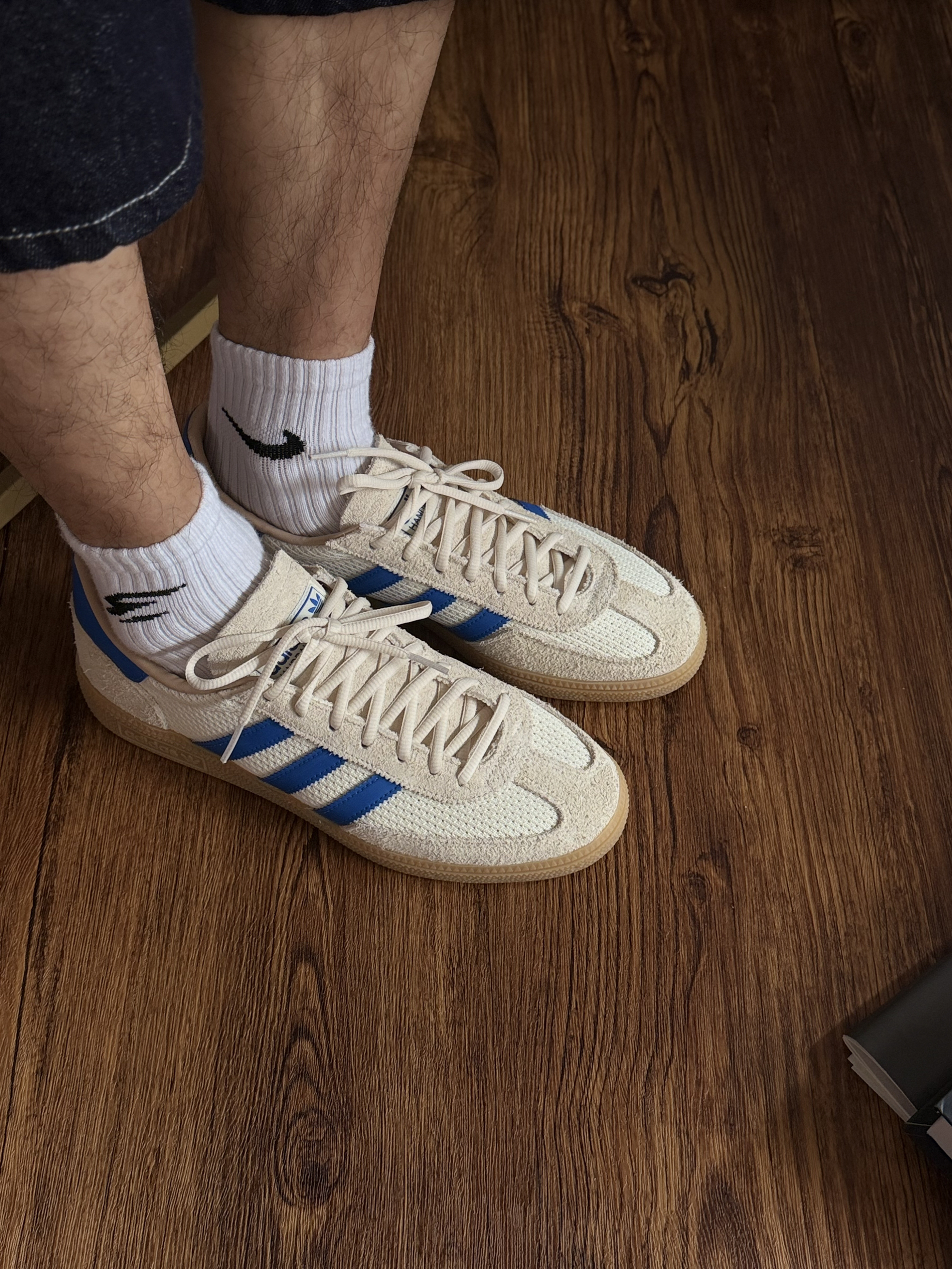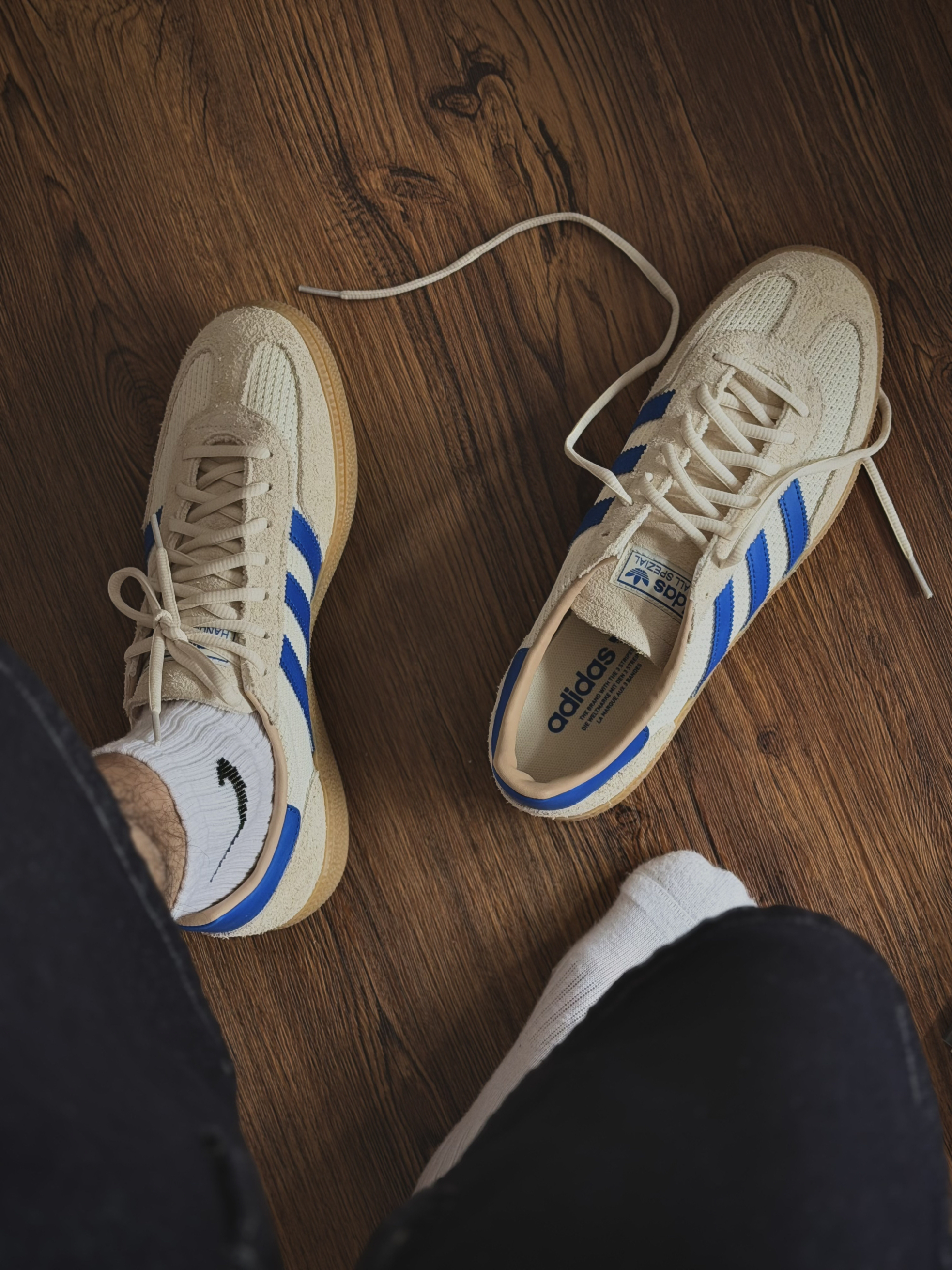 兄弟们,这双 adidas Handball Spezial 乳白色,我盯了好久。 复古德训鞋型,乳白配色干干净净,上脚是真的好看。配牛仔裤、工装裤都顺眼,越看越“有味”。 ⚠️但是❗️但是啊❗️ 我刚上脚一会,就感觉脚板不舒服,感觉有点压脚,之前穿德顺鞋也没出现这种情况,是因为我扁平足的原因吗?我本身就是扁平足,平时穿一些鞋底偏平的板鞋也没有这种情况啊,但这双Handball Spezia...