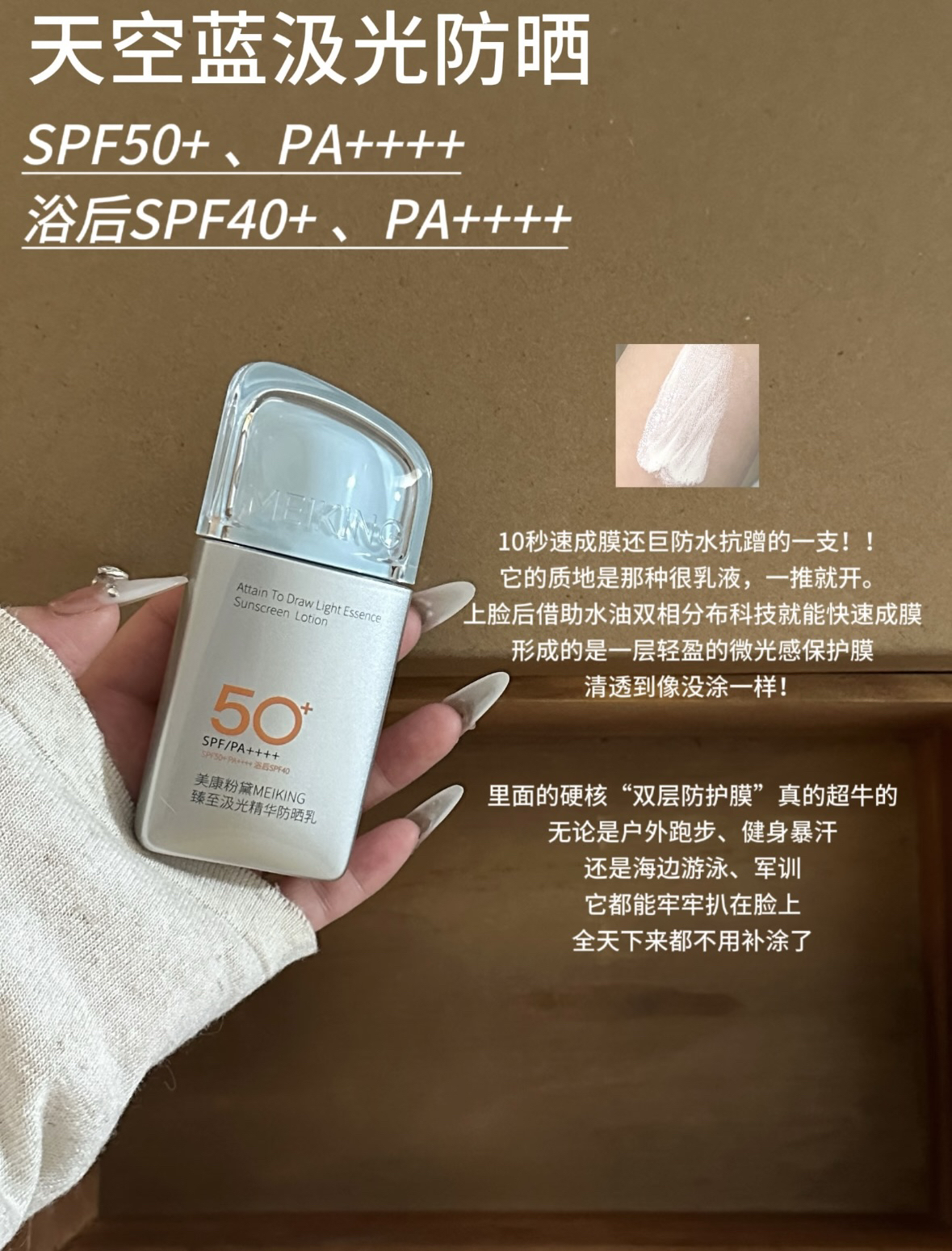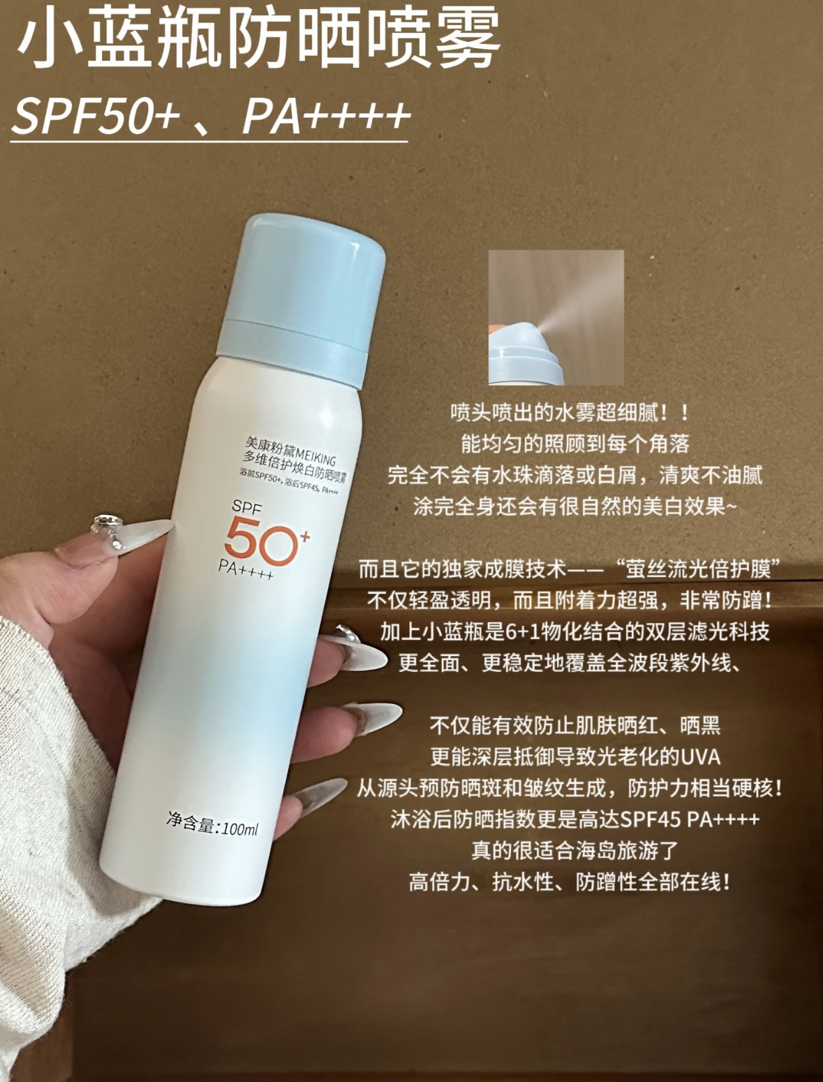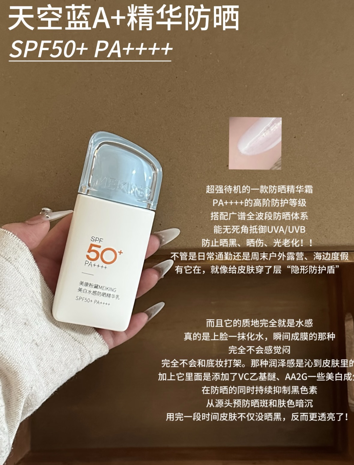 本篇笔记关联了美康粉黛 多维倍护焕白防晒喷雾 SPF50+/PA++++ 高倍50倍防紫外线全身通用防水 防紫外线、美康粉黛 美白水感精华防晒乳 持久清爽不油腻抗光老防晒黑 清爽保湿 SPF50+/PA++++、美康粉黛 汲光防晒霜 SPF50+/PA++++ 防紫外线防水防汗 防水防汗等商品,为用户提供真实的使用体验和购买参考。