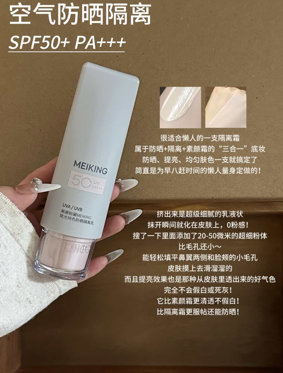 告别选择困难!我们为你梳理了美康粉黛四条专业防晒线的核心优势,无论通勤、养肤、玩水还是补涂,都能找到你的“本命防晒”。 ☀️ 日常通勤/快速出门:选「空气防晒隔离乳」 一支实现防晒、隔离、提亮“三合一”的懒人底妆。SPF50+ PA+++高倍防护,乳液质地含超细粉体,能瞬间填平毛孔,提亮均匀肤色,呈现零粉感伪素颜,赶时间必备。 🧴 护肤养肤/高阶防护:选「A+精华防晒」 防晒界的“精华霜”...