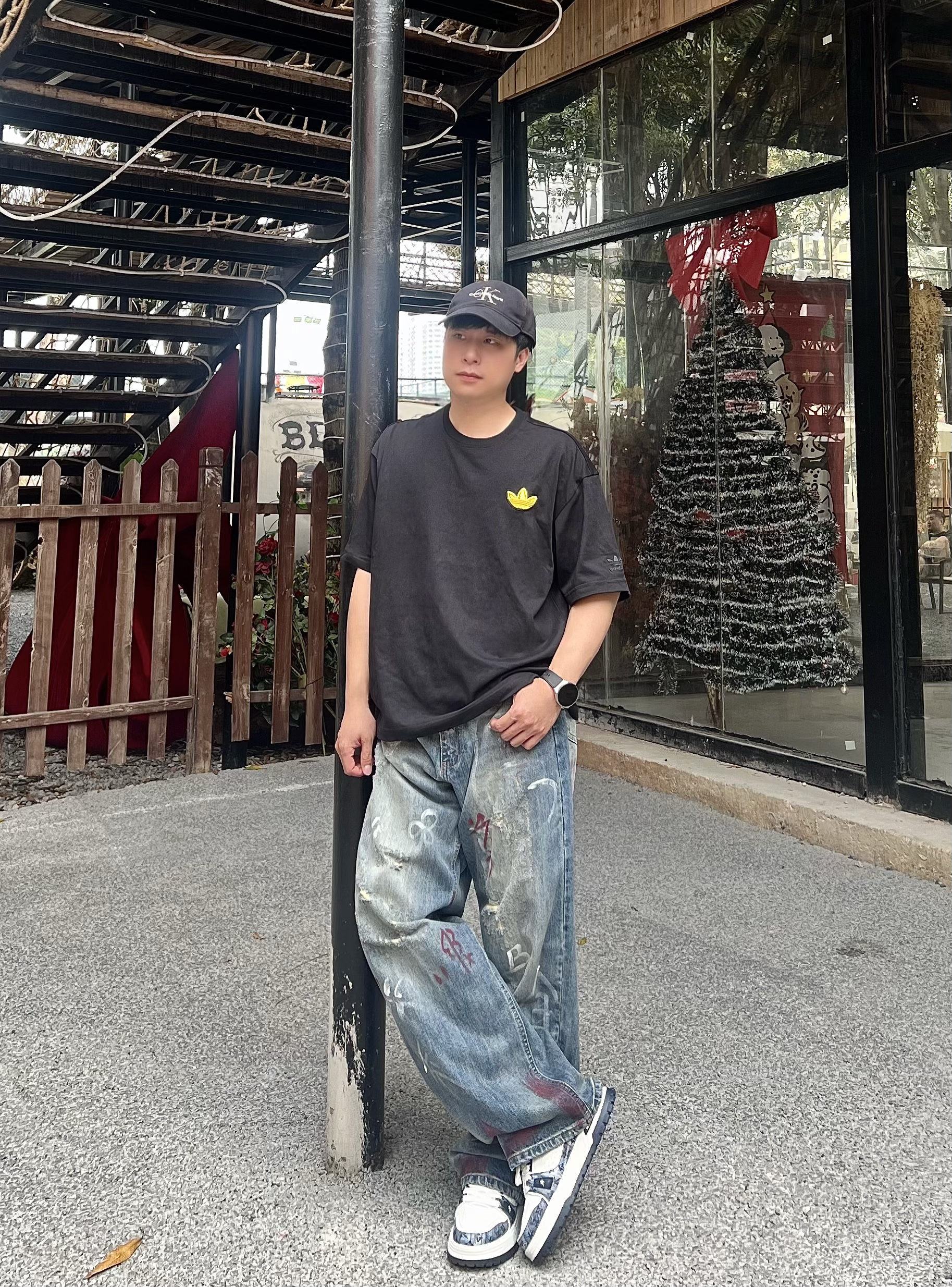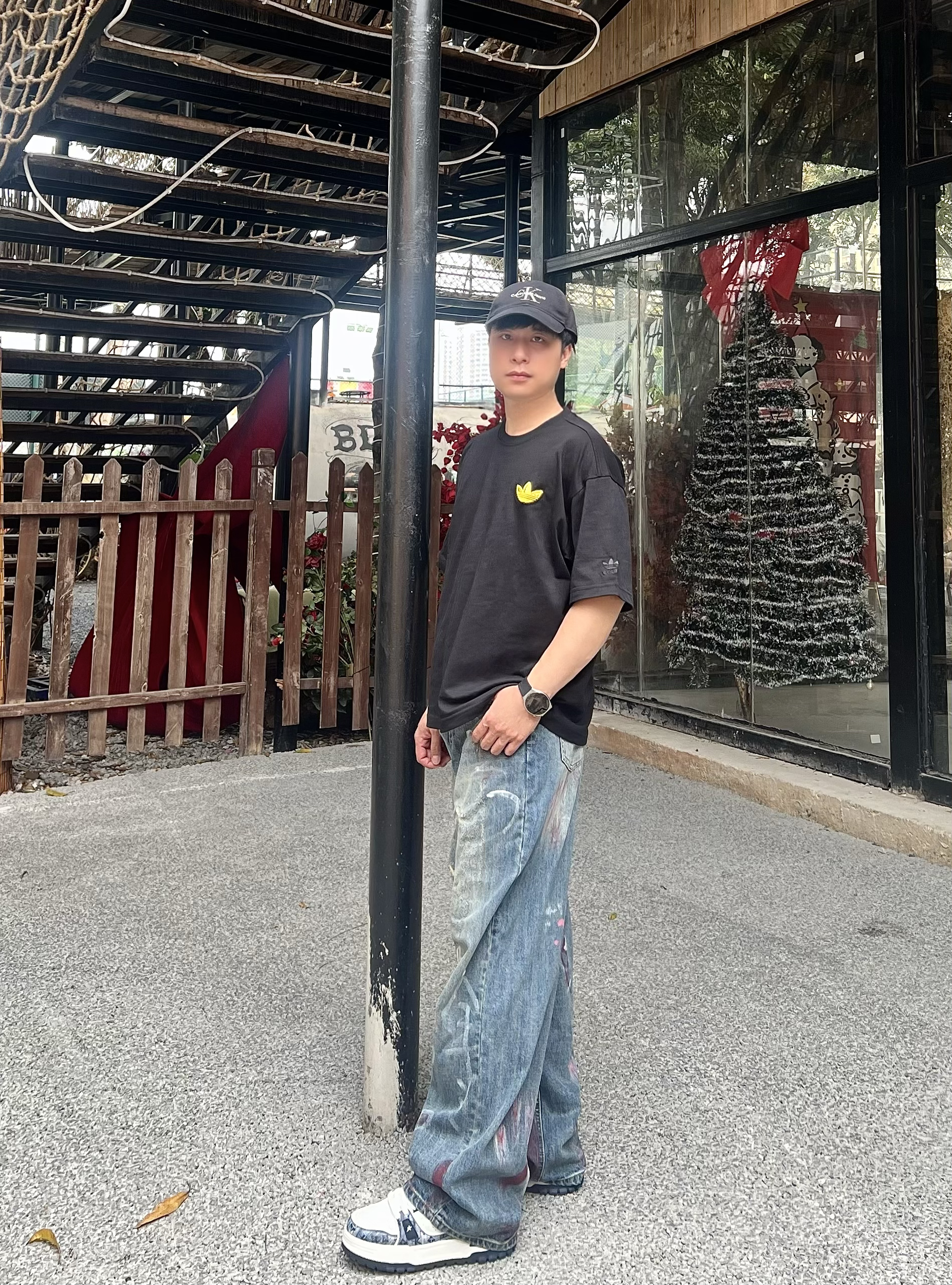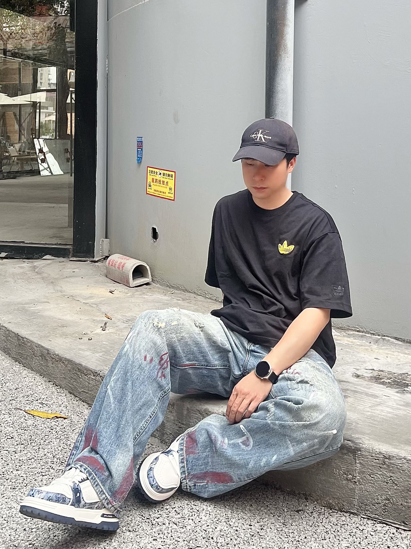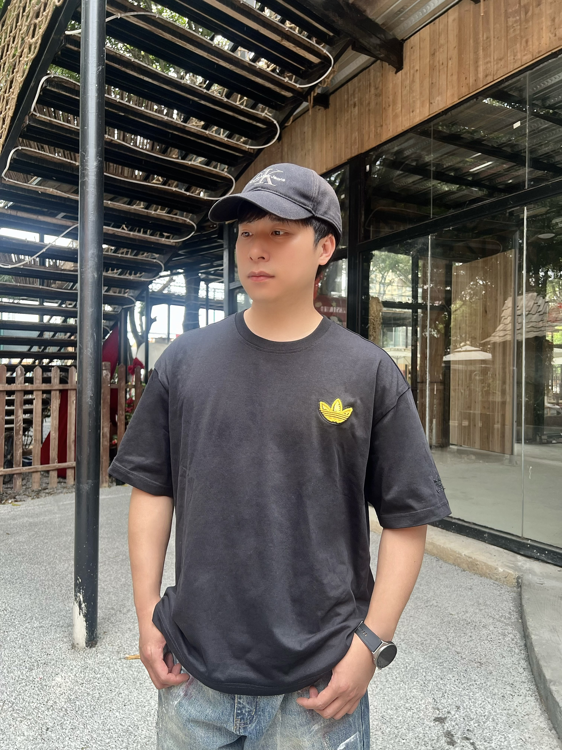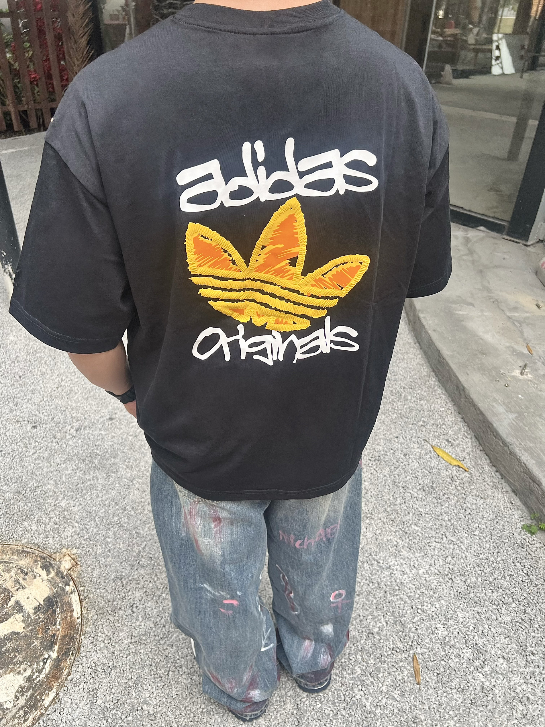 真的对这种有反差感的男生毫无抵抗力! 正面看是干净清爽的黑T少年⚡️转身就是自带氛围感的美式街头帅哥💕夏天这么穿回头率直接爆表😎 这件阿迪双设计黑T🔥正面黄色小刺绣简约干净💦背面毛巾绣大logo亮眼不土气💫宽松落肩版型慵懒不油腻🌱 搭配做旧牛仔裤和板鞋👟随手一拍都是氛围感大片📸约会穿直接拉满好感度🫰