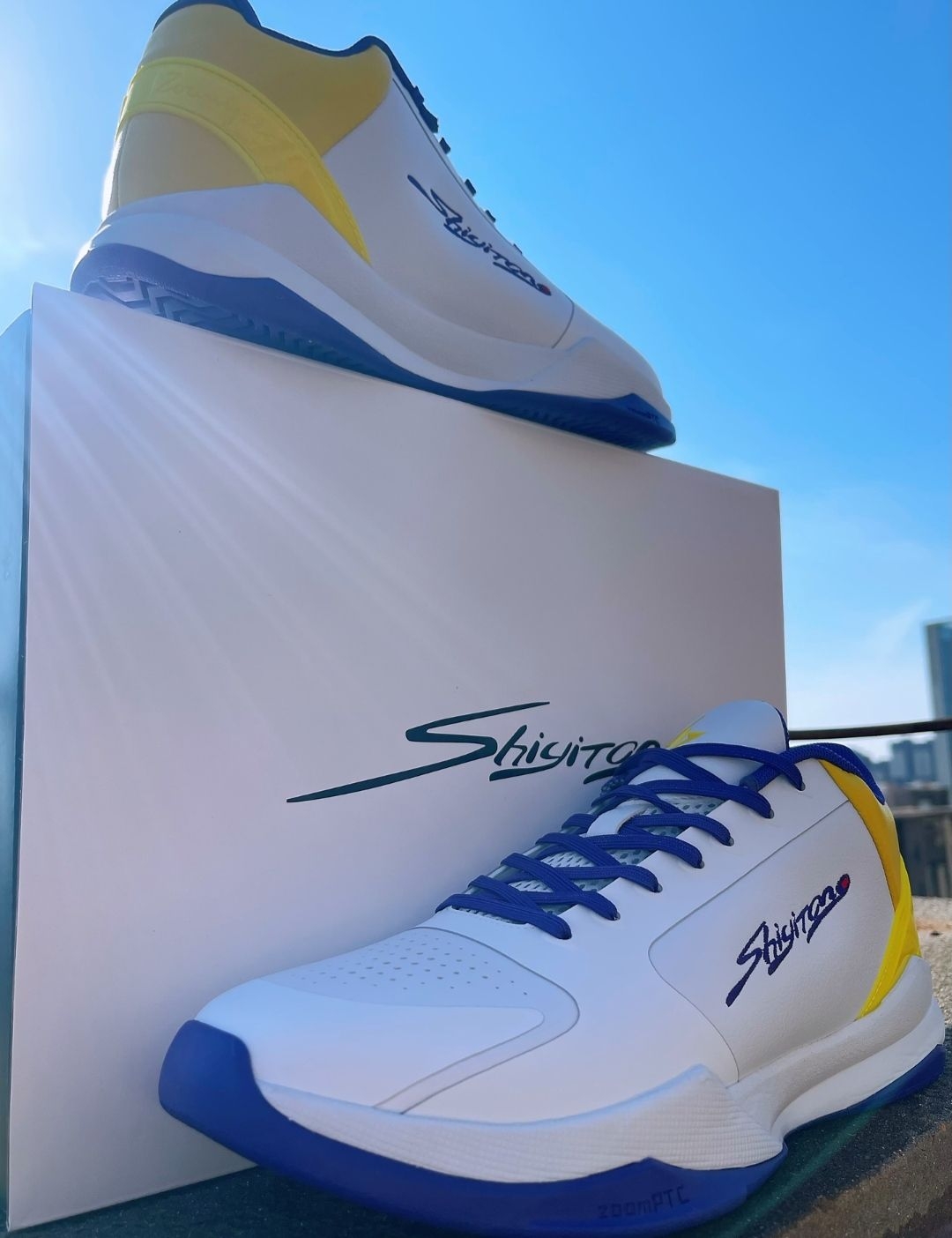 一眼沦陷的勇士配色篮球鞋!💙💛 白蓝黄撞色直接戳中篮球迷DNA,阳光下发亮的质感太绝了 中帮设计包裹感拉满,鞋头透气孔+后跟稳定片,实战性能在线 鞋底标注ZOOM PTC,缓震反馈明显,起跳落地都很稳 不管是打半场还是日常出街,都能hold住,颜值与实力并存 鞋身刺绣Logo细节拉满,复古感直接拉满,越看越耐看 喜欢篮球+潮流的兄弟闭眼冲,这双绝对是春夏球场最靓的仔! #篮球鞋 #实战篮球鞋 ...