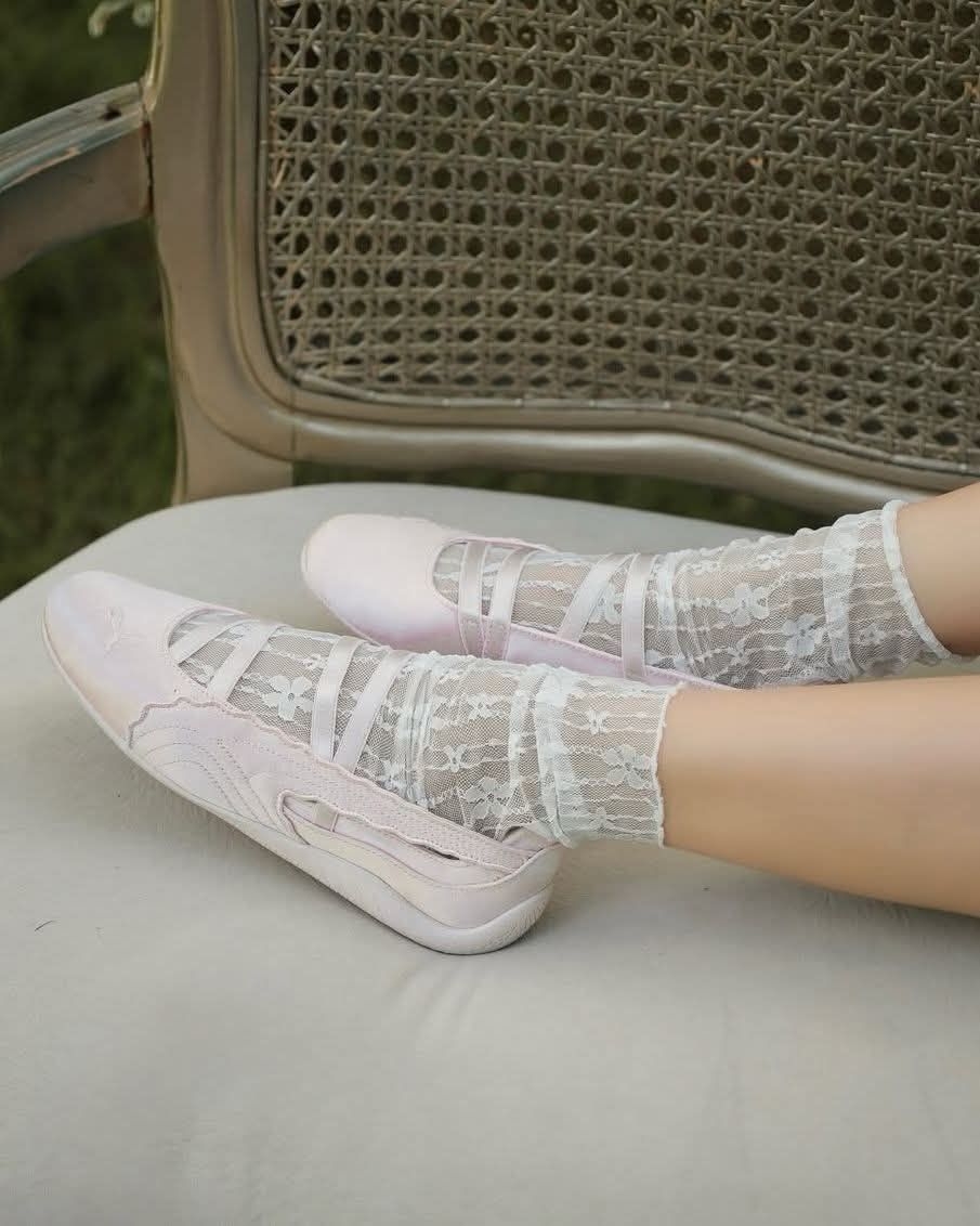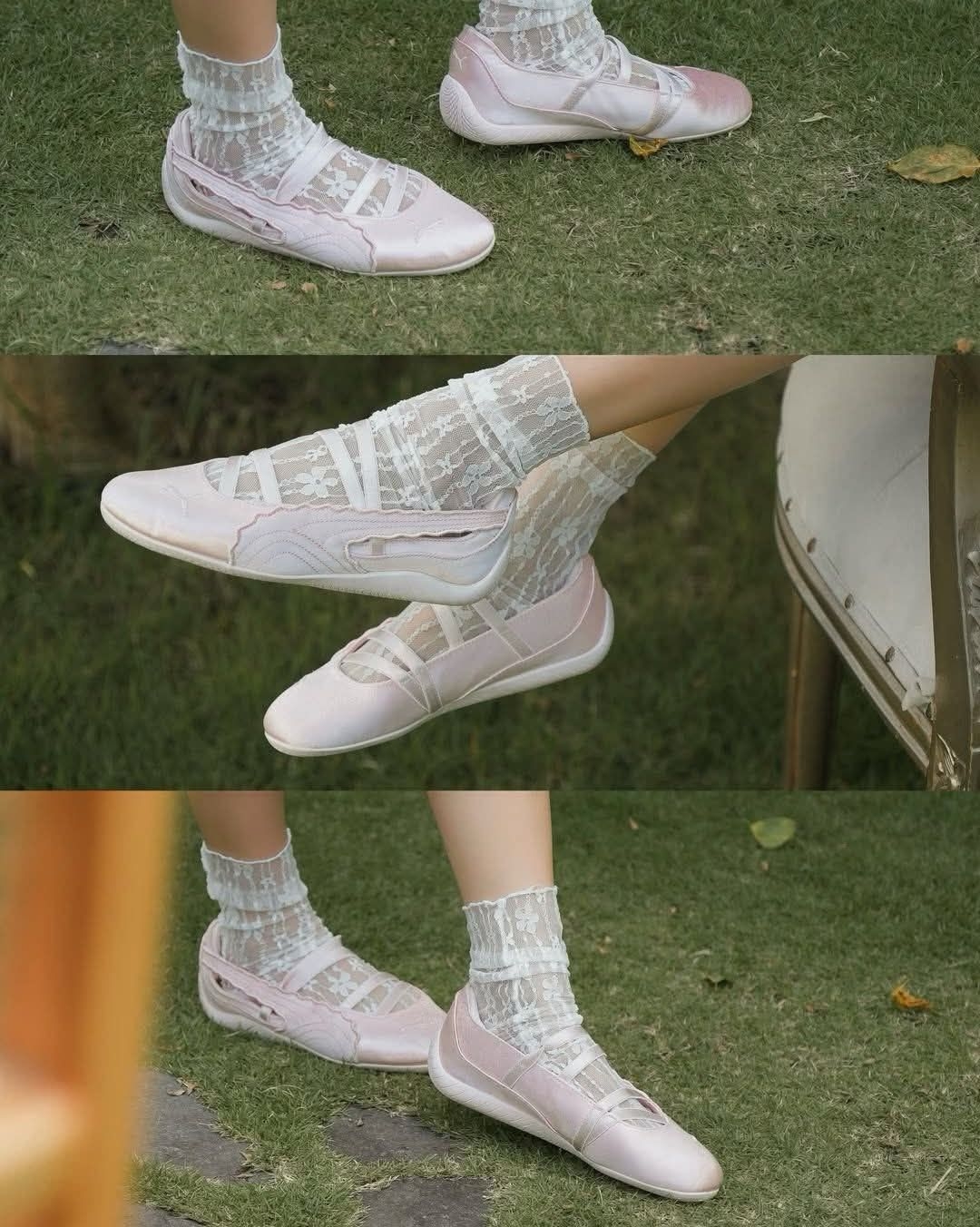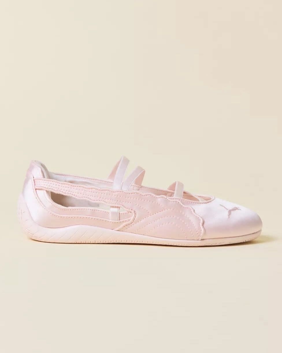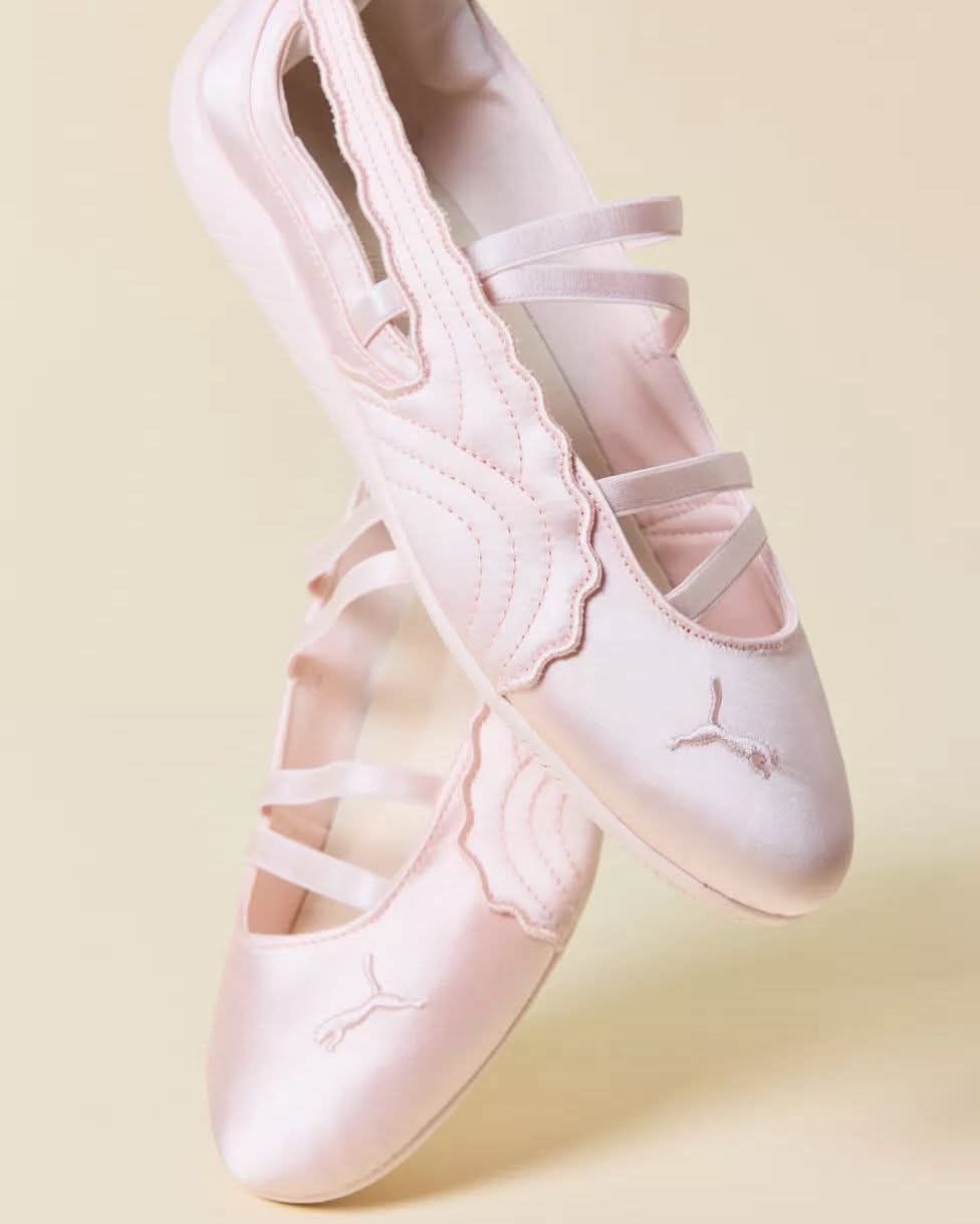 春天就该穿这种软乎乎的芭蕾鞋啊🥹 PUMA这双粉缎面鞋真的把优雅和少女感拿捏得死死的 缎面材质自带柔光滤镜,波浪边刺绣细节超精致 交叉细带设计修饰脚型,走路也稳得一批 浅粉配色温柔又显白,配连衣裙、牛仔裤都好看 不管是通勤还是约会,穿上就是温柔本柔✨
