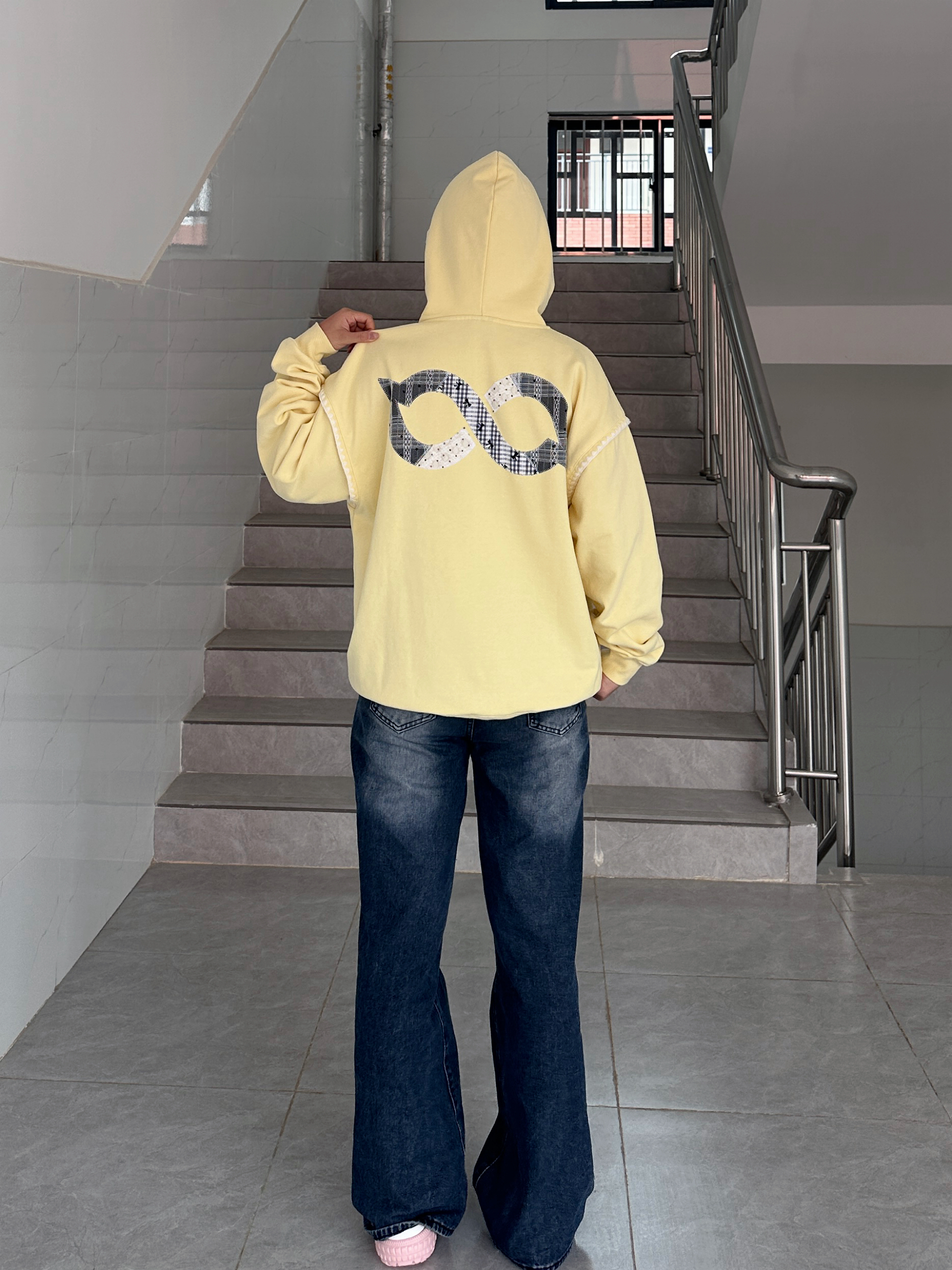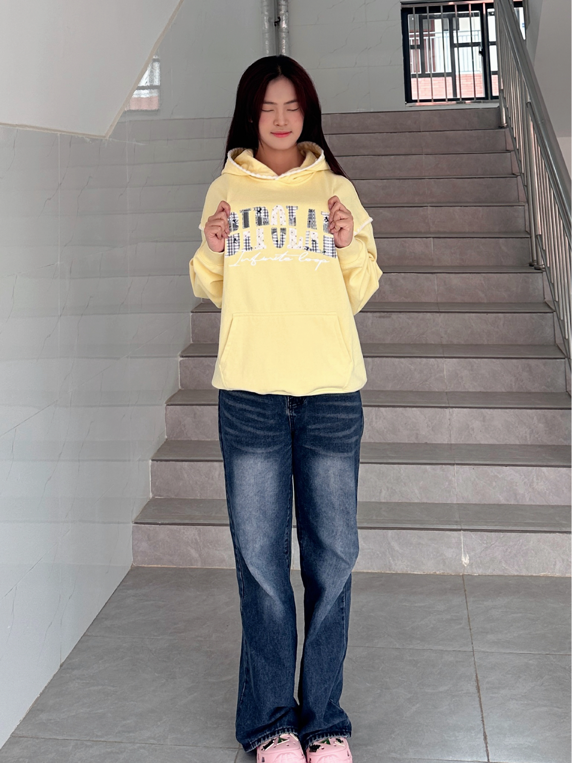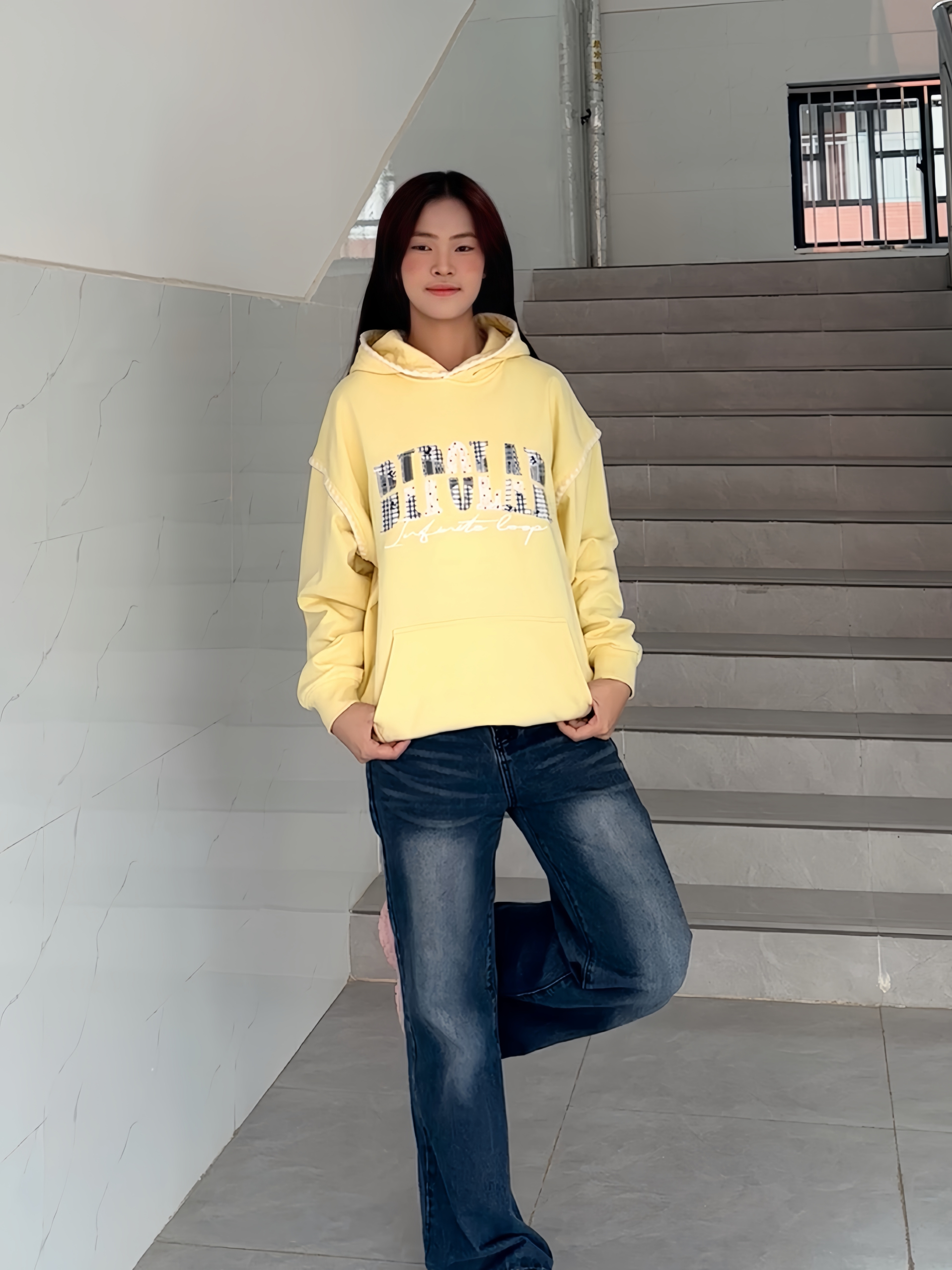 这件卫衣的颜色是那种像融化黄油的奶黄色,温柔又显气色 面料是厚实的抓绒棉,贴身穿暖乎乎的,洗后依然柔软不变形 帽檐和袖口的蕾丝花边、做旧贴布字母,复古感拉满,细节控狂喜 落肩宽松版型,对各种身材都很包容,慵懒感随手就来 上课通勤、周末出街都适配,元气少女感直接溢出屏幕
