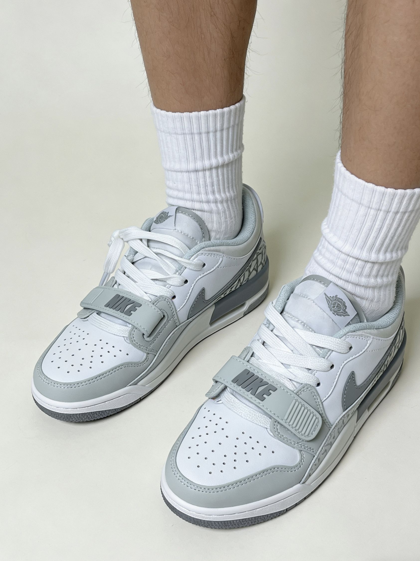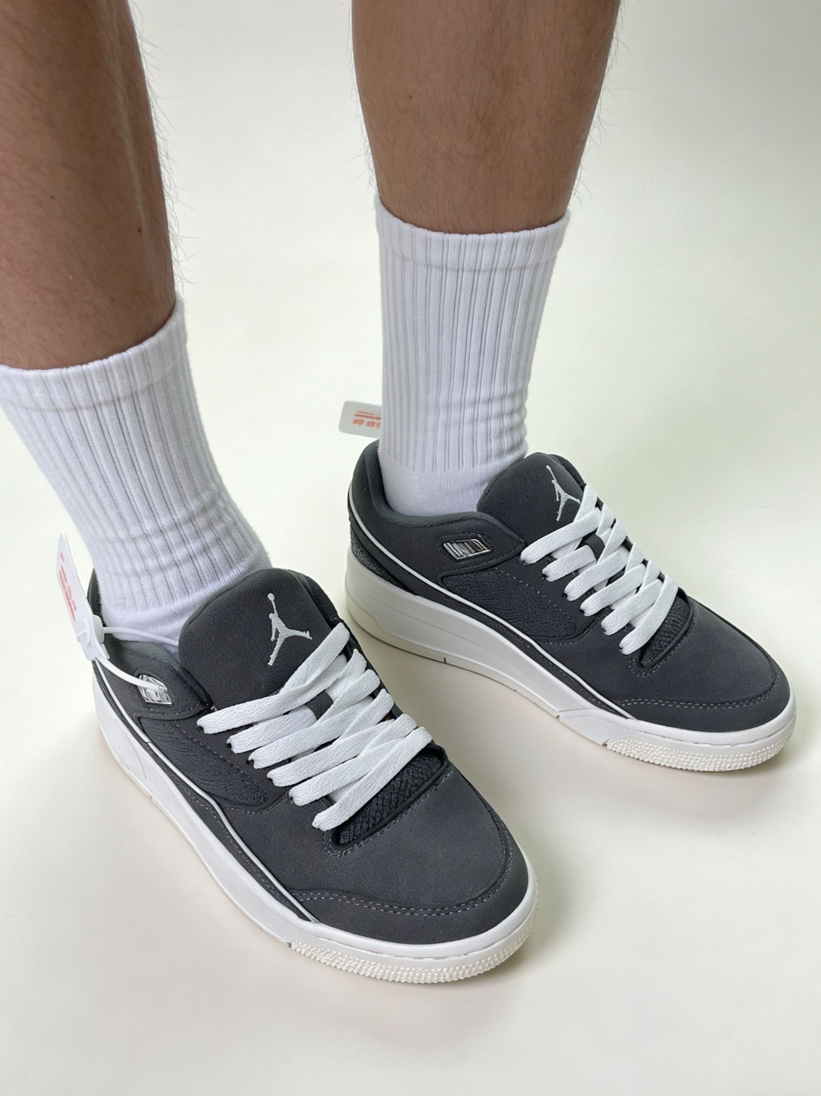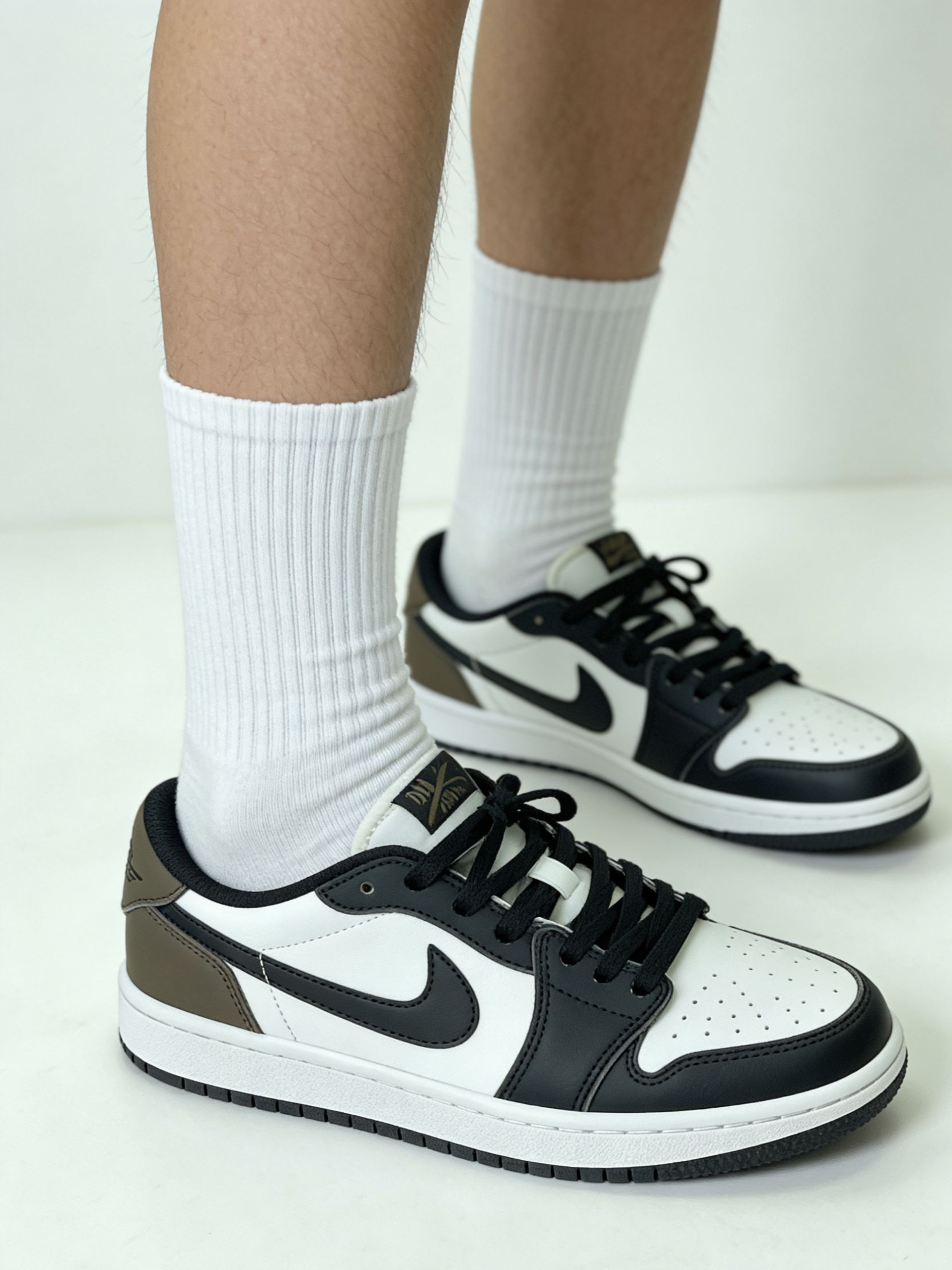 1. 浅灰魔术贴款(左上) - 版型:低帮+魔术贴设计,视觉上更利落,鞋型偏修长,适合搭配束脚裤或直筒裤。 - 体验:魔术贴调节空间大,对脚型包容度不错,鞋面材质偏软,日常通勤穿着无明显束缚感。 - 适配场景:日常通勤、校园穿搭,风格偏清新休闲。 2. 黑白棕撞色款(中上) - 版型:经典AJ低帮版型,鞋头圆润,后跟做了撞色处理,复古感拉满。 - 体验:鞋身支撑性较好,鞋舌填充饱...