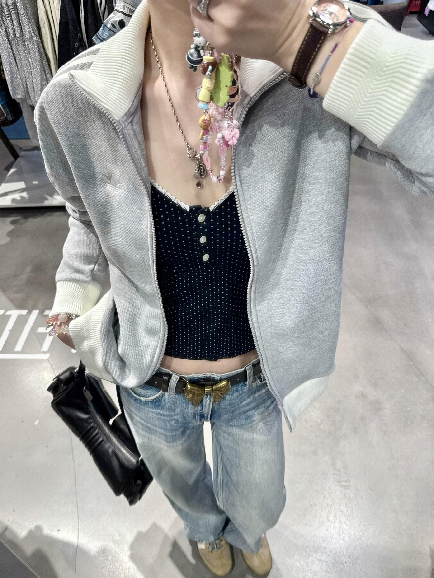 不愧是韩娱kpop同款!阿迪这件浅灰外套真的太权威了🪽🩶 浅灰调自带清冷滤镜,温柔又显白,春天叠穿真的绝到不行! 内搭波点小吊带,运动风混着复古甜妹感🧚🏻♀️ 甜酷平衡得刚刚好,既有运动休闲的松弛感,又带点少女的娇俏, 韩系氛围感直接拉满,随便一拍就是韩剧女主既视感📸 小刺绣细节真的戳中我心巴! 低调精致的刺绣点缀,不张扬却很有质感, 简约又耐看,越看越喜欢,完全不挑搭配。 Oversiz...
