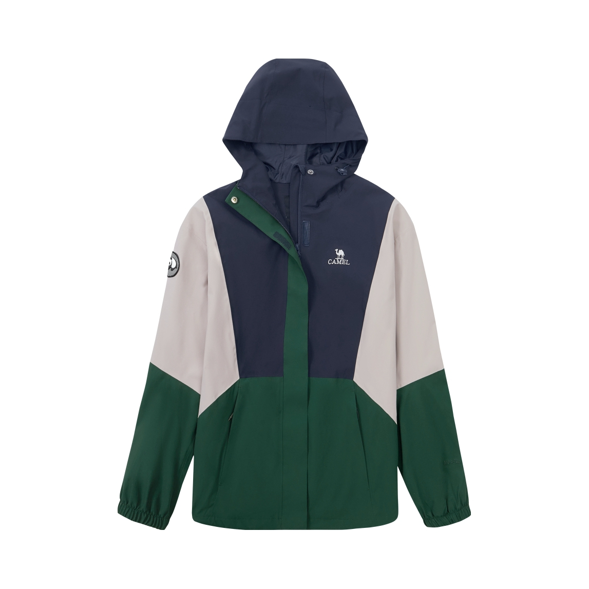 🌿 短版冲锋衣文案(100字版) 藏青撞米白+墨绿拼接,把户外机能感揉进日常穿搭。防水防风面料扛住早秋骤雨,连帽+按扣拉链设计兼顾温度与风度。骆驼经典logo低调不张扬,挺括版型修饰身形,学生党、打工人都能轻松驾驭,春秋单穿、冬季叠穿都适配,一件承包大半年穿搭