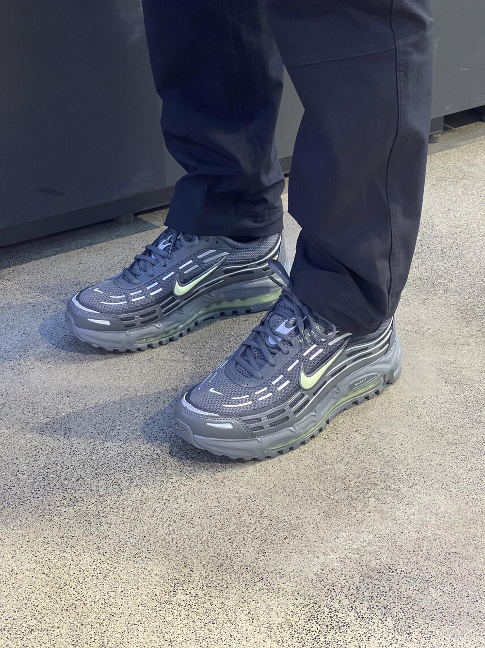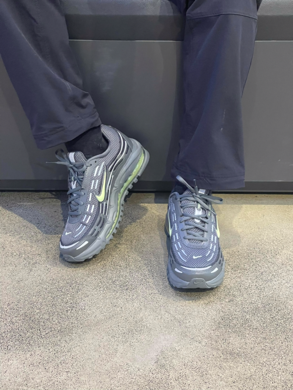 这双 Air Max TL2.5 深灰绿气垫鞋,真的酷到心坎里🆒 低调高级感直接拉满,复古跑鞋控一眼沦陷! 深灰质感鞋面搭配荧光绿细节点缀, 撞色不浮夸,低调又有记忆点,街头氛围感拉满, 日常穿不挑人,还特别显质感。 织物+合成革拼接鞋面,透气不闷脚, 春天穿也清爽舒适,久走不累脚。 全掌 Air Max 气垫加持,软弹缓震超明显, 踩屎感十足,通勤、逛街、城市徒步都很稳。