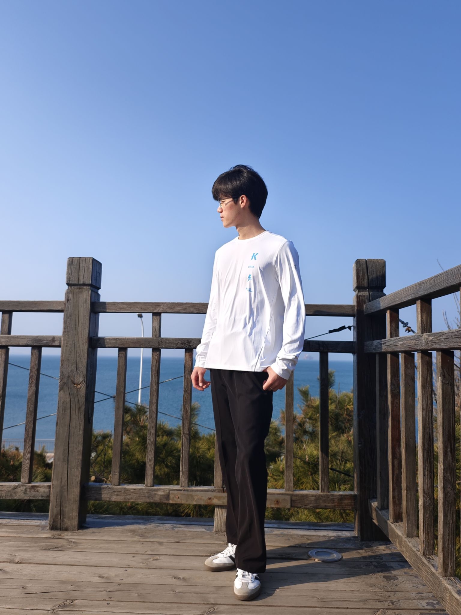 一、第一次看到这件白长袖Q就挪不开眼,简约的圆领+竖纹肌理,没有多余的花哨设计,却自带一种清爽少年感。胸口的浅蓝小印花是点睛之笔、不张扬但很有细节。 二、这件长袖的面料很轻薄透气,春天在海边走一走也不会闷汗,垂感也很好,不会贴在身上显臃肿。袖口和下摆的剪裁很利落,上课、散步、拍照都能穿,实用性拉满。