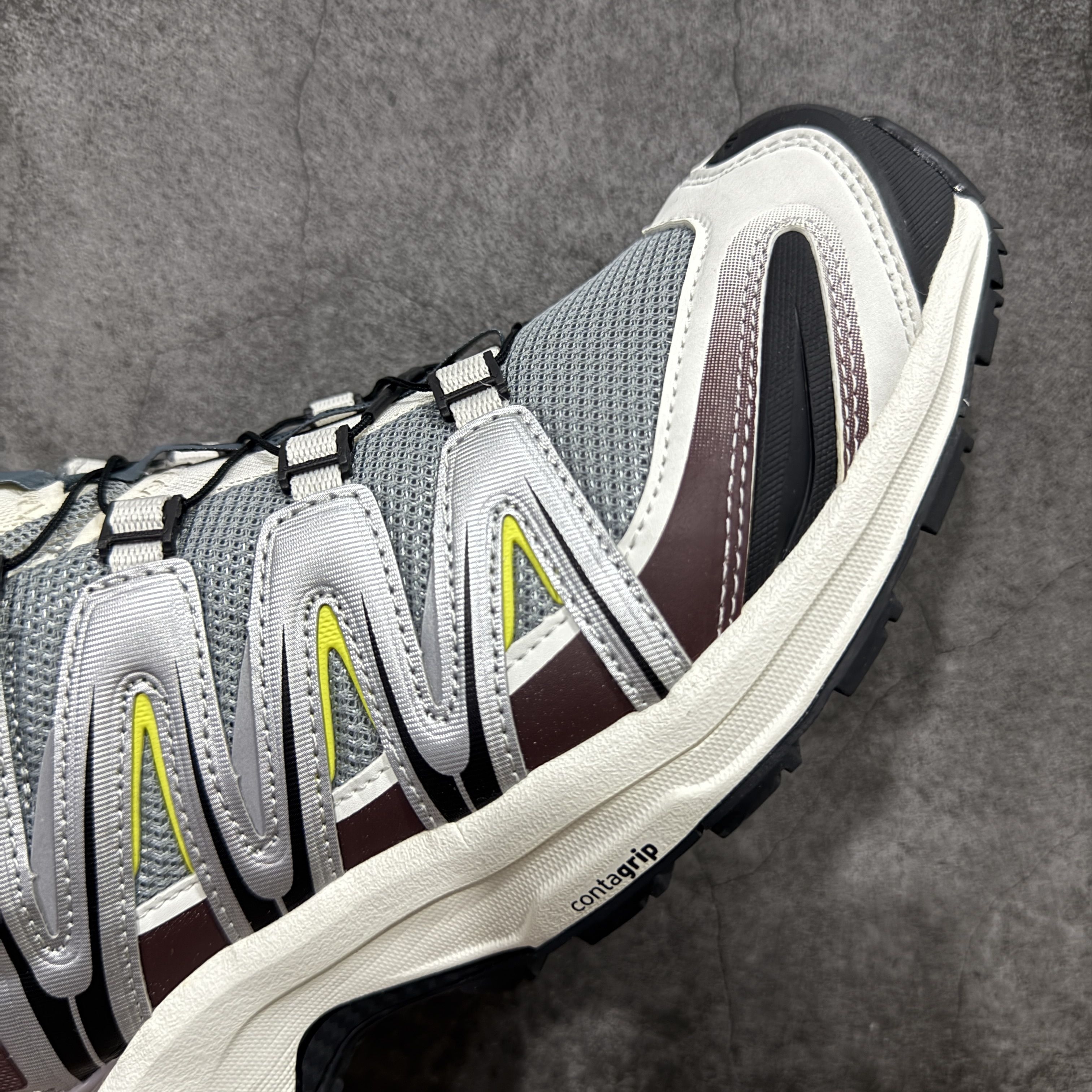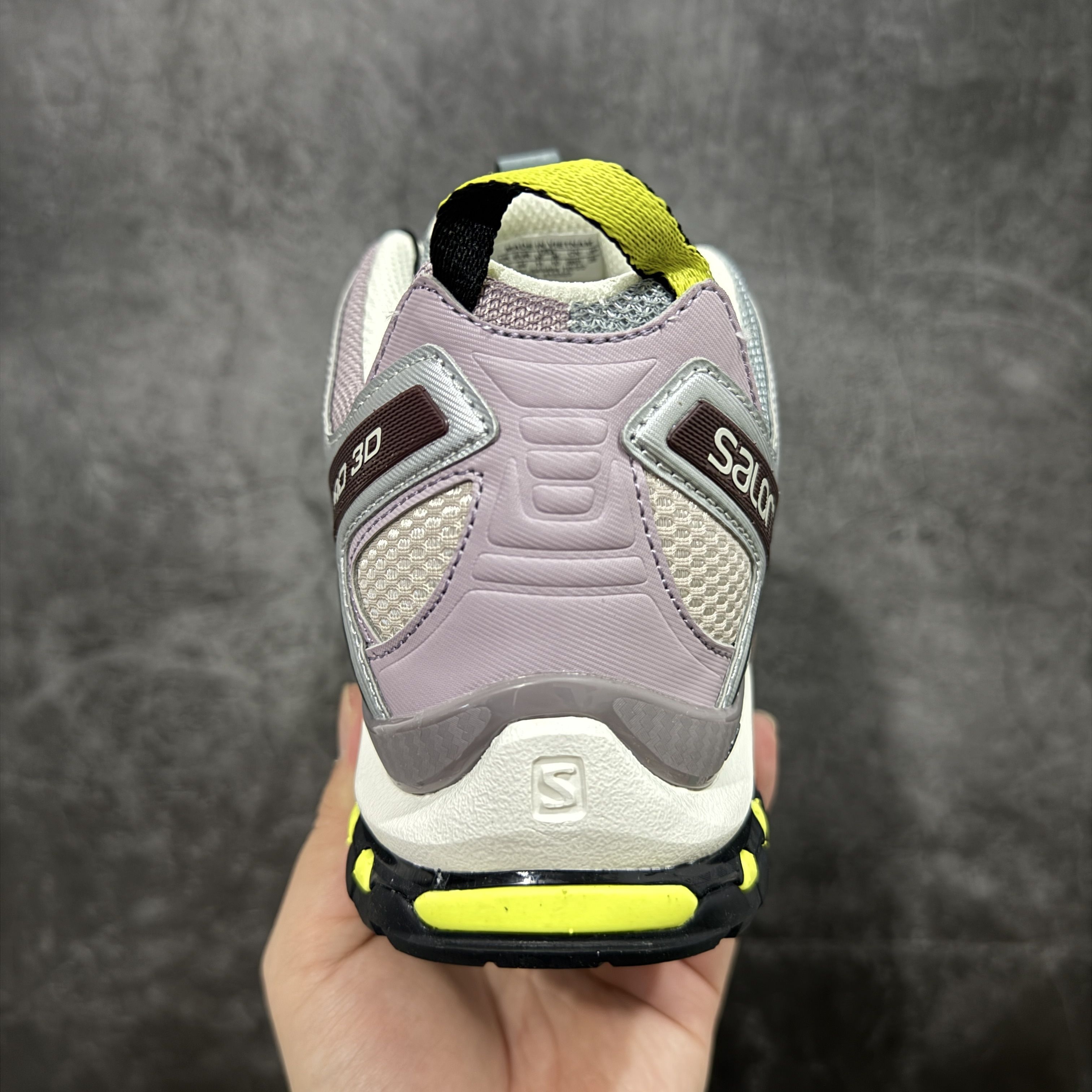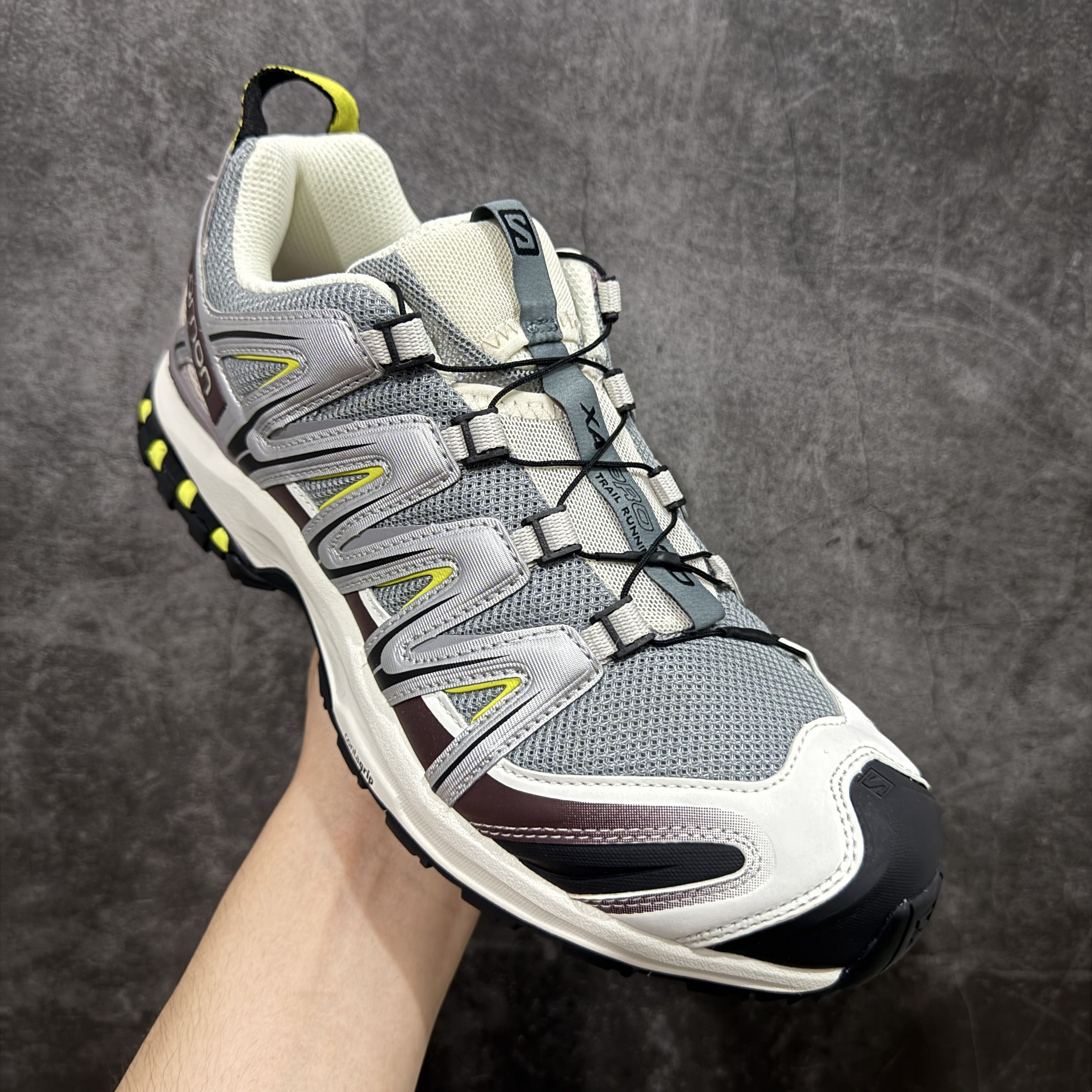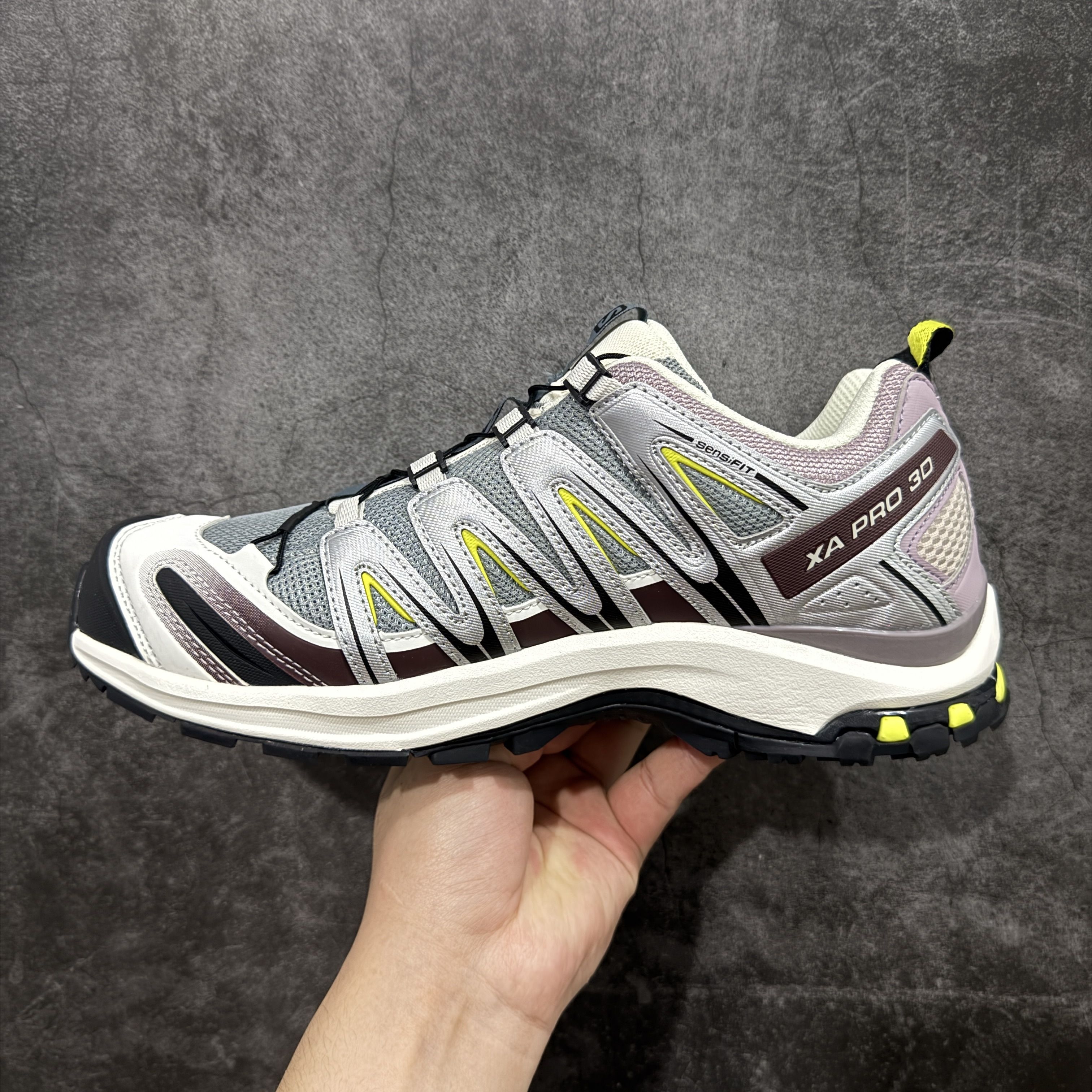 这双萨洛蒙XA Pro 3D把户外机能和复古甜酷感玩明白了!灰紫+酒红+荧光黄的撞色,在光下自带做旧滤镜,网眼鞋面+标志性稳定条,既有户外鞋的硬核感,又比纯黑款更有记忆点,日常出街完全不挑风格。 --- 性能上完全是户外党福音:Contagrip大底在泥泞、湿滑路面都能牢牢抓地,3D Chassis底盘稳定支撑,长时间徒步或城市暴走都不会累脚,Quicklace快系系统一拉就紧,穿脱超方便,兼顾实...