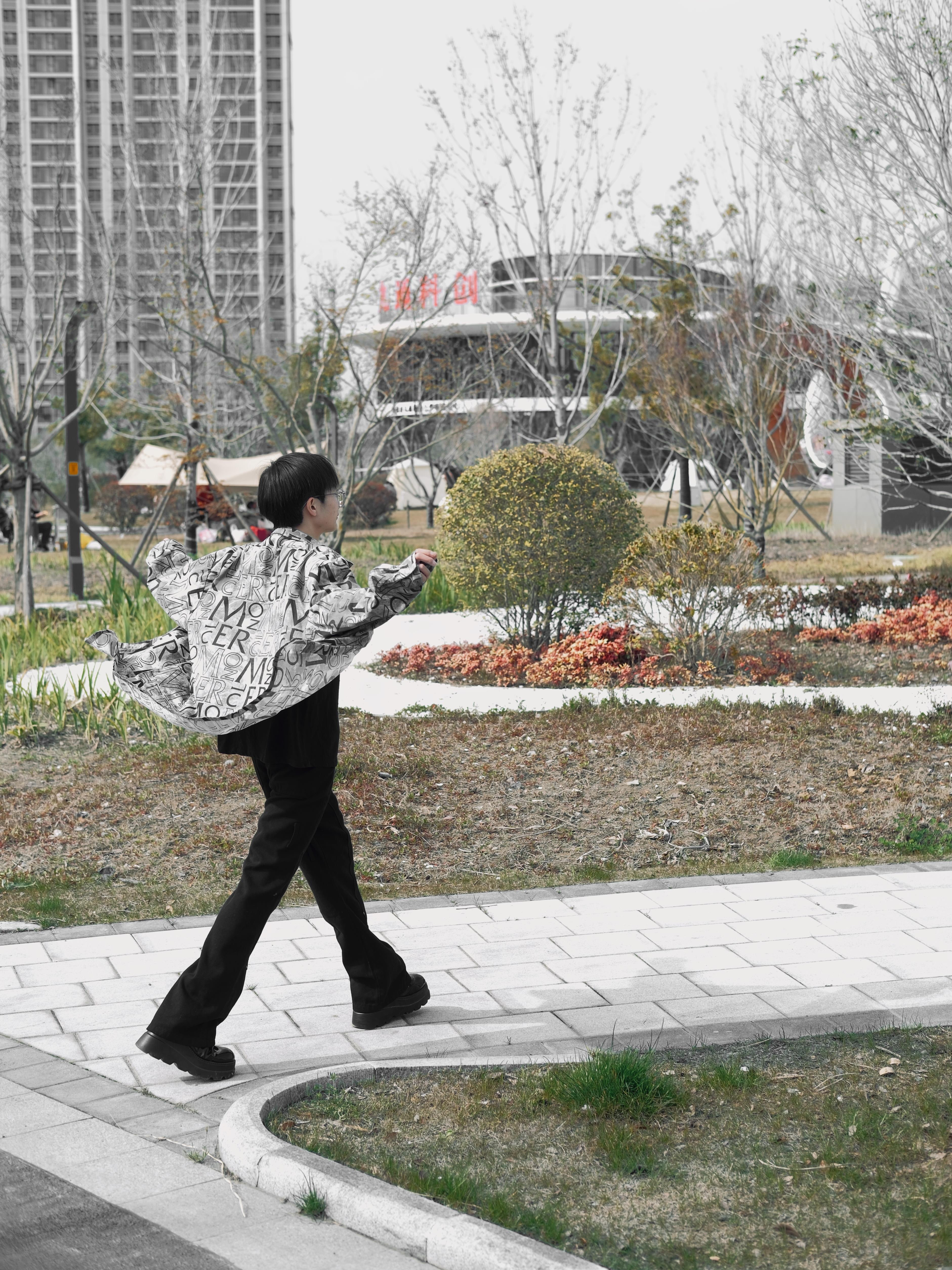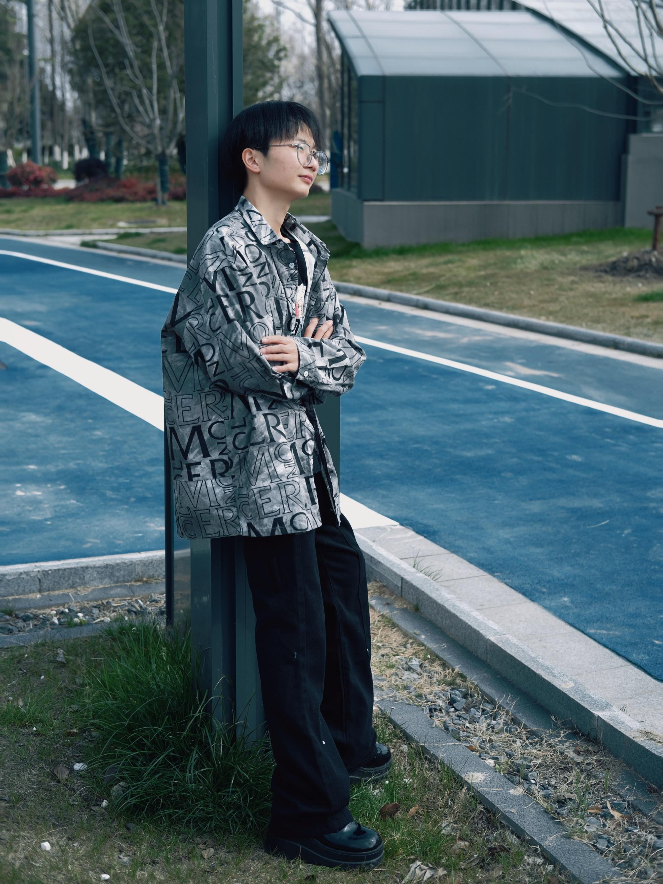 我身穿一件宽松的印花外套,配一条垂感黑裤,踩着厚底鞋走在刚冒绿芽的公园里, 风把衣角吹起来的时候,整个人都轻得像要飘起来。