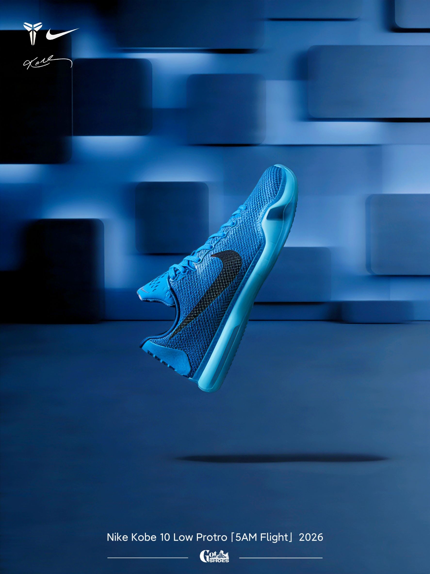 Nike 确认将重新推出经典的 Nike Kobe 10 Low Protro「5AM Flight」配色。该配色于 2015 年首次亮相,此番复刻再现了这一系列中极具意义的设计,致敬科比职业生涯末期那段标志性的黎明训练时光。 鞋身以蓝色工程网面打造,侧面饰有简洁的黑色 Swoosh 标识,鞋舌上科比的红色签名与盾形标志相映成趣。半透明外底与鞋舌内侧若隐若现的水波纹路,在强化主题之余...