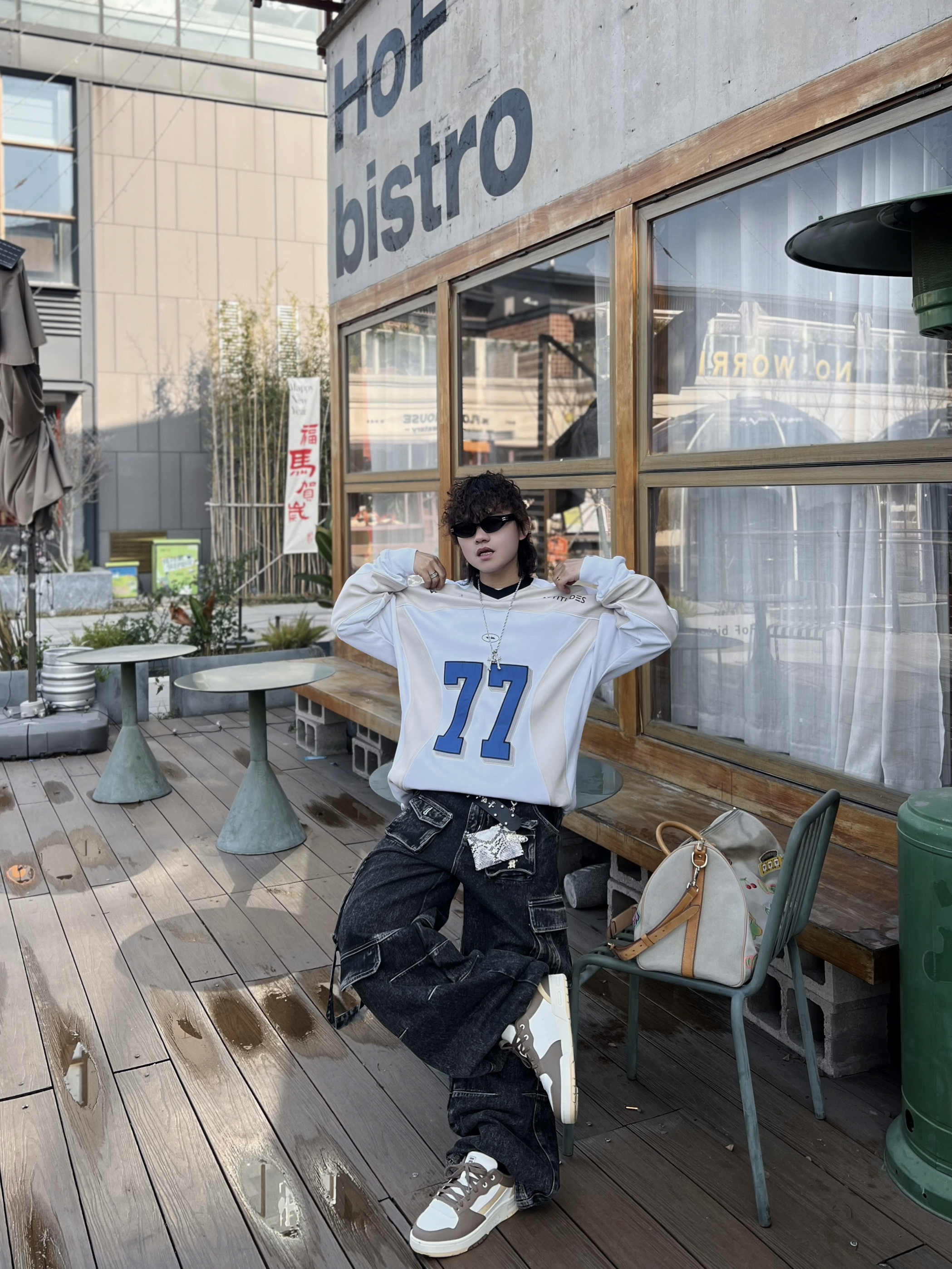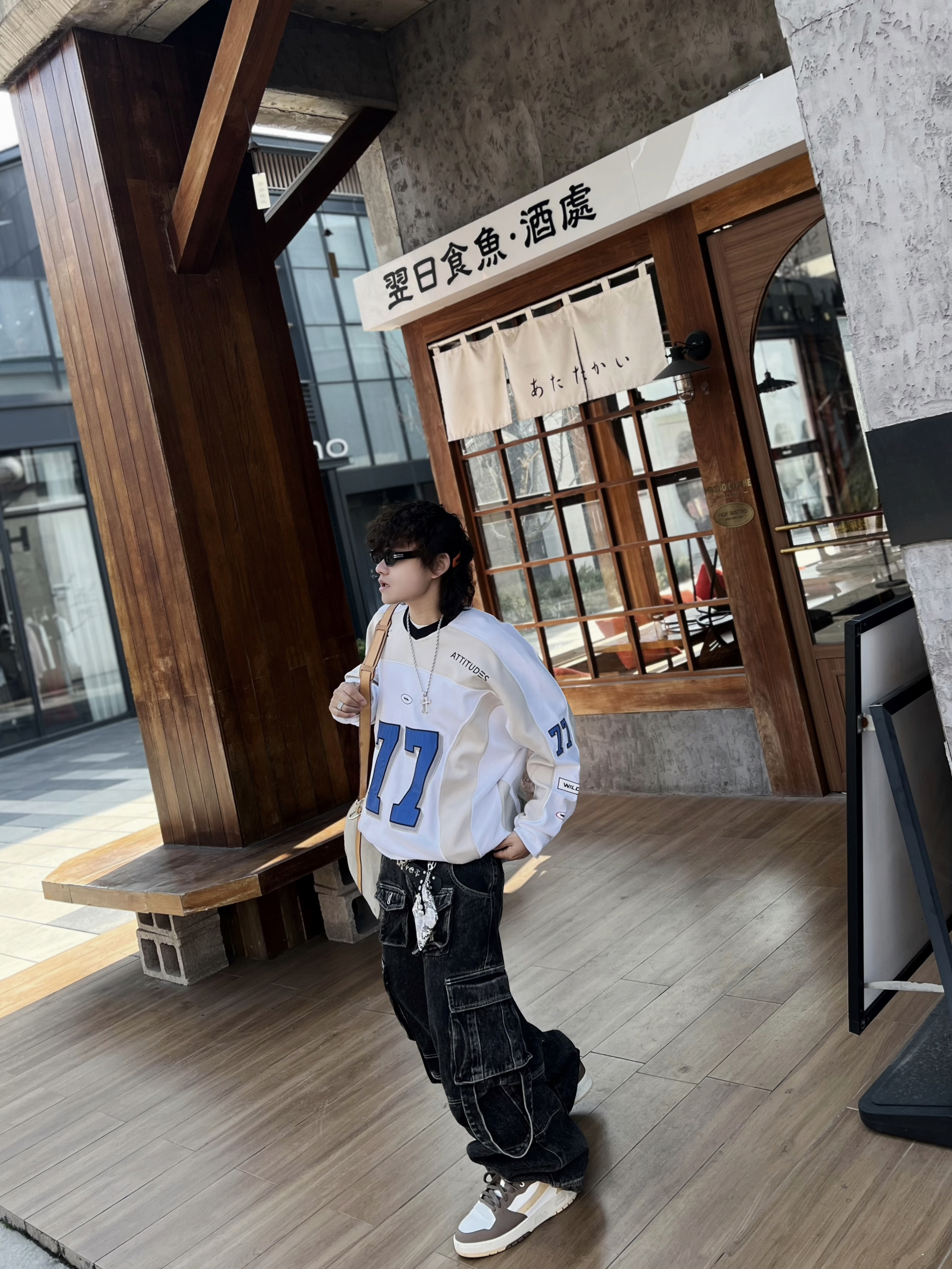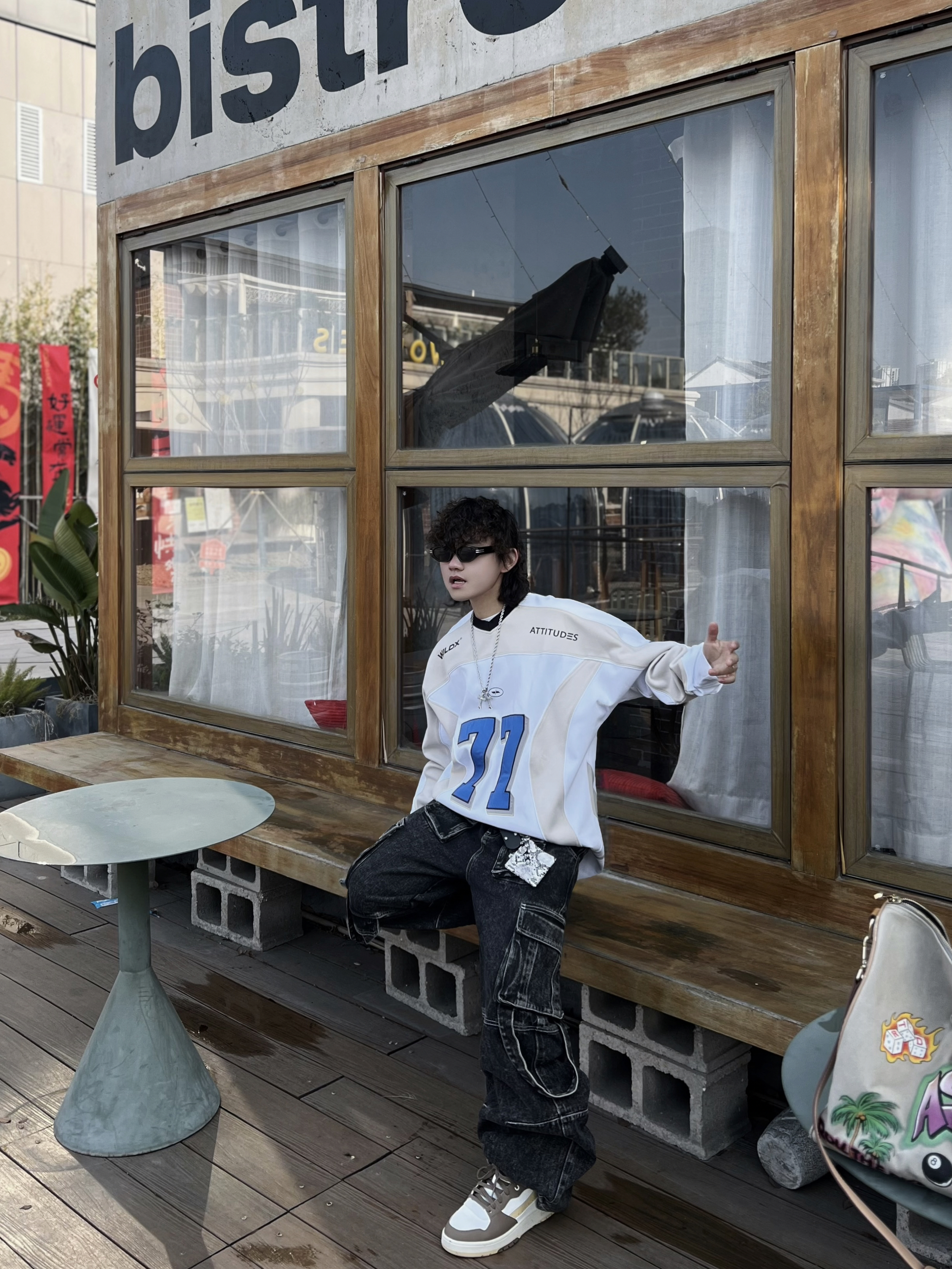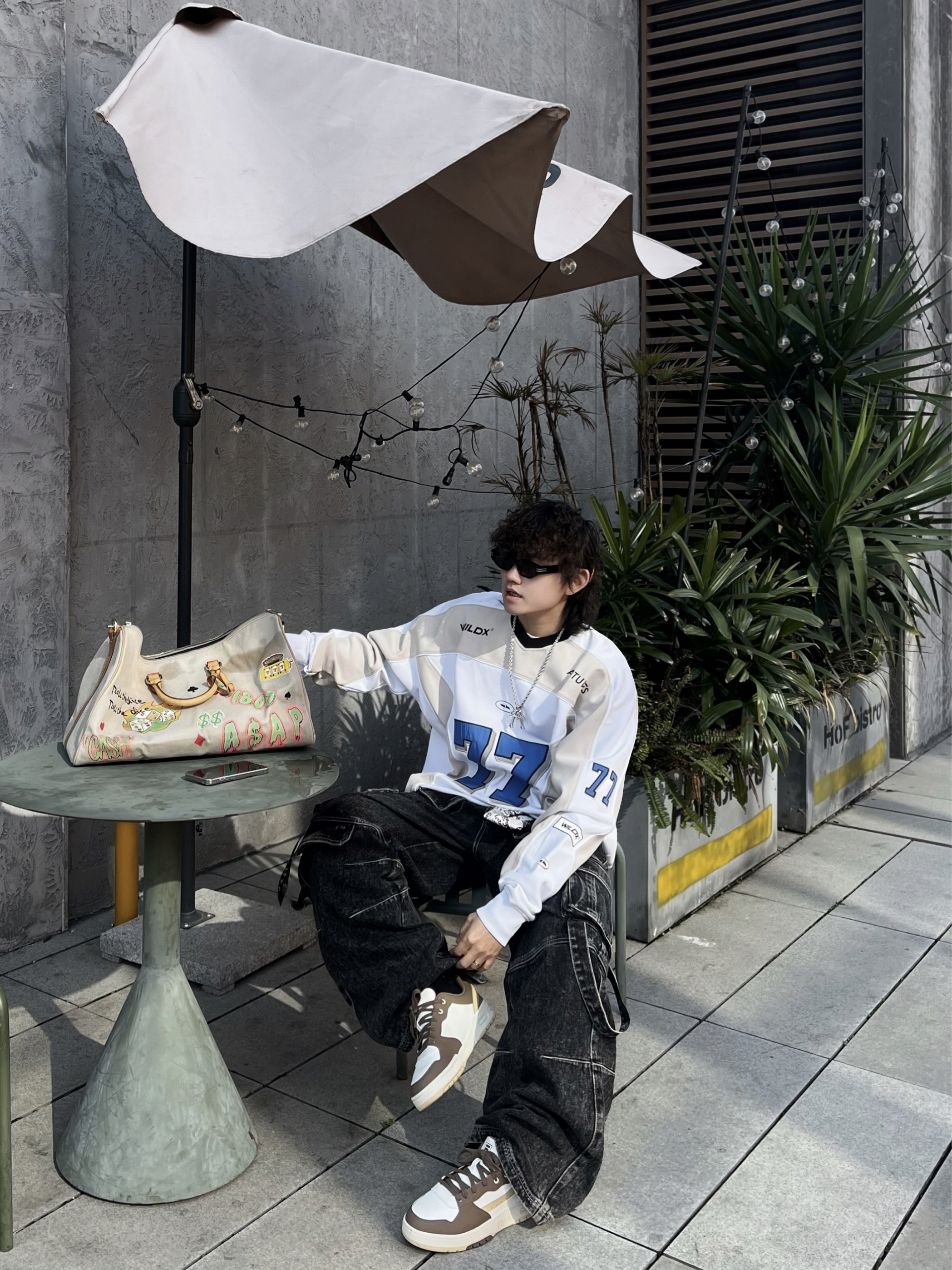 ‼️早春潮人态度,就得是美式复古+松弛感双重拉满! • 👔核心单品:蓝白拼色77号球衣,美式运动风拿捏,oversize版型遮肉又随性 • 👖下装搭配:做旧工装牛仔裤,多口袋设计自带街头质感,层次感拉满 • 细节点睛: ◦ 撞色 FILA 运动鞋呼应衣身色调,整体更和谐 ◦ 涂鸦旅行包作为亮点,中和深色沉闷,活力感十足 ◦ 银链配饰+口袋挂饰,细节感满满,潮范儿十足 • 态度氛围...