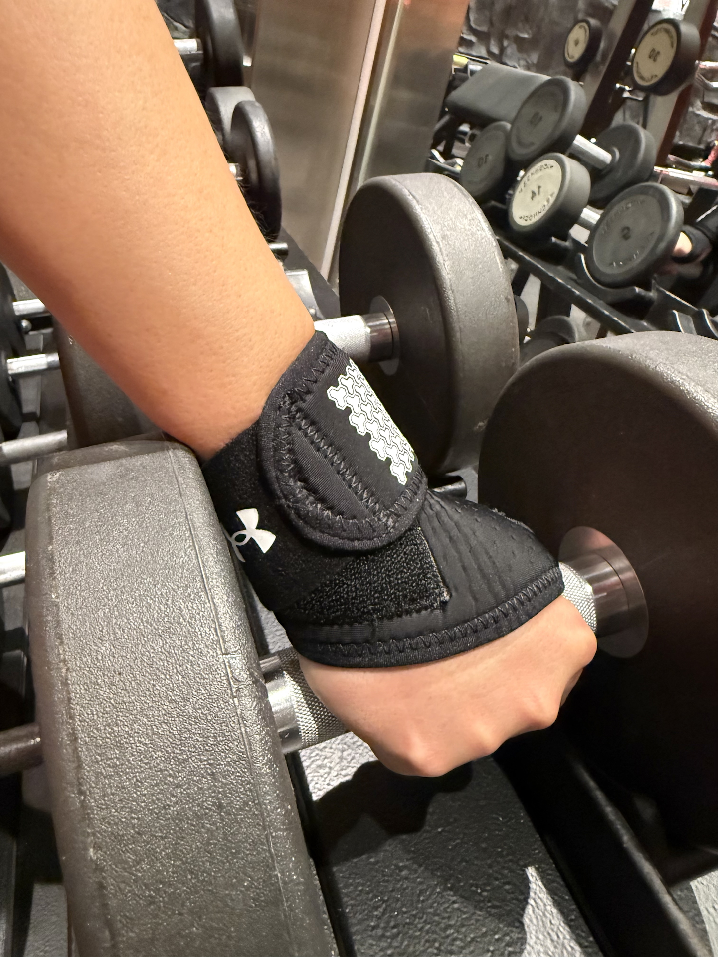 最近入手这款 Armour 健身护腕还真是让我眼前一亮,还真是敢于放心大胆做动作了。 它连带着拇指扣,保护的面积更大了,还不会勒手。魔术贴设计还可以在使用过程中进行松紧调节,做了一小时的上肢训练也没松散的现象,使用过程中还比较透气。总体上能带给你足够的安全感,也在一定程度上防止关节损伤,还是非常推荐的!