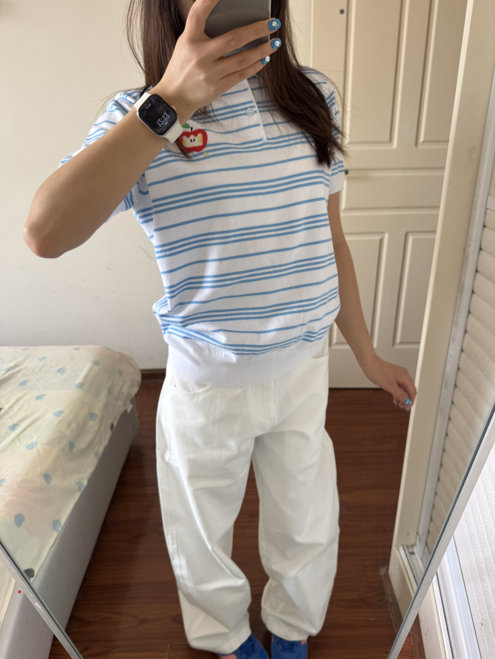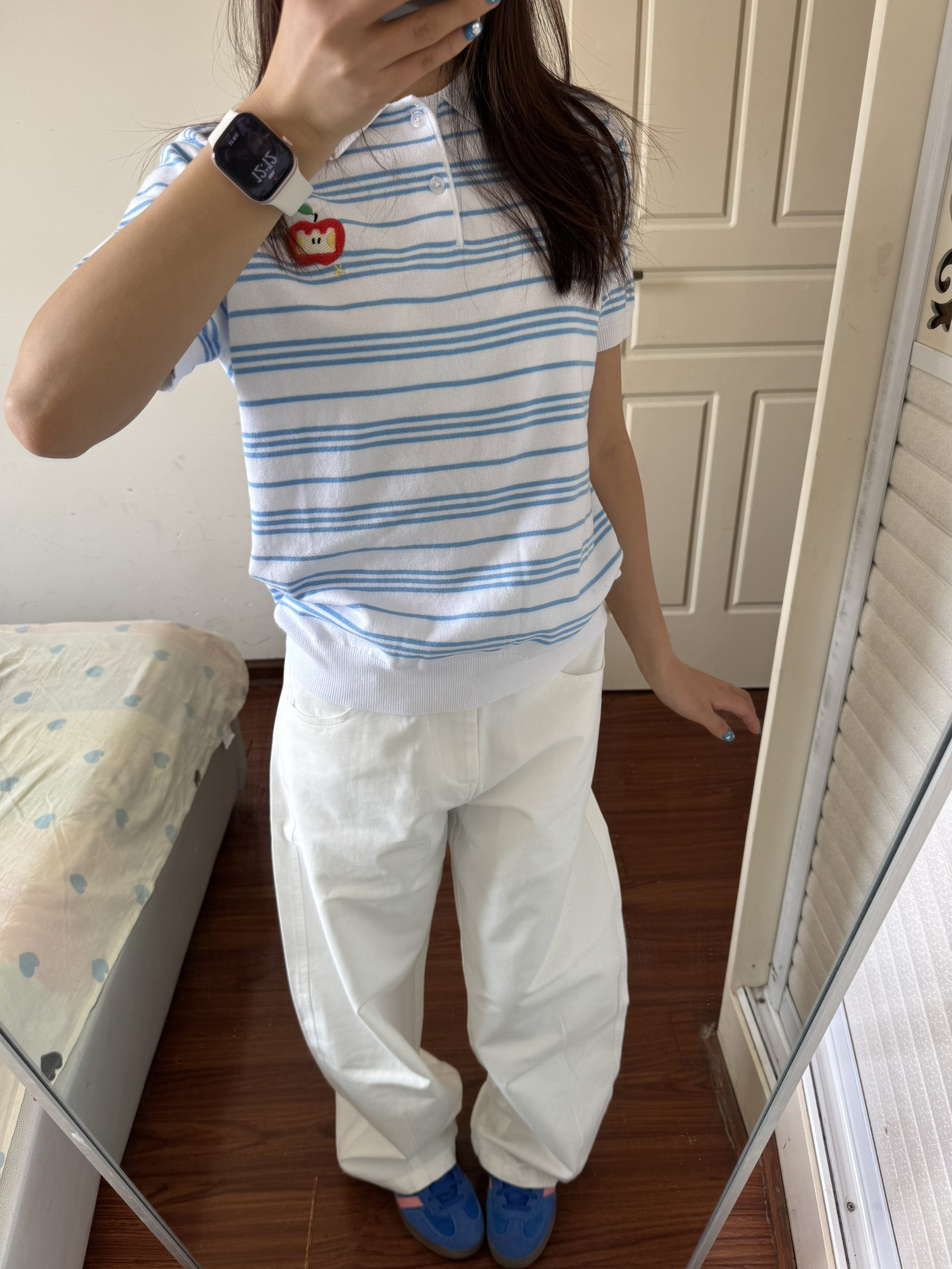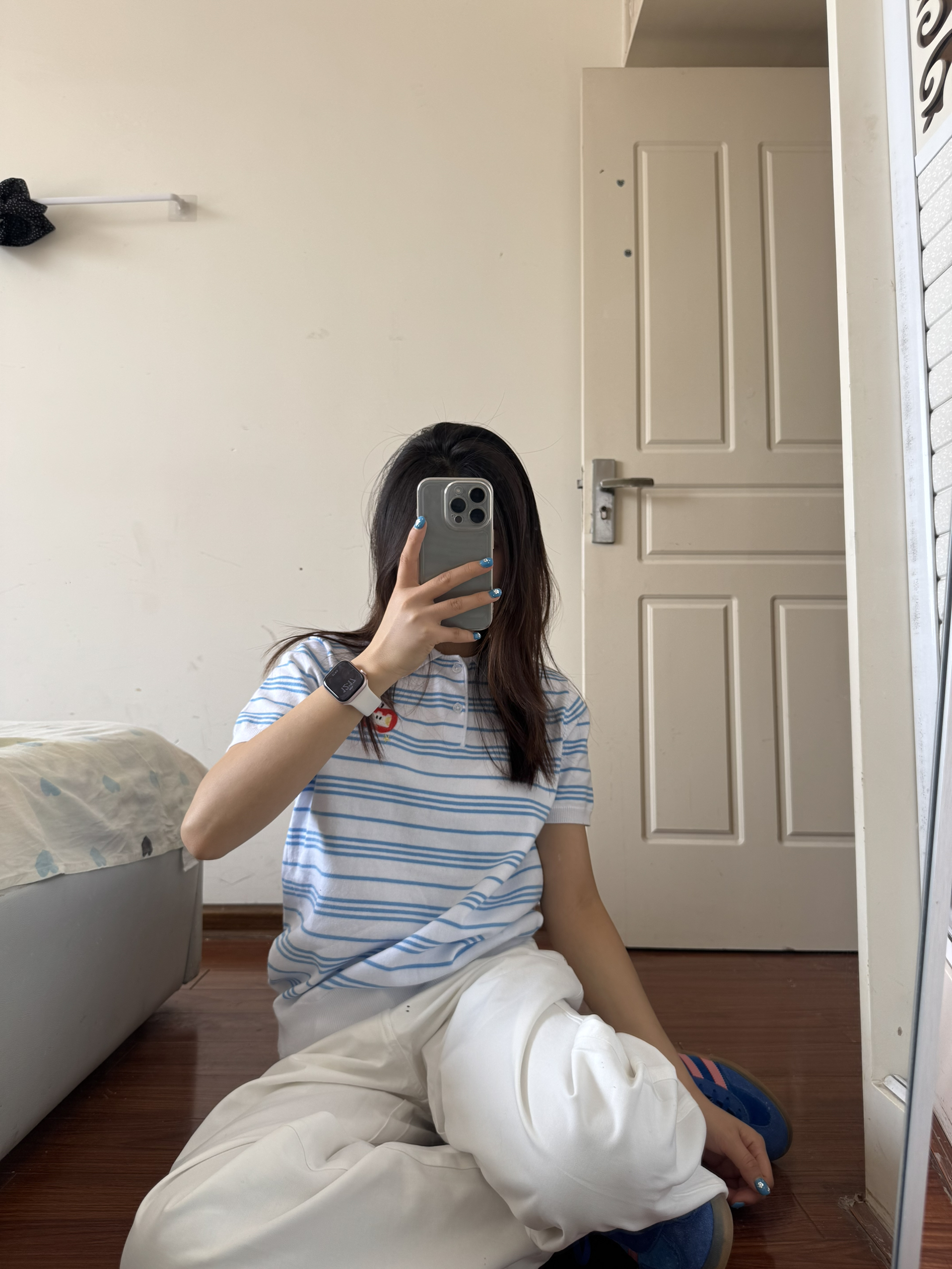 三叶草复古条纹|早秋氛围感封神穿搭 三叶草这件条纹上衣真的随手拍都超有氛围感! 经典复古条纹+撞色