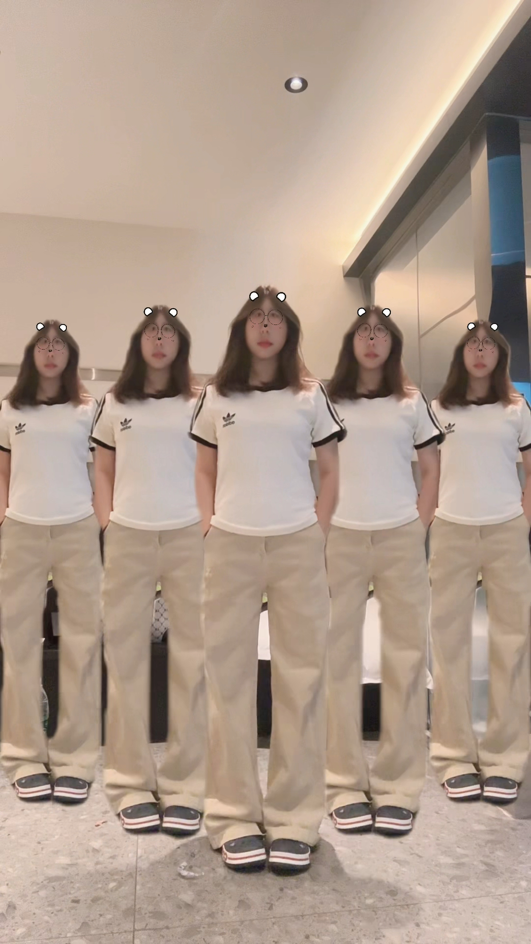 身高163 体重104 裤子M 显瘦还显高面料很好 鞋子偏大 但是颜值很好好搭配衣服 今天是很色搭配