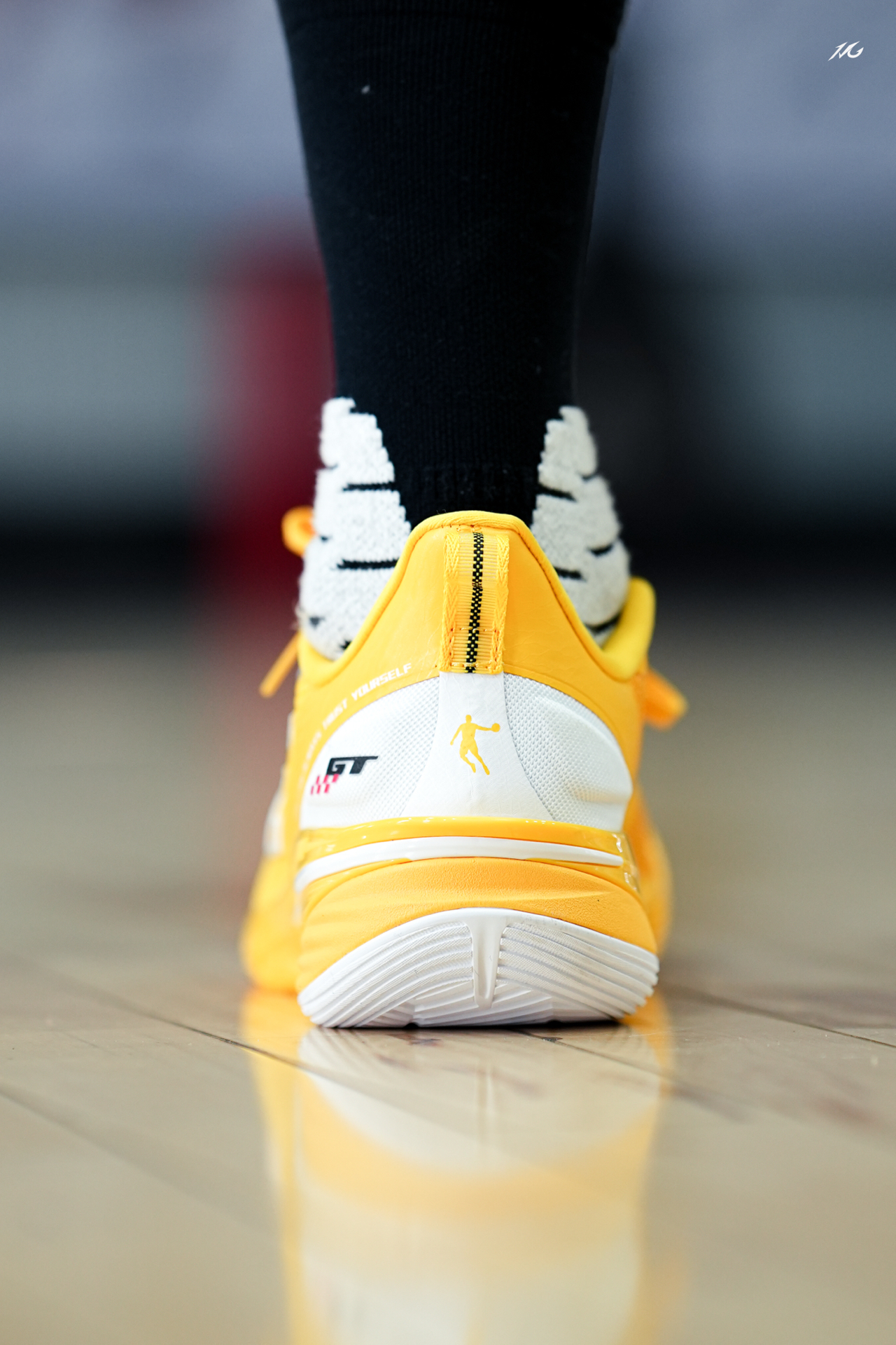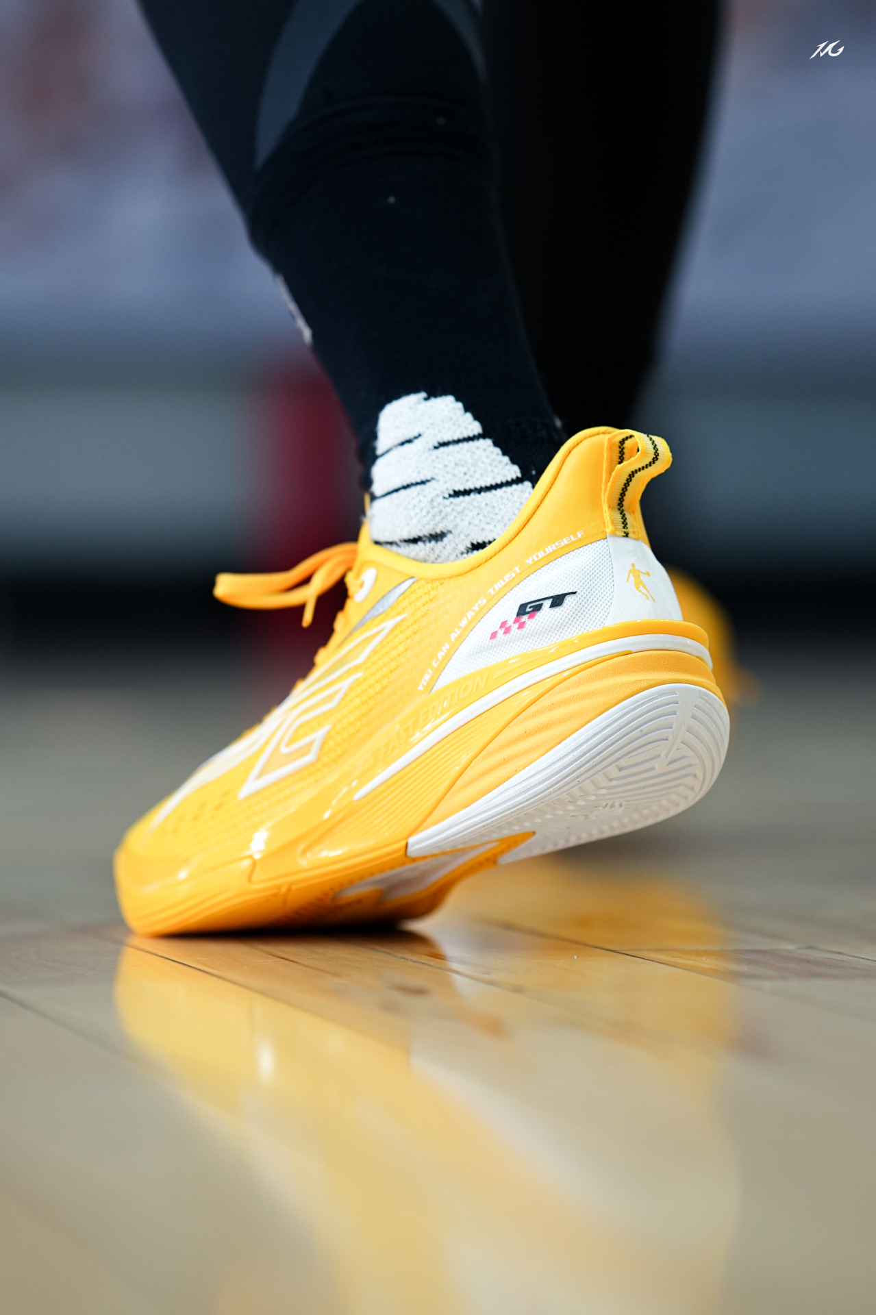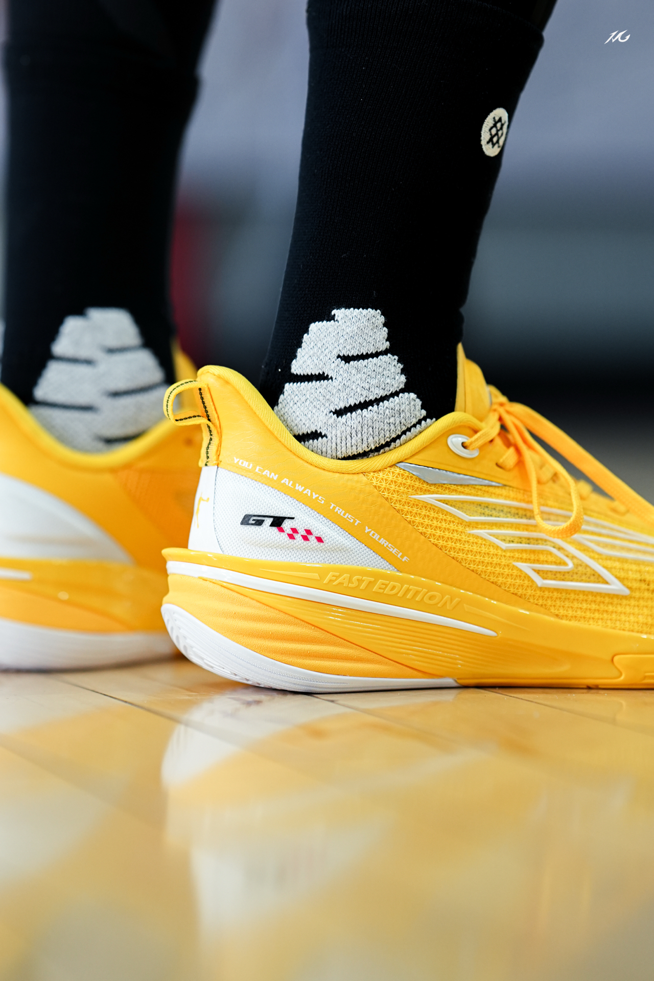 中乔FE这个系列都出到第四代了,体验过后我觉得整体调整的更加低趴迅速,今日上脚这个亮黄色,后跟有个GT标识很帅,骚气后卫喜欢吗? 实战感受前掌重心低有韧性,后掌软弹感比较明显,鞋面很透气适合夏季实战,而且包裹对小宽脚也很友好! 整体我会比较推荐给锋线后卫爱突破选手的选手使用,尺码正常选择!