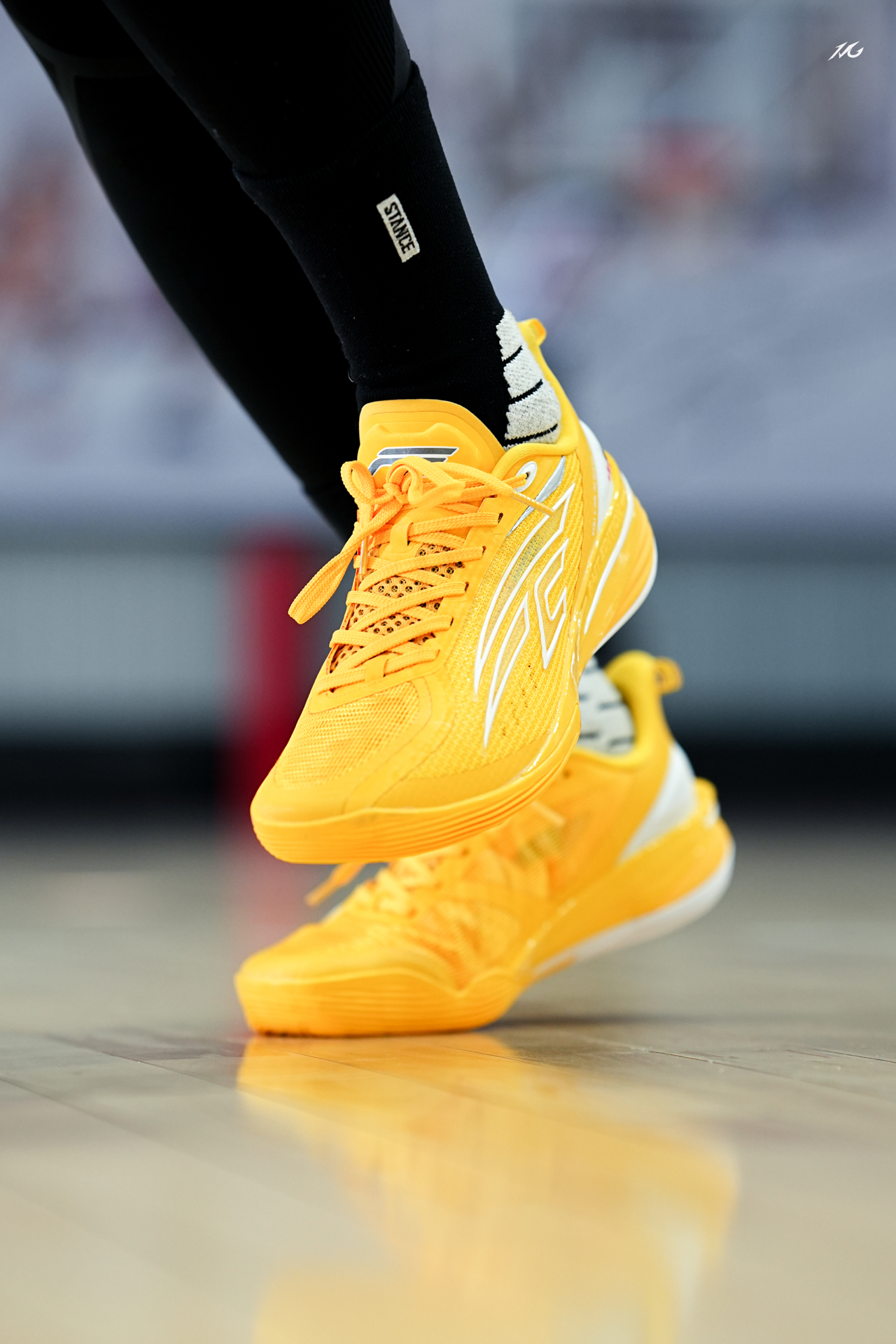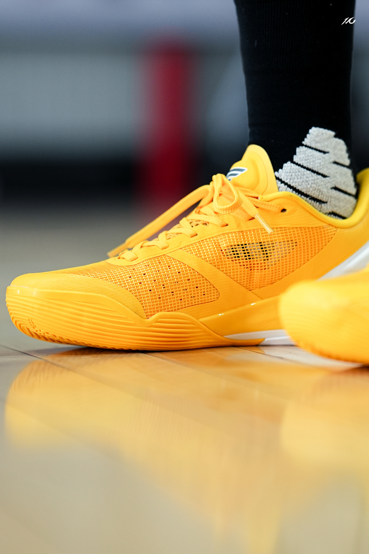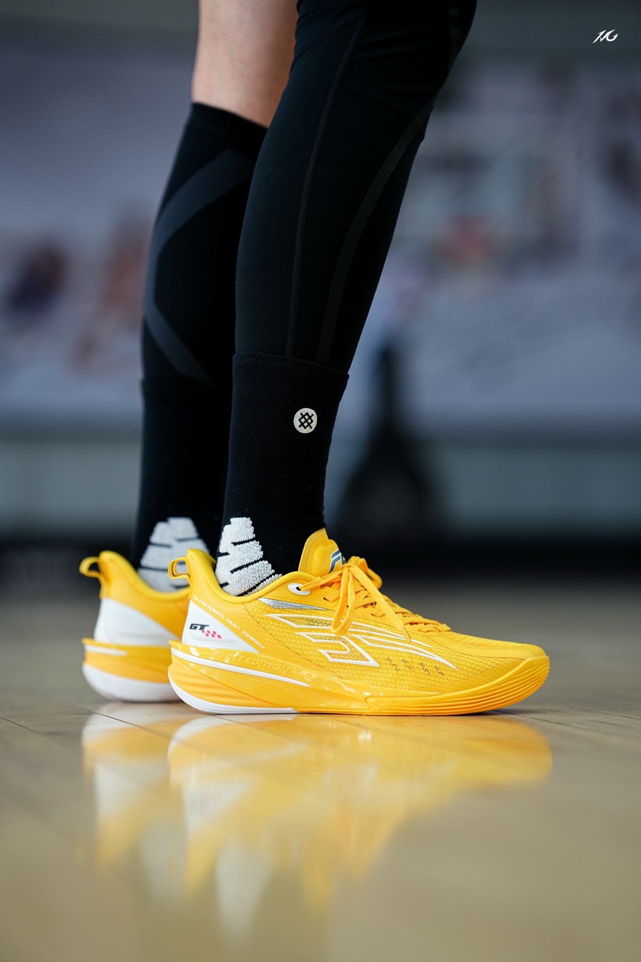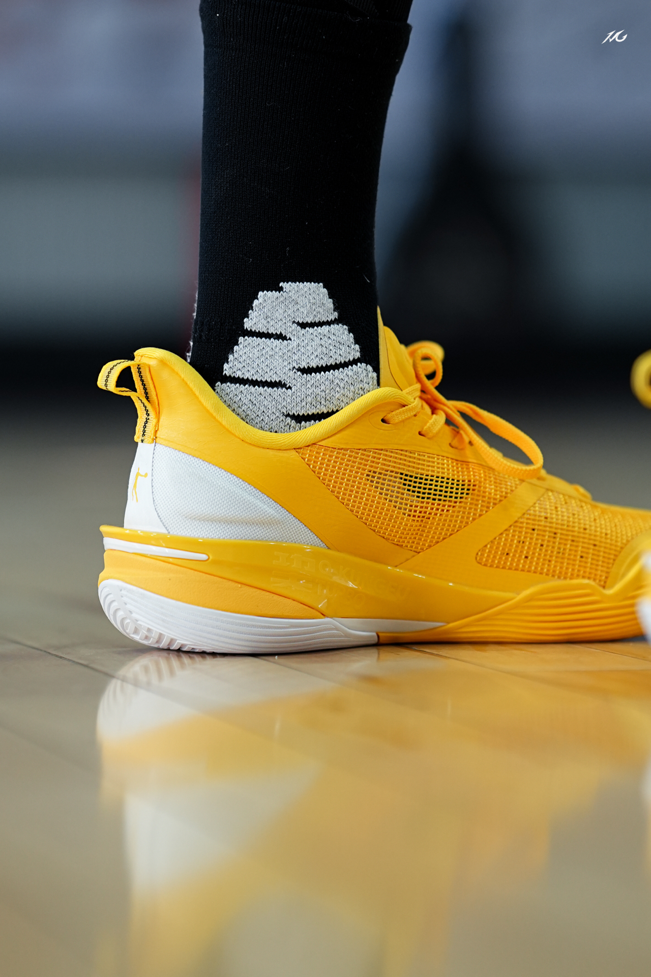 中乔FE这个系列都出到第四代了,体验过后我觉得整体调整的更加低趴迅速,今日上脚这个亮黄色,后跟有个GT标识很帅,骚气后卫喜欢吗? 实战感受前掌重心低有韧性,后掌软弹感比较明显,鞋面很透气适合夏季实战,而且包裹对小宽脚也很友好! 整体我会比较推荐给锋线后卫爱突破选手的选手使用,尺码正常选择!