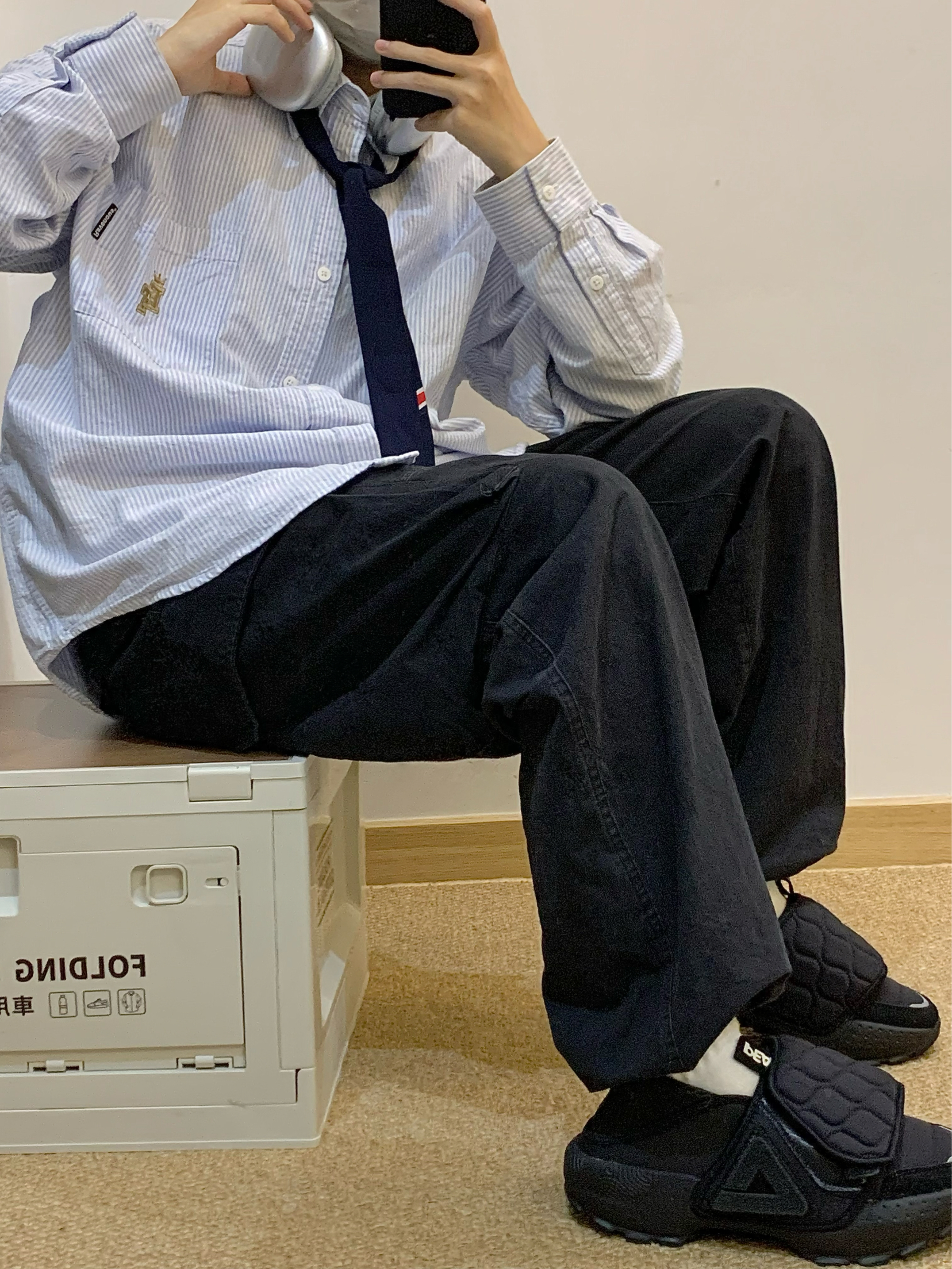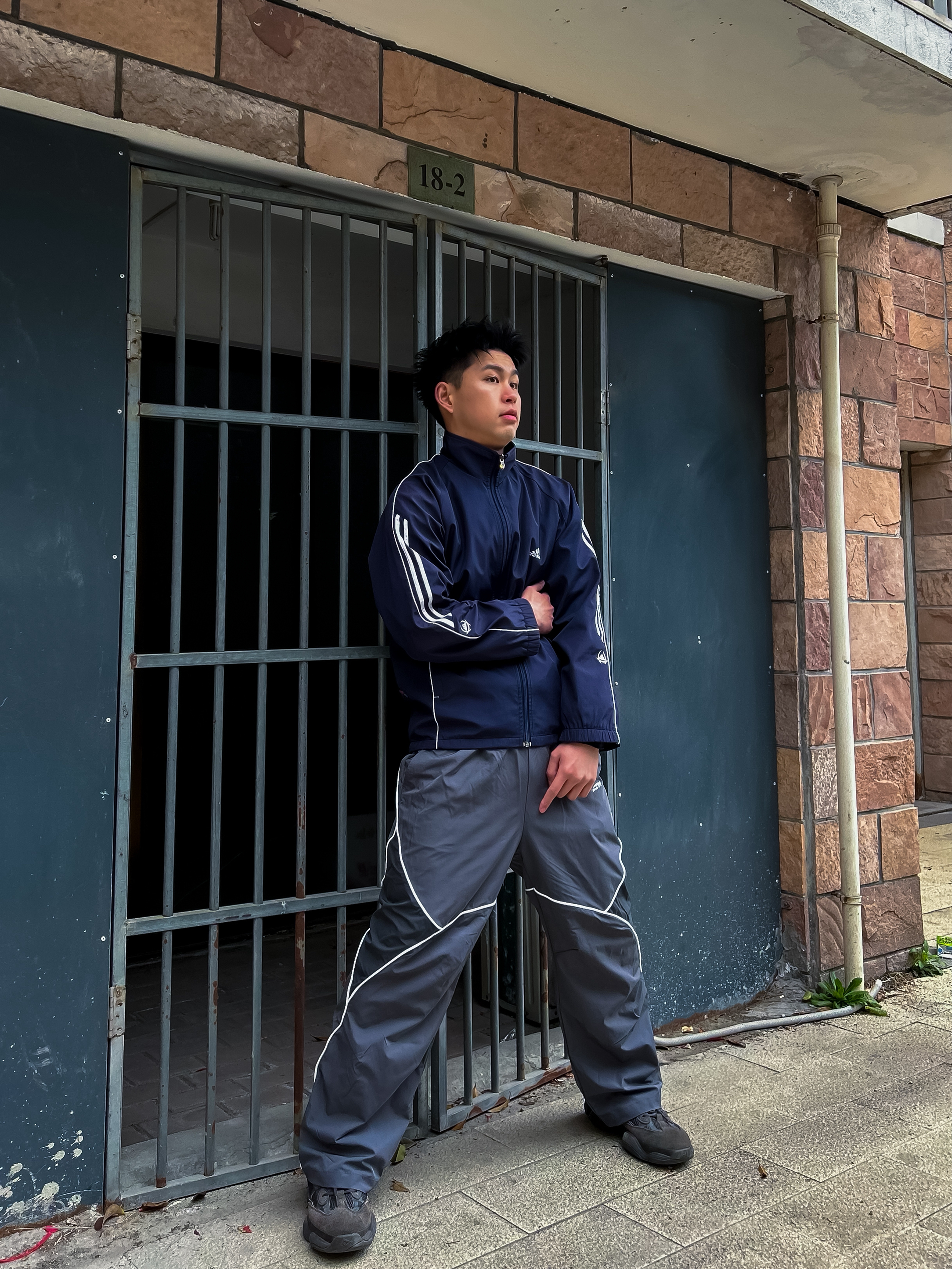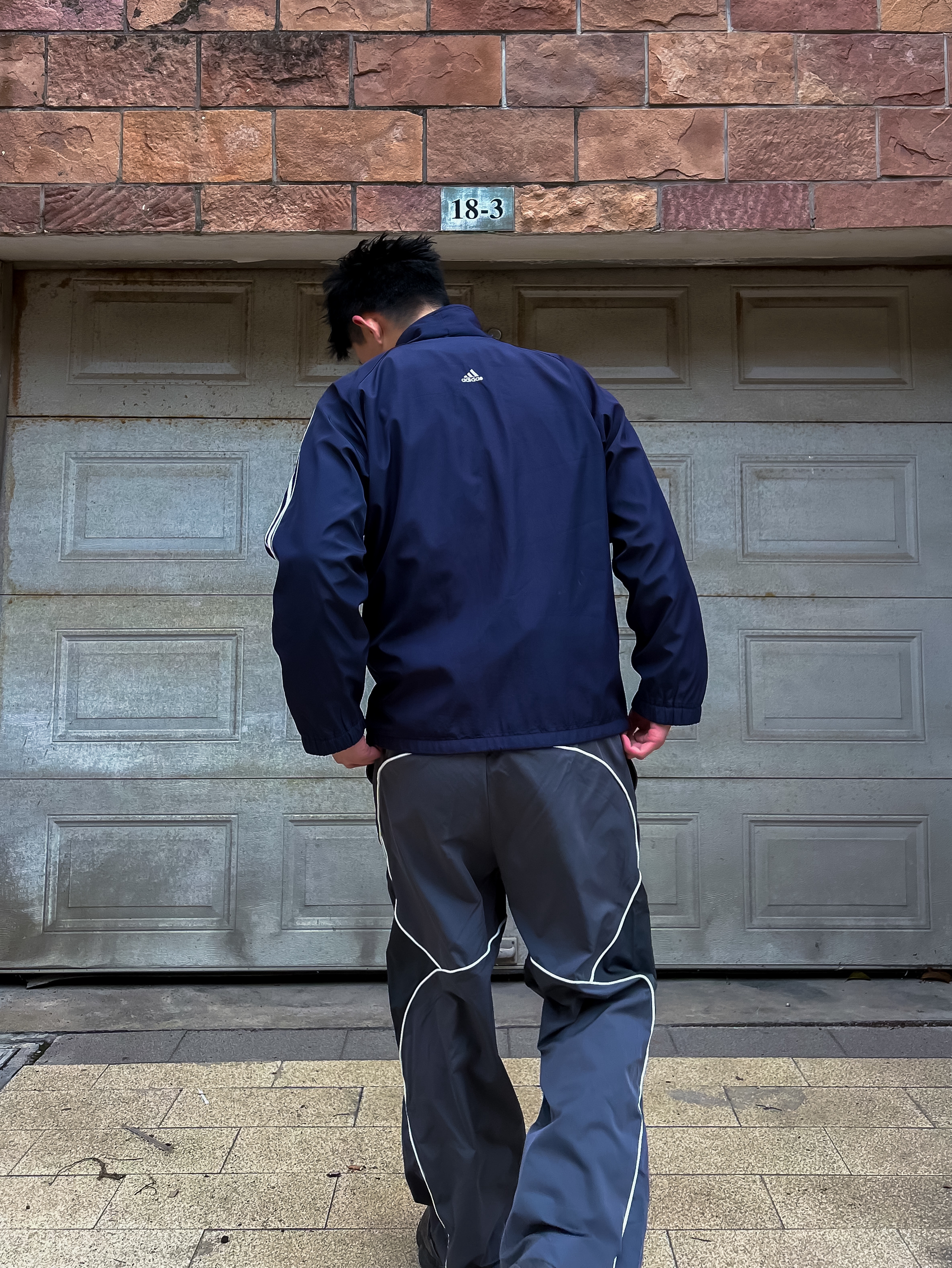 哈咯,这里是卢_SG 藏青复古运动外套+灰调解构长裤 解锁街头松弛感密码✨ 经典三条杠藏青外套,自带复古运动基因 灰调解构长裤以不规则线条打破沉闷 简约中暗藏设计巧思 整套穿搭将复古与街头感融合,随性又不失格调。 轻松拿捏日常出街、citywalk等多种场景