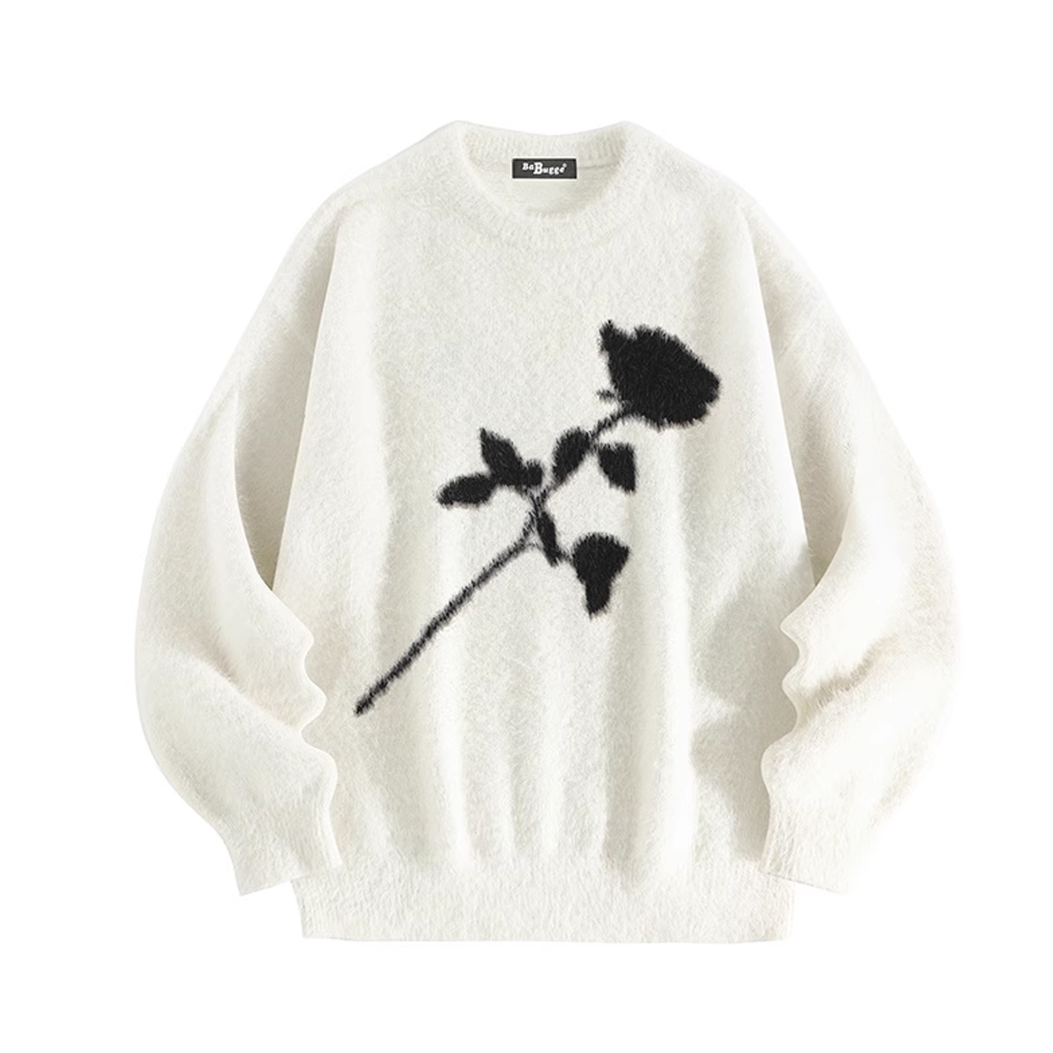 这件毛衣我真的要吹爆了,好吧!拿到手的第一感觉就是——软到离谱!像把云朵穿在身上一样,非常贴身。 我172cm,体重138斤,买的是L码的,但是对我来说稍微大些,M码应该更合适,不过大些的宽松版型刚好盖住胯部,对梨形身材的男生十分友好。 圆领设计不挑内搭,搭个项链就很有氛围感,黑玫瑰提花低调又有细节,不会显得太花哨。最令我惊喜的是它的面料,是那种仿水貂毛的质感...