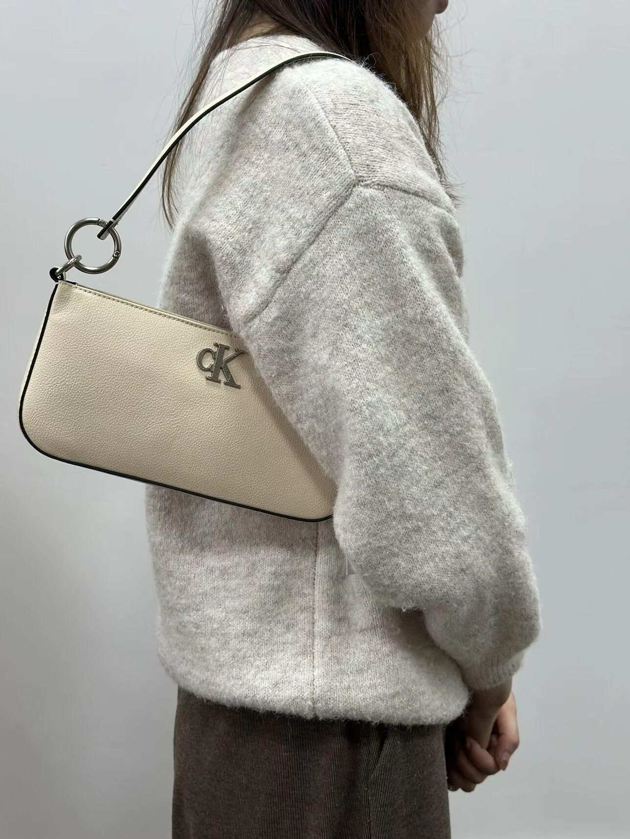 🤍这款Calvin Klein米白色腋下包,荔枝纹皮质细腻耐用,简约大方设计超百搭!正面“CK”金属标志,品牌感满满✨。肩带长度适中,腋下背超舒适,金属环扣细节提升质感。容量刚好,手机、粉饼、钥匙都能装,通勤休闲都OK!米白色温柔百搭,裙装休闲装都能轻松驾驭,法式慵懒氛围感轻松拿捏~