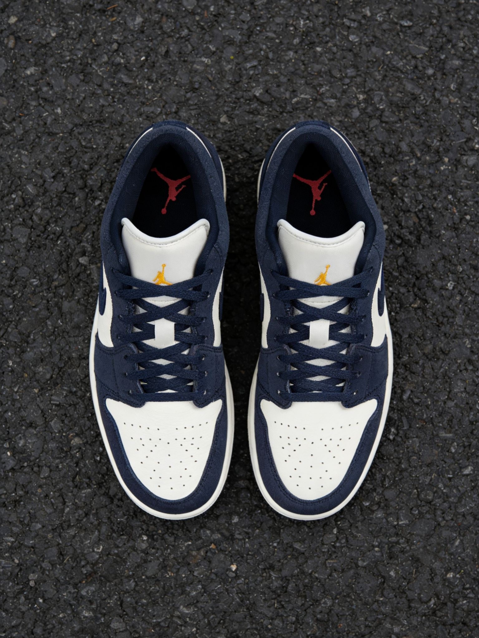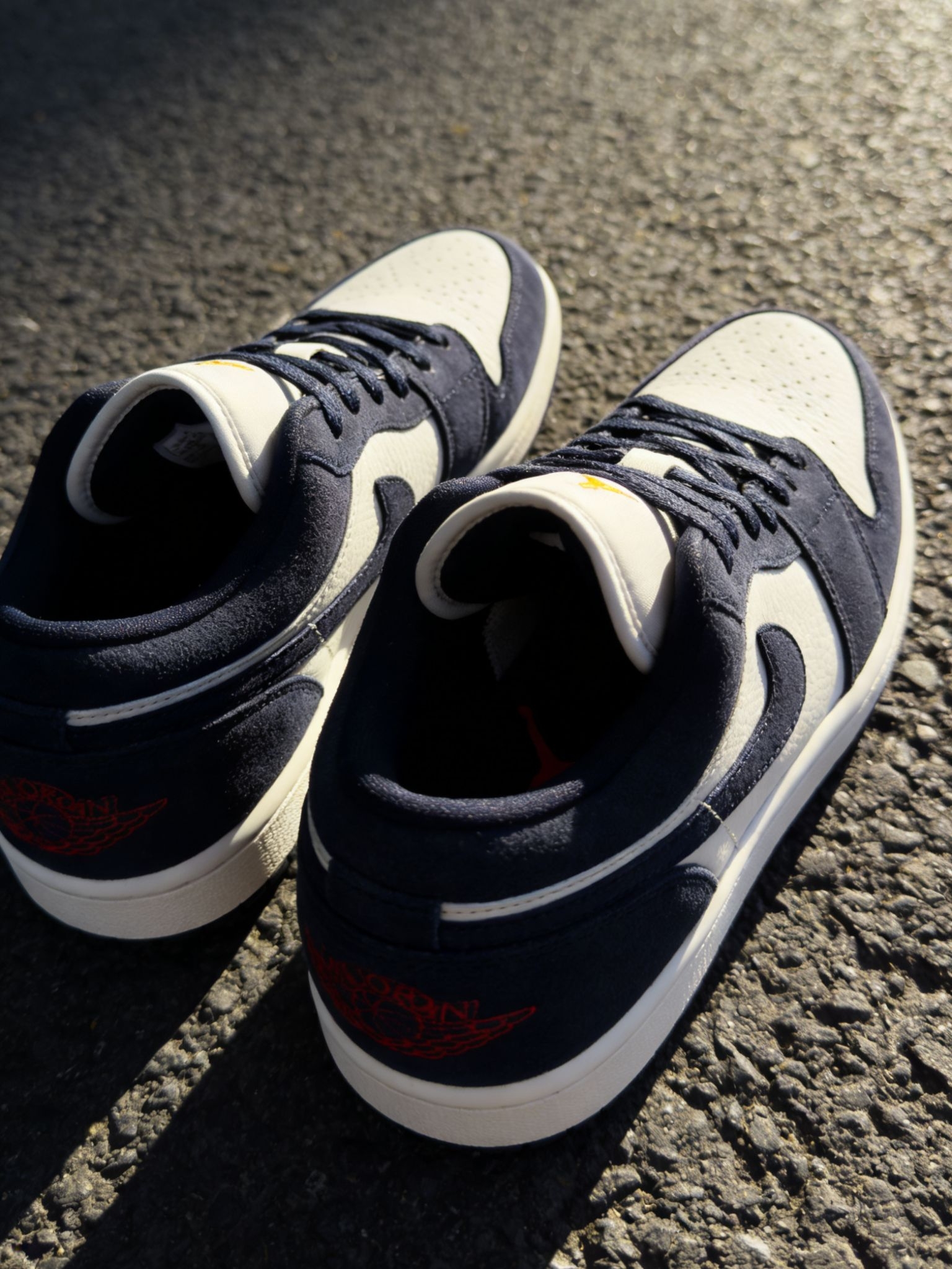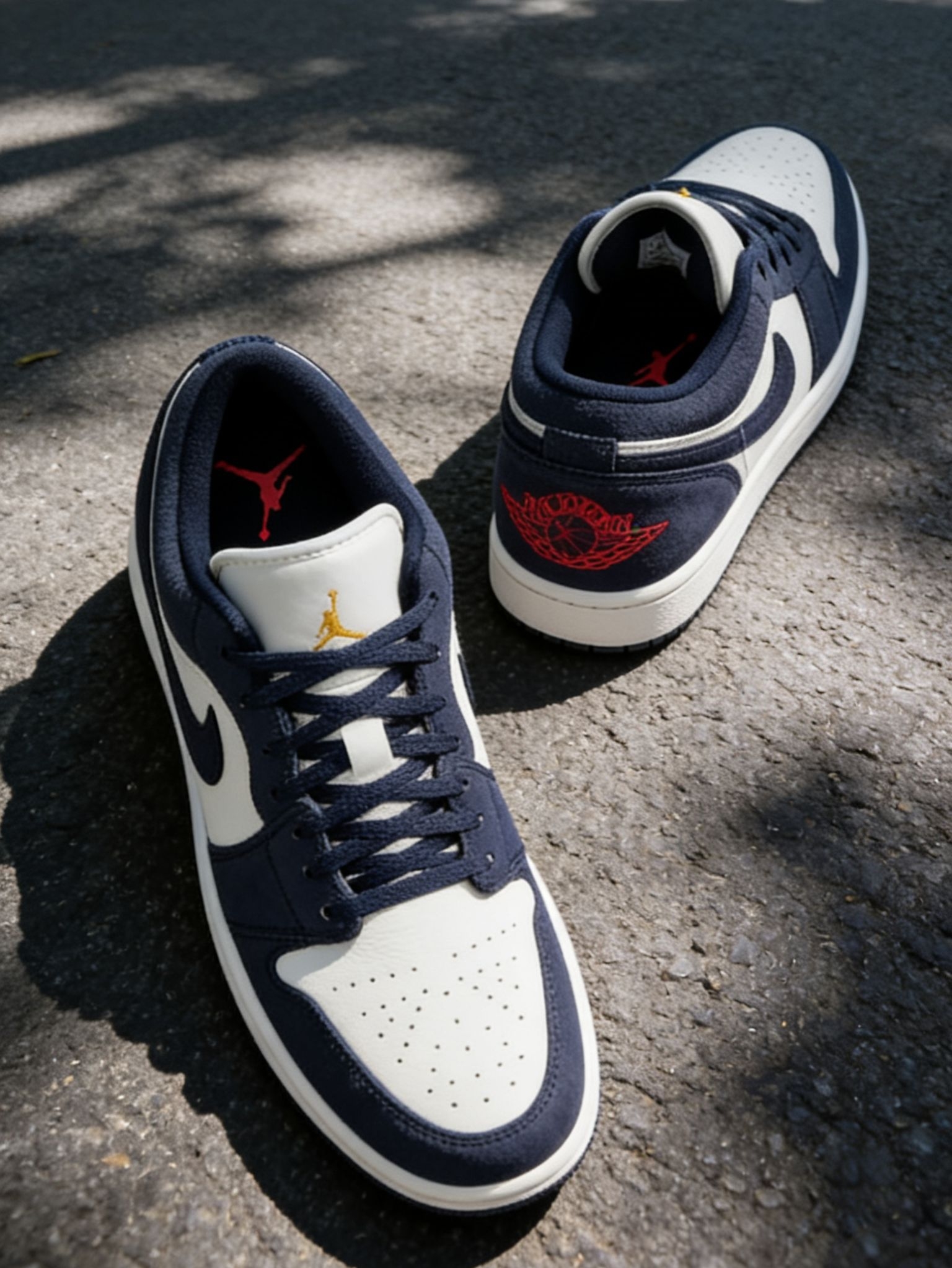 在快节奏的都市里,我们总需要一点「复古留白」。这双Air Jordan1以藏蓝翻毛皮+奶白皮革拼接,像给视觉和情绪都做了一次舒缓SPA。金色飞人Logo与红色飞翼刺绣点缀,既满足日常穿搭的利落感,又能在通勤、逛街时稳稳托住脚步,让每一步都走得松弛又自在。它不是最炸街的款,却是最懂你情绪的「复古白月光」。
