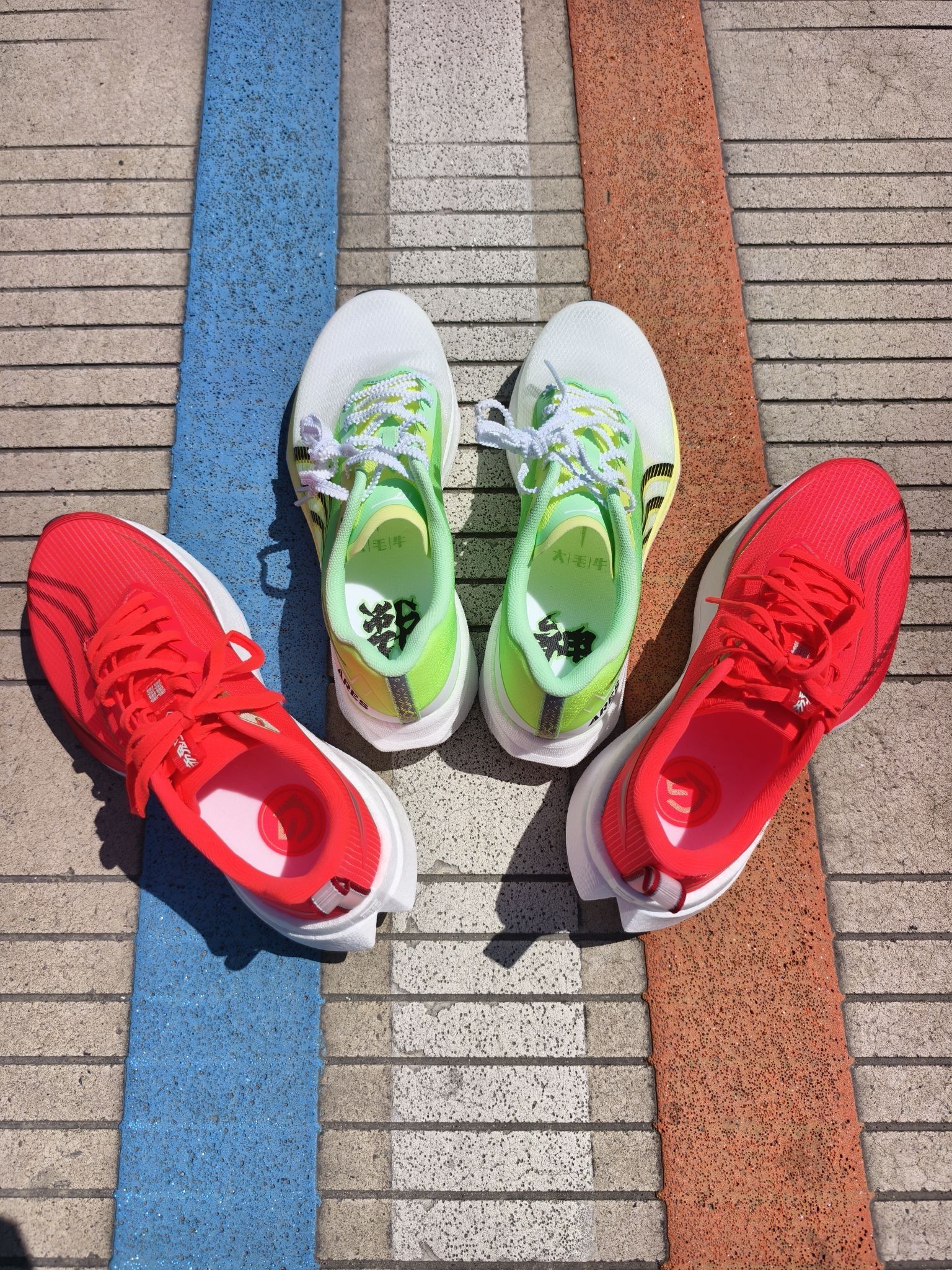 🌿春天跑步就想穿得清爽有活力,两双碳板跑鞋上脚都超轻,跑起来不拖沓,长距离也不累脚,完全是春天的两种打开方式! 🟢多威战神4的青草绿+白渐变,清新感拉满,和春日草地蓝天绝配,网面通透,上脚清爽不臃肿 🔴李宁赤兔9pro的马年限定,元气正红+金线条,亮眼吸睛,搭运动装超提气场 多威4战神:全掌碳板推进力自然不生硬,中底回弹够劲,适合日常慢跑、间歇训练,提速感超爽 李宁赤兔9pro:缓震回弹在...