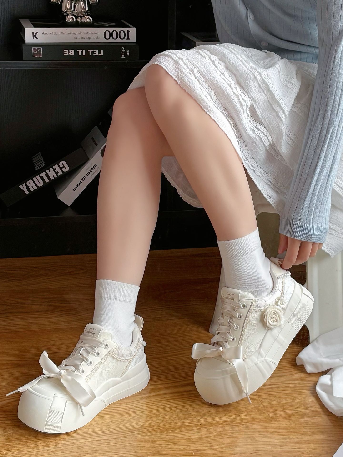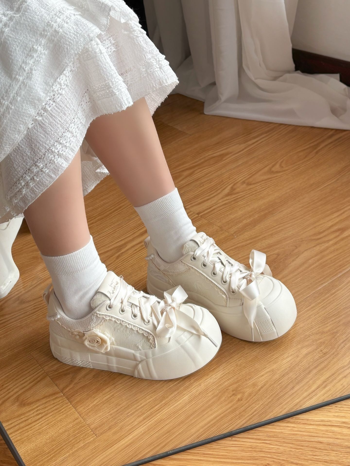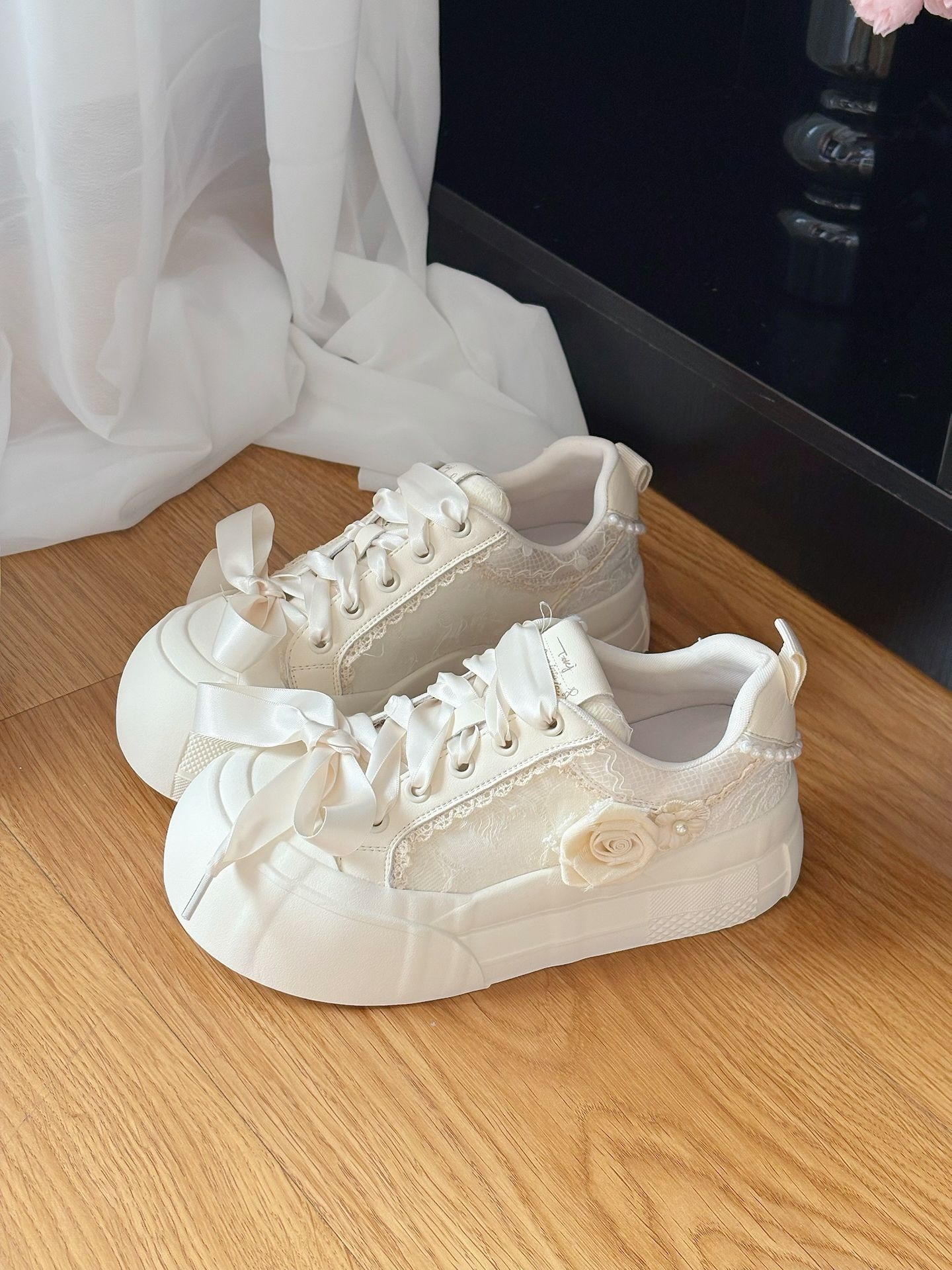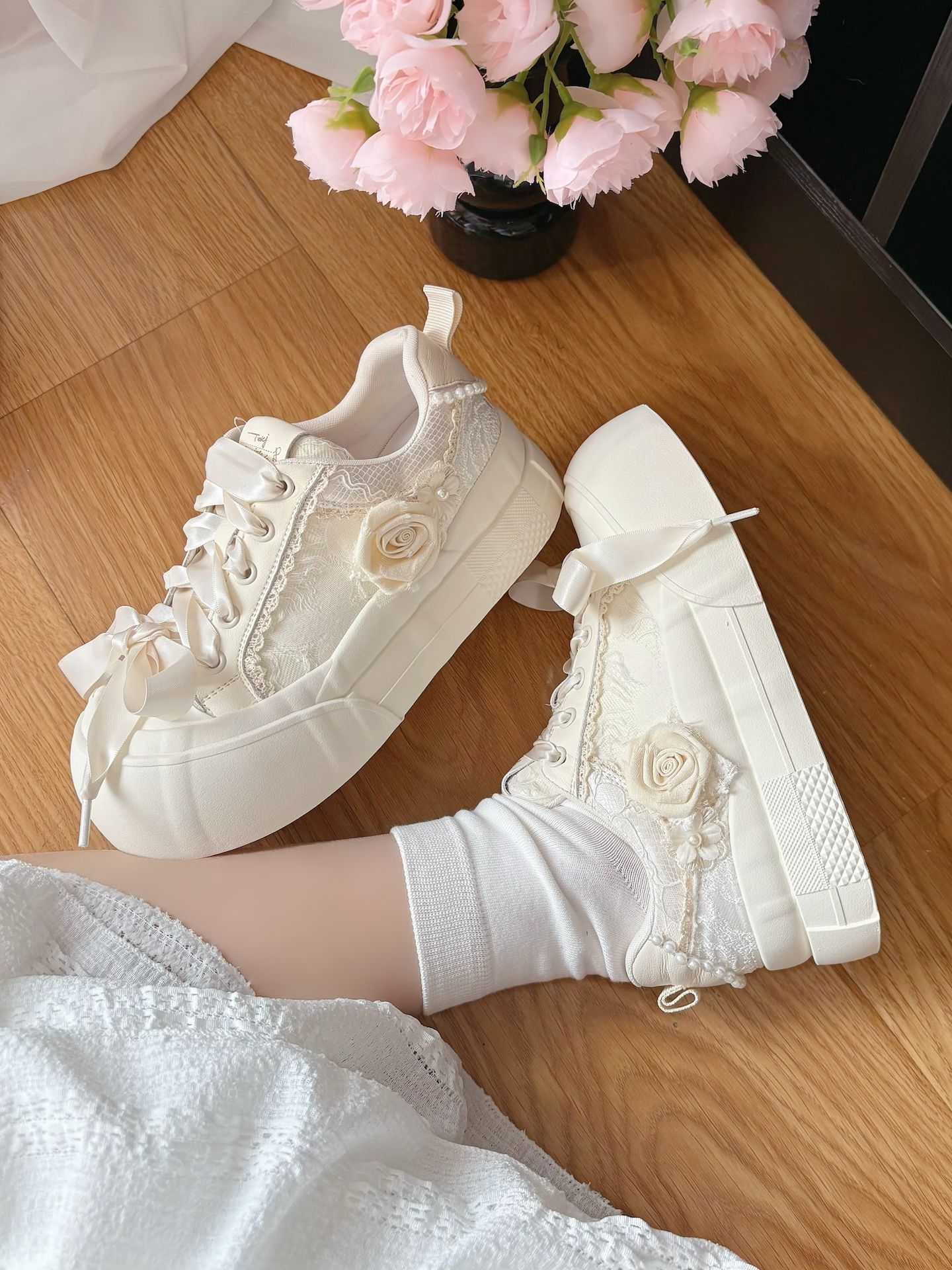 介双帆布鞋好浪漫啊💕 侧面玫瑰花搭配蕾丝鞋带 奶白鞋面 上脚好干净~ 一整个戳到我啦!@TTKJ女鞋 搭配小裙子👗或短裤都好少女👧
