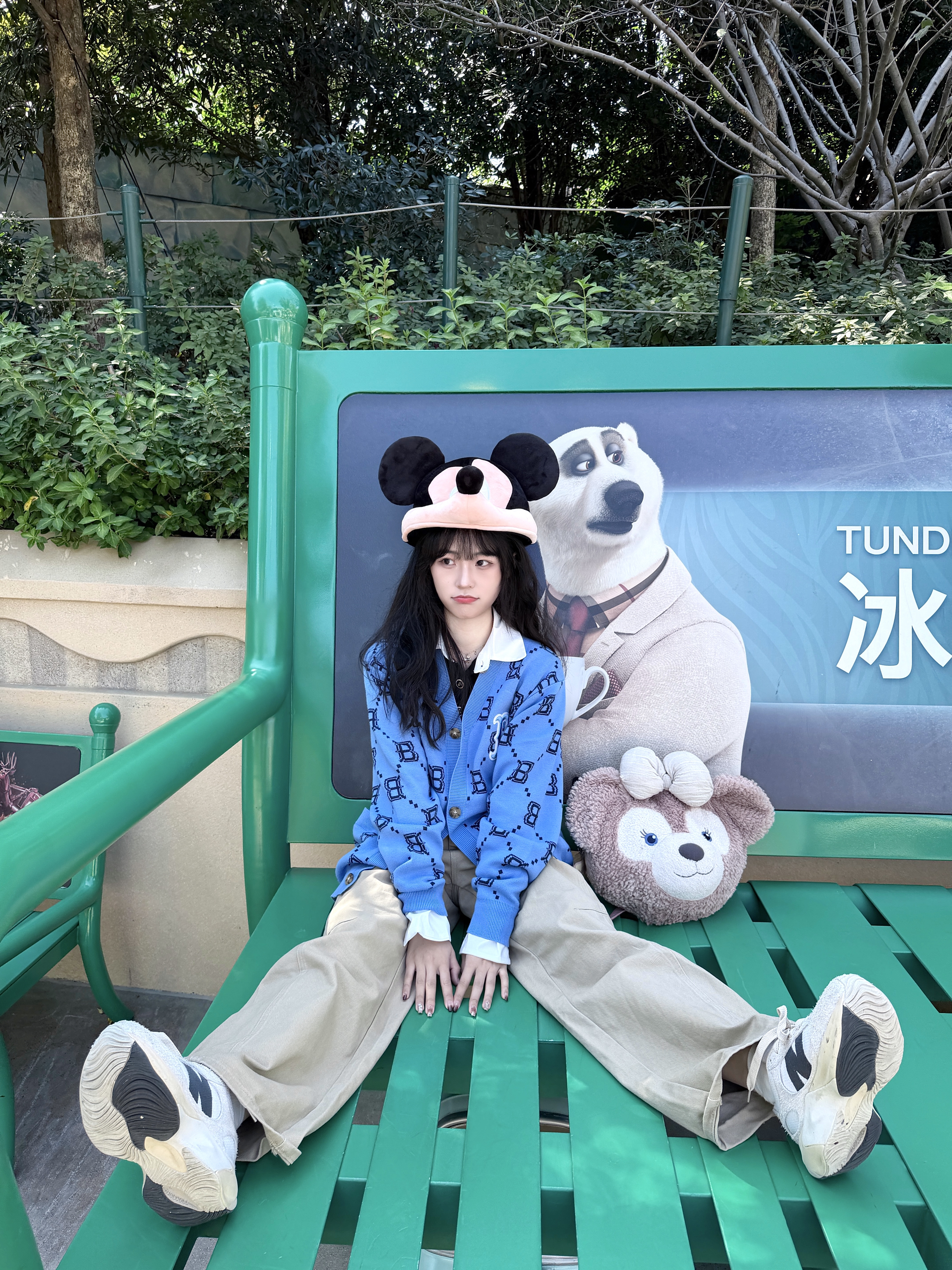 周末去乐园玩,穿这件蓝色开衫太合适了~ 满印的图案很有设计感,料子软软糯糯的,贴身穿也舒服😋 内搭白衬衫,配卡其色阔腿裤,休闲又随性。 颜色显白又元气,拍照很出片,日常出门或者逛乐园都很适配,是会经常穿的一件✨