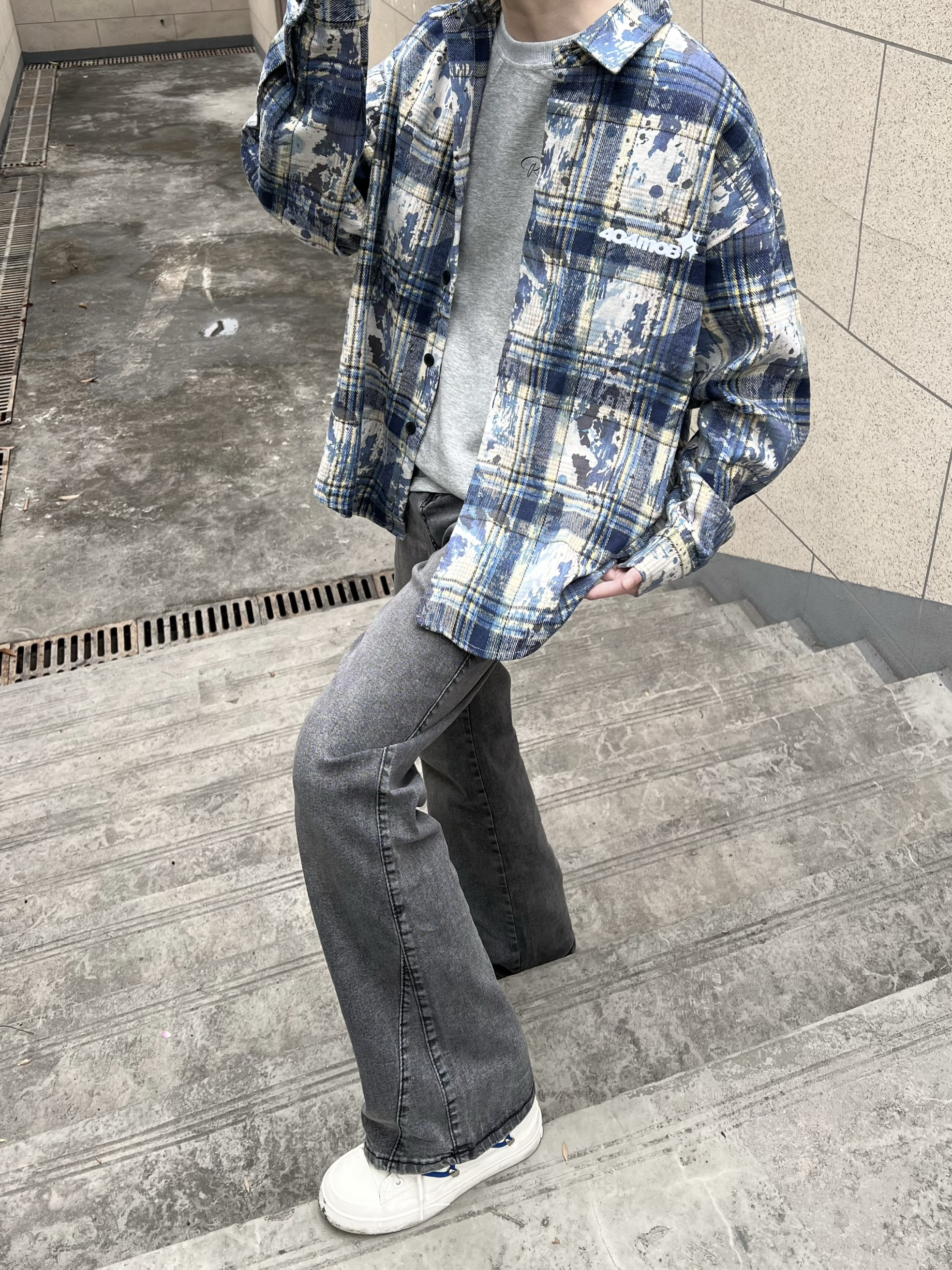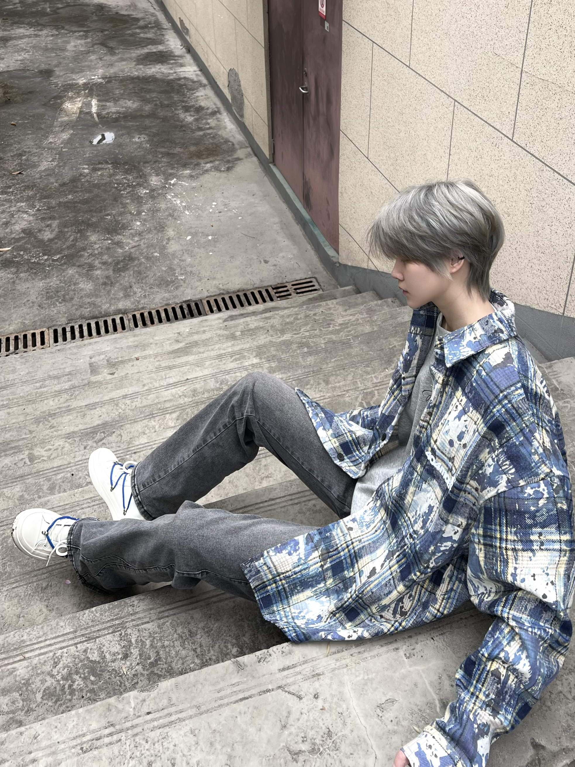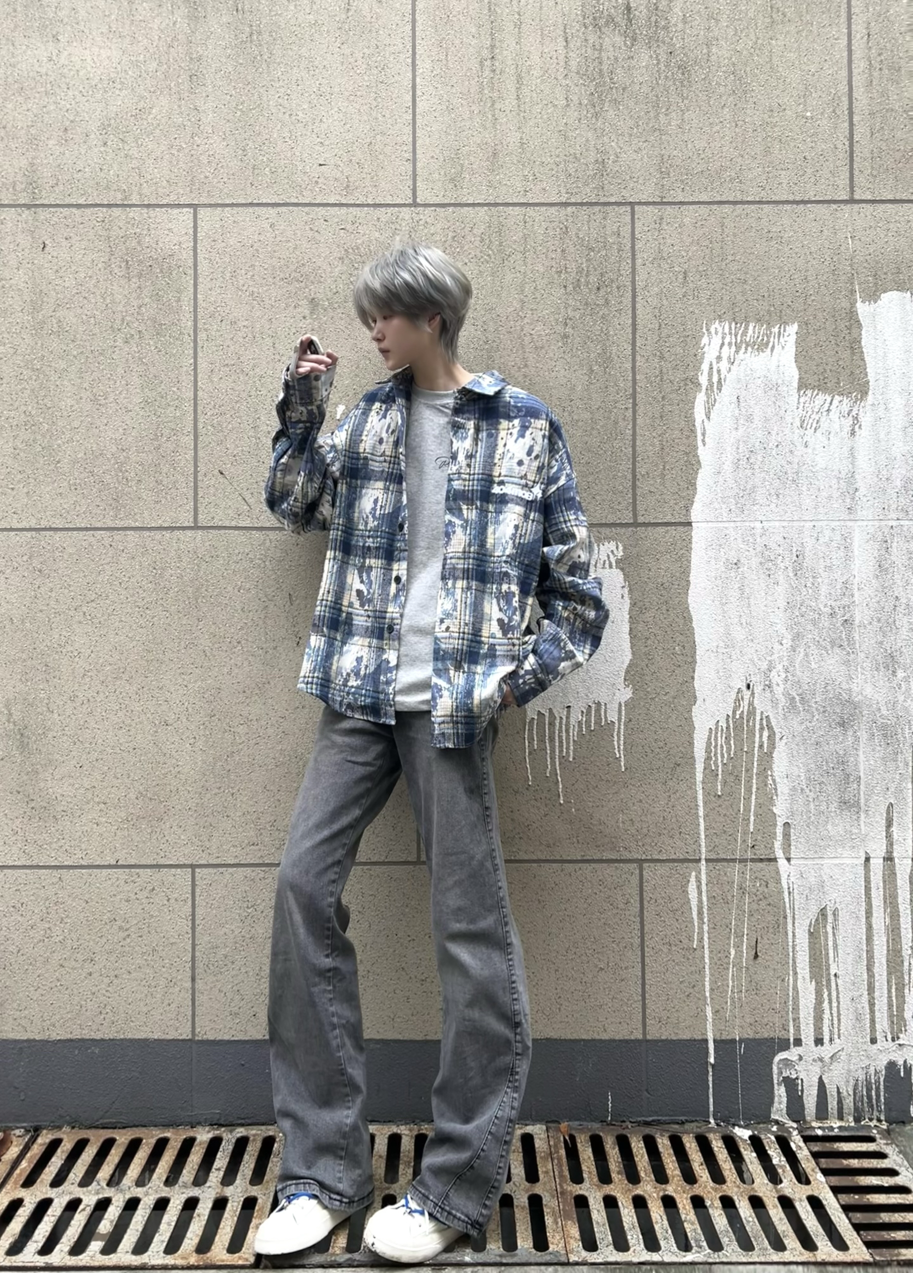 ▫️下装:做旧灰微喇牛仔裤 做旧水洗灰调复古感拉满,微喇裤型完美修饰腿型 宽松不贴腿,梨形、O型腿都能藏,显高显瘦直接封神 ▫️上衣:泼墨格纹衬衫+灰内搭 蓝灰撞色和牛仔裤完美呼应,层次感直接拉满 宽松版型中和裤型,整体松弛感拉满 ▫️鞋子:做旧白帆布鞋 呼应整体色调,复古感拉满 一套下来,清冷少年感拉满,男生春天这么穿,回头率直接拉满