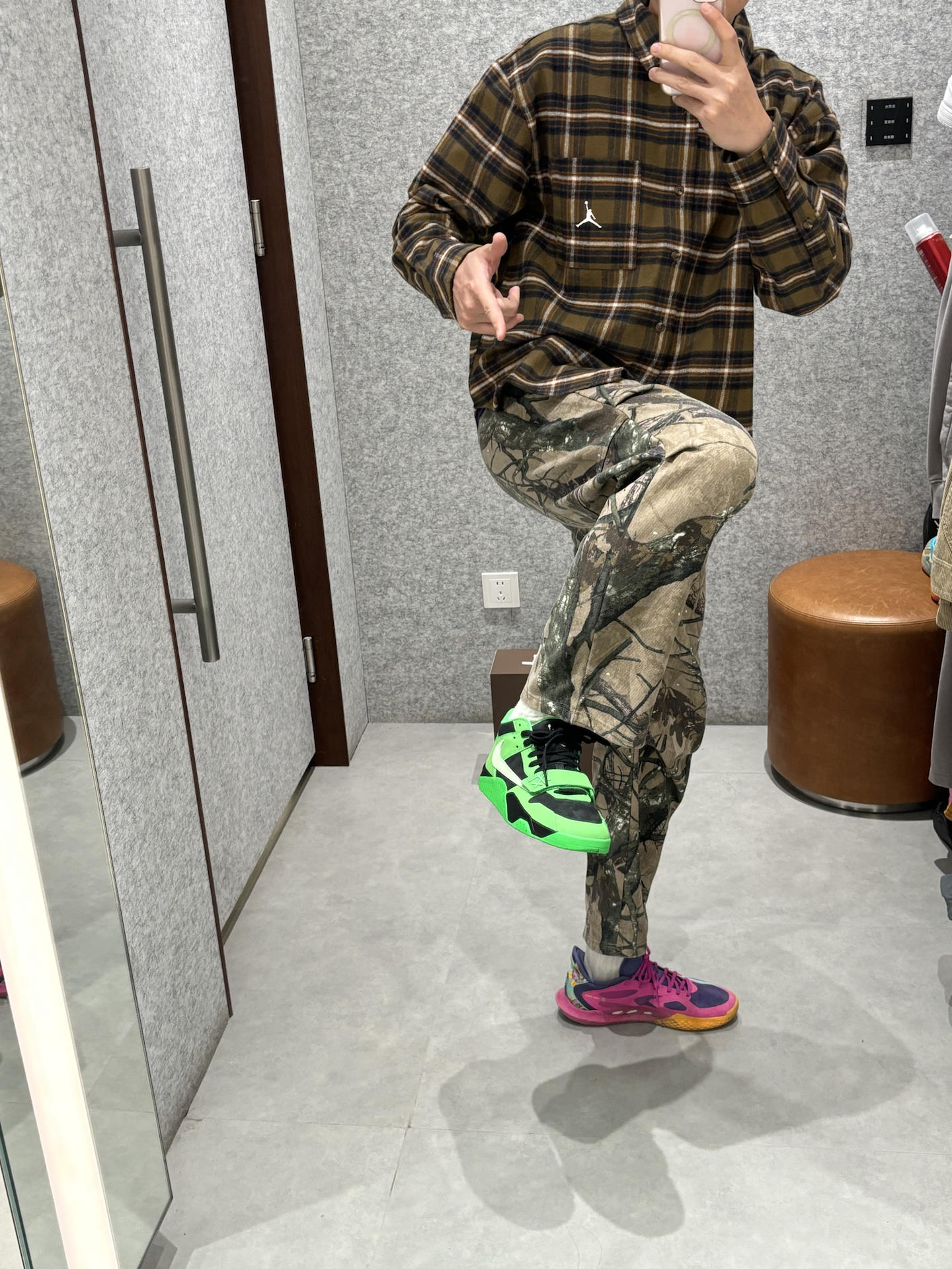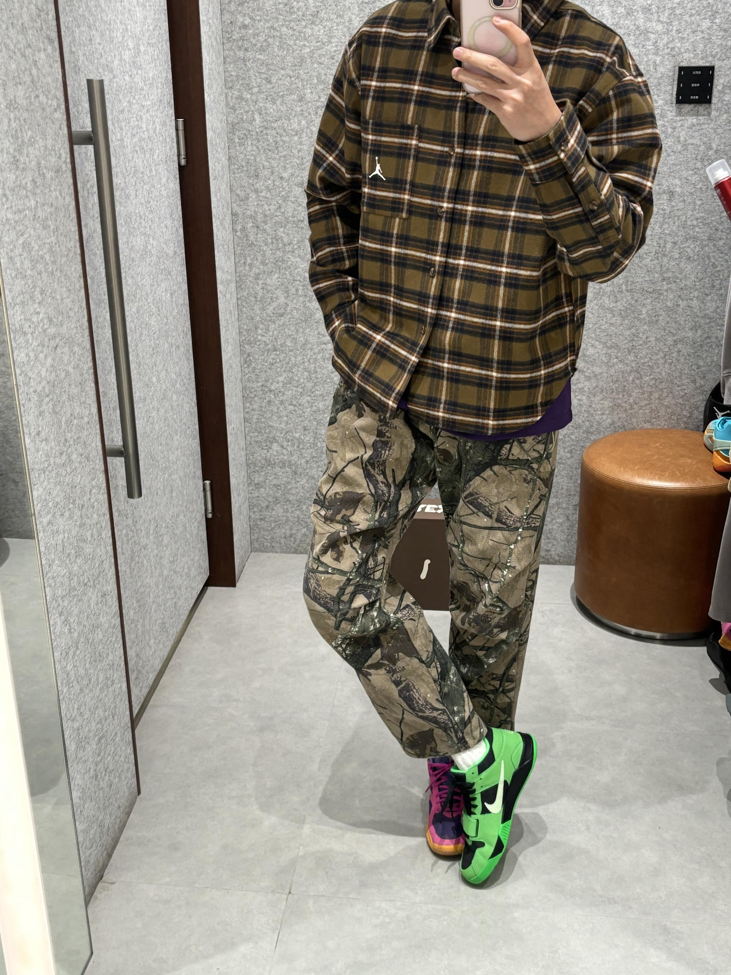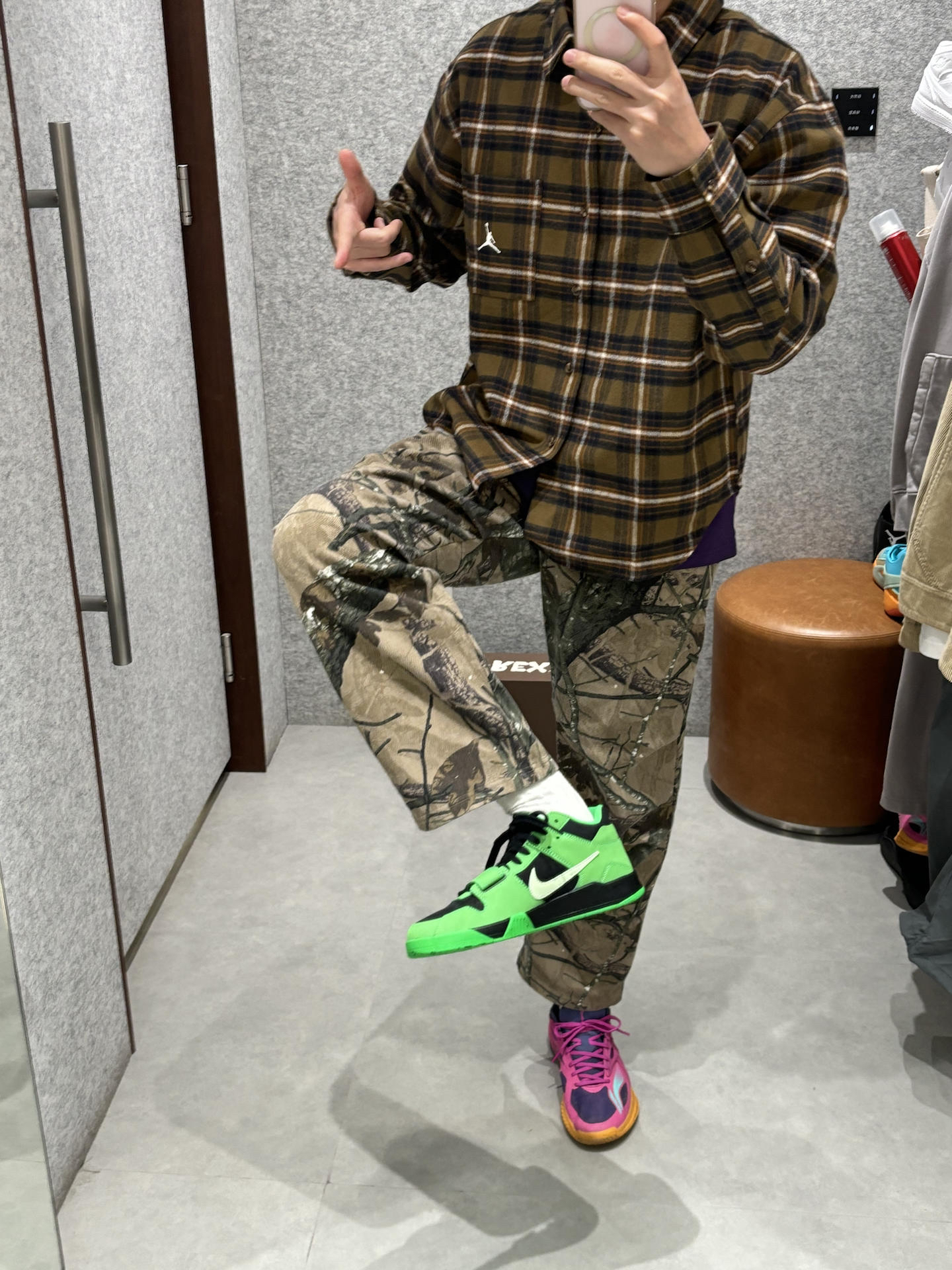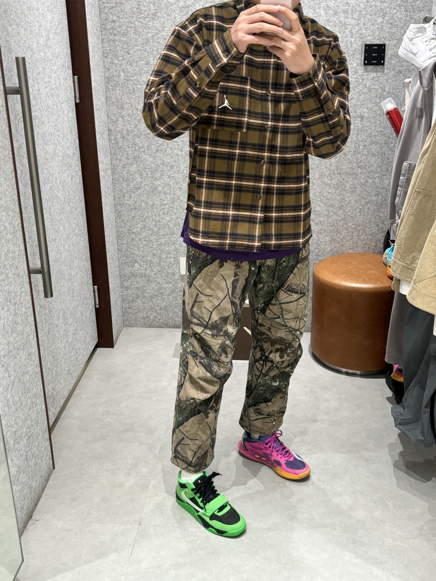 绿色系植树节穿搭 春天就要吃穿点颜色在身上 学生党可以参考下春日的阳光街头ootd 衬衫的黄绿色做旧复古感 搭配户外直筒裤迷彩风 一双绿色点睛之笔 👔jordan衬衫 👖uzis迷彩 👟倒钩板鞋
