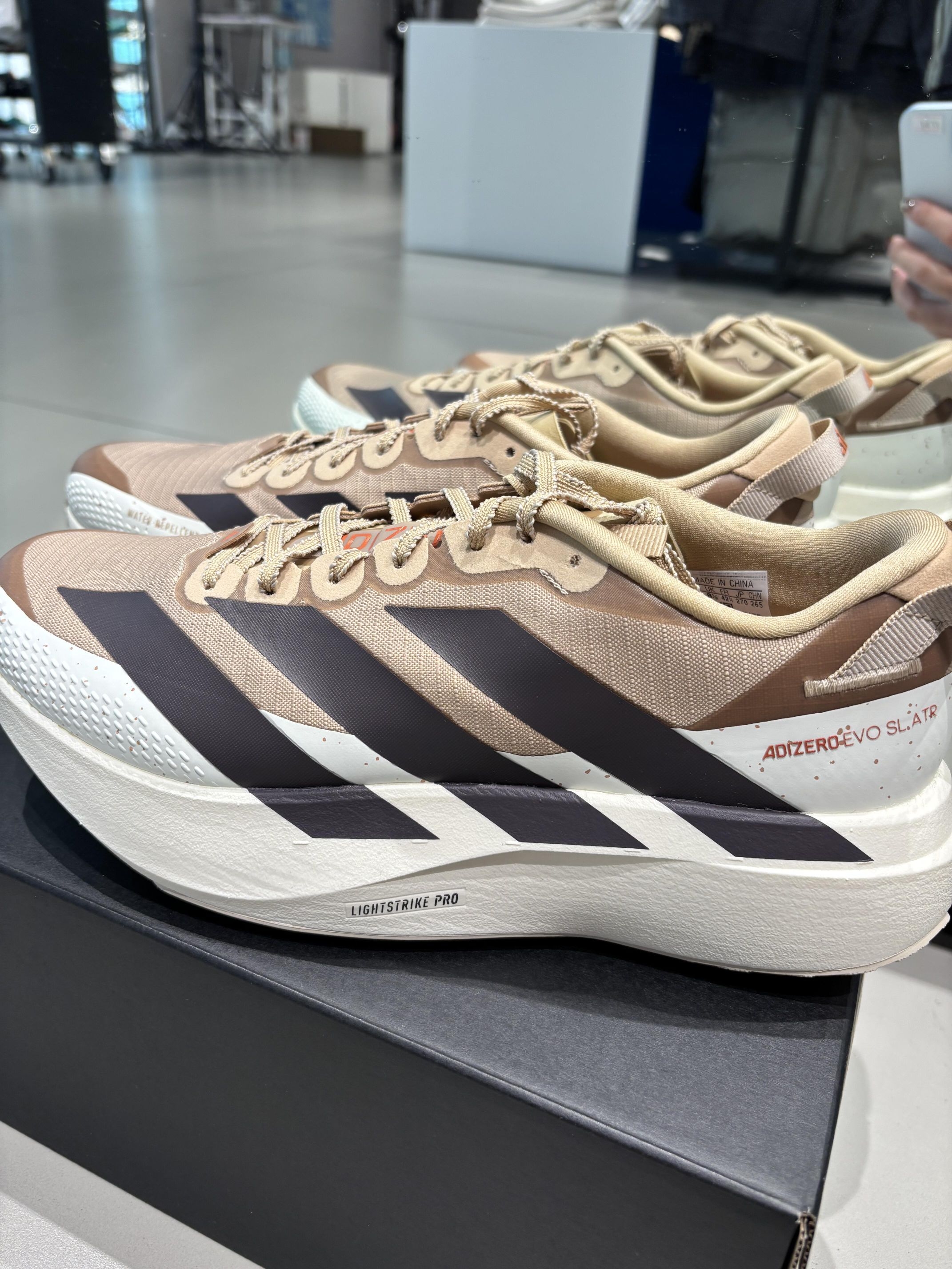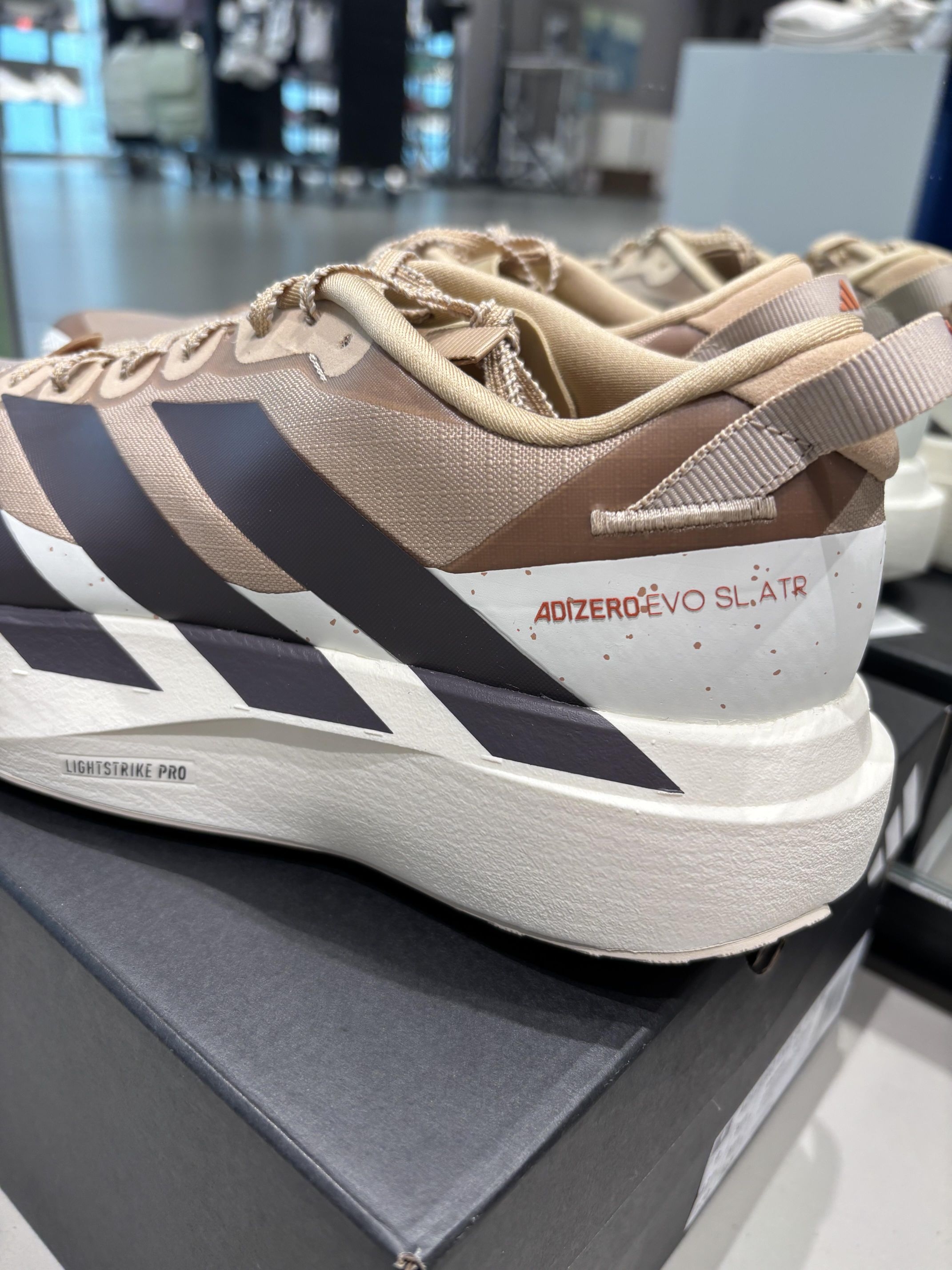 这双卡其棕调的ADIZERO EVO SL ATR也太戳户外风审美了!浅卡其鞋身搭深棕三条杠,鞋边的斑驳质感自带复古松弛感,Water-Repellent防水+Lightstrike Pro中底,不管是城市通勤还是轻徒步都适配,低饱和配色上脚自带“野生感”,这波把户外机能和日常穿搭焊死了👟