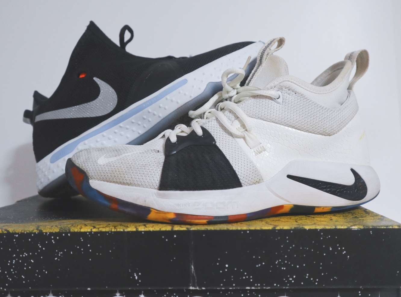 以前买过一双PG2 NCAA,白色的,感觉实战性很ok,性价比也高,后来这双PG4出了,外观及其配置成为大众槽点,定价也是849这样一个价位,不过后面降到了360多,就入手了,其实说实话感觉还不错,没有网上说的实战性那么差,可能我主投手吧哈哈哈哈
