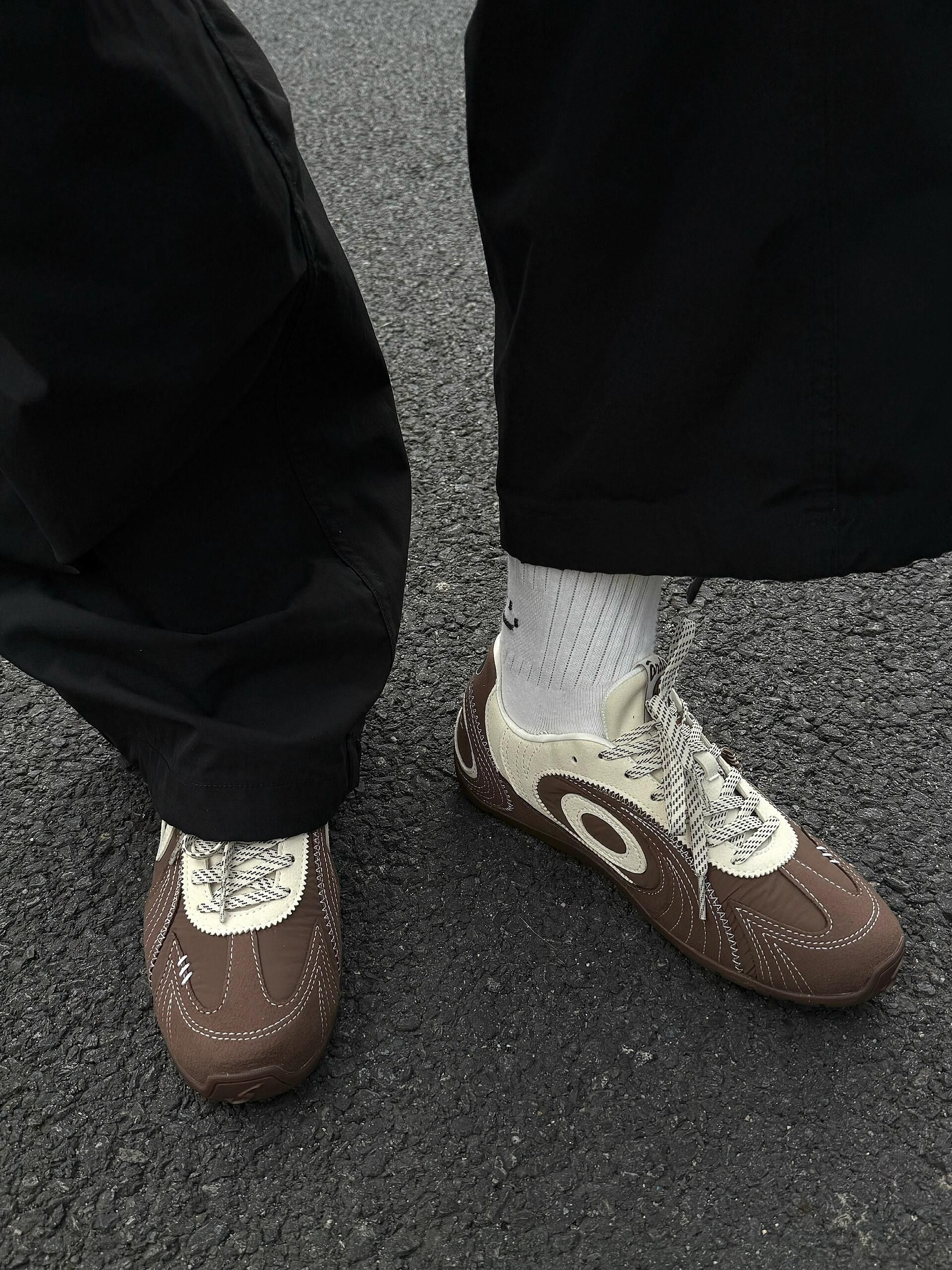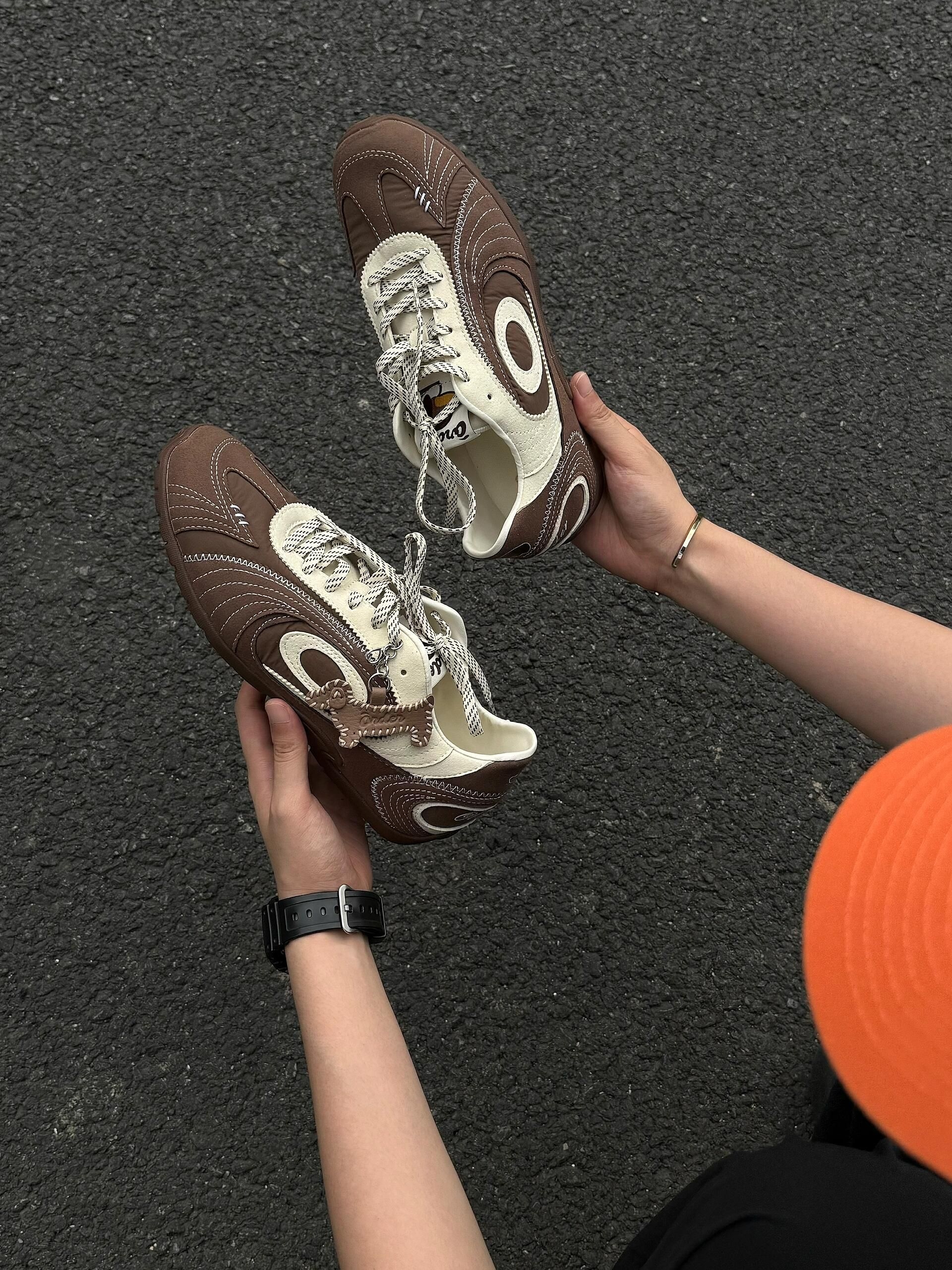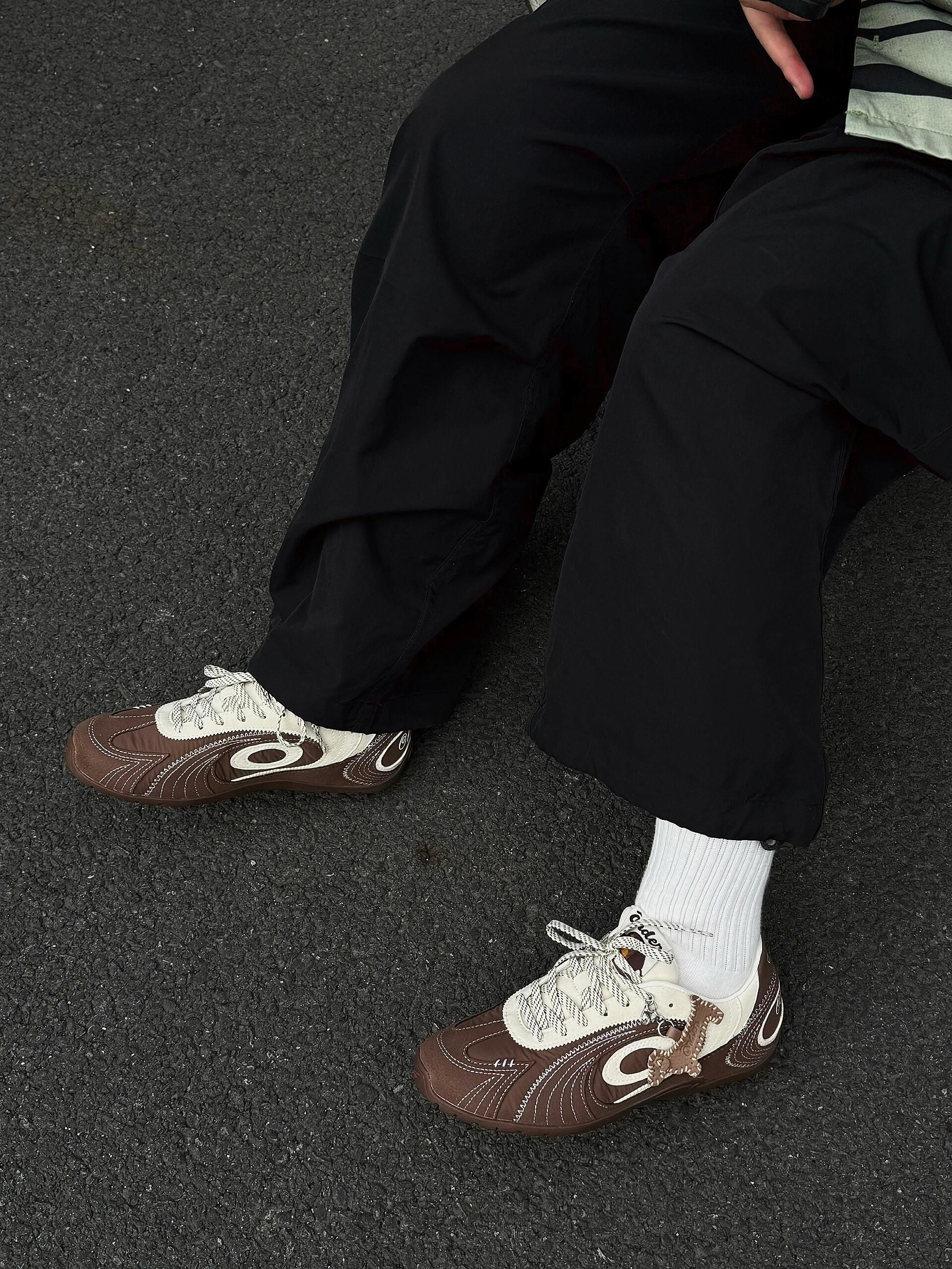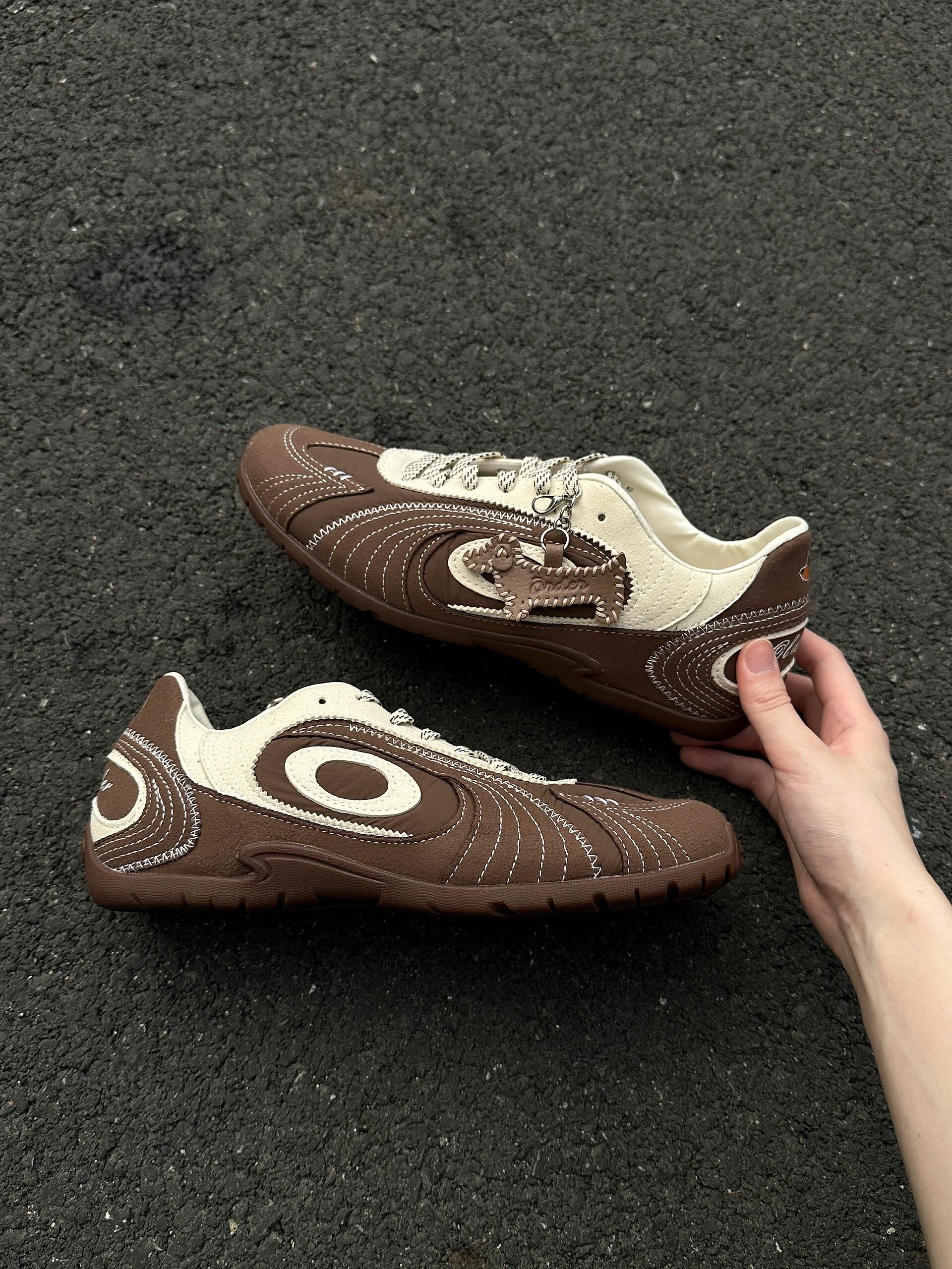 这双棕白赛车鞋,真的美拉德本命款🤎 棕白拼色+复古鞋型,氛围感拉满✨ 腊肠狗挂件超可爱,细节感直接拉满 上脚显脚小不臃肿,宽脚也能冲 脚感软乎乎,日常暴走无压力 百搭各种风格,秋冬穿超有味道 小众不撞款,闭眼入不亏!
