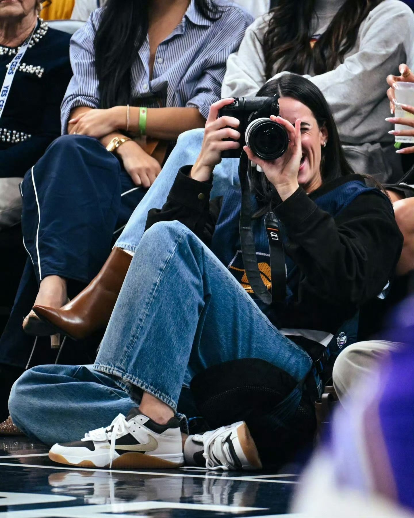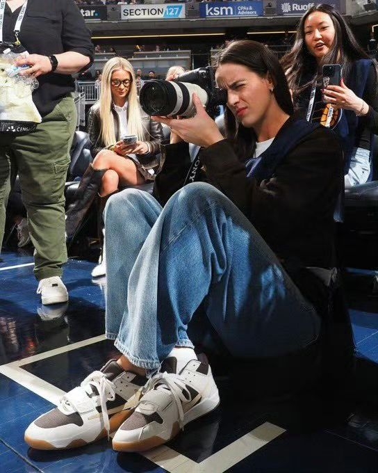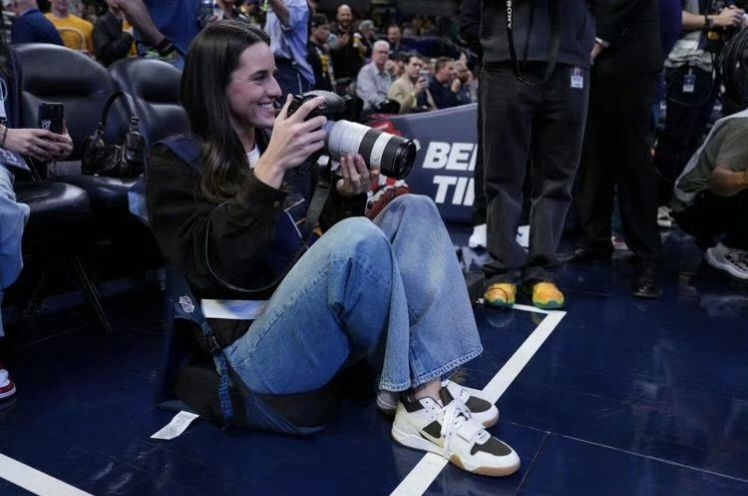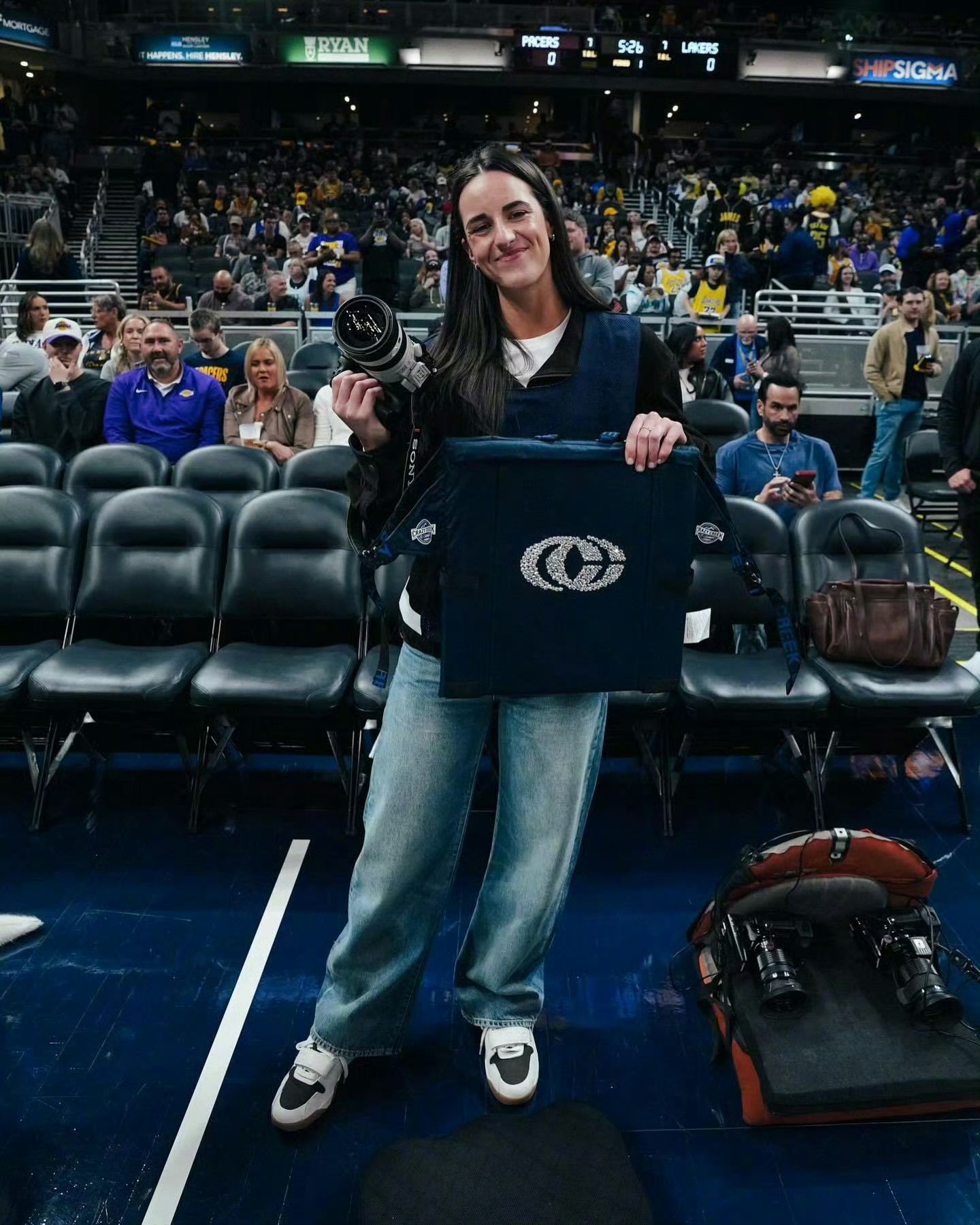湖人客场干翻步行者,WNBA球星凯特琳·克拉克直接化身场边摄影记者,拿着长焦镜头蹲在底线拍老詹,拍到偶像的时候那嘴角都快咧到耳根了,谁看了不说一句“这才是真·小迷妹”! 去年跟老詹合影她就说过,詹姆斯是她的偶像GOAT,这次直接用镜头追星,这波操作真的太会了,追星天花板实锤!