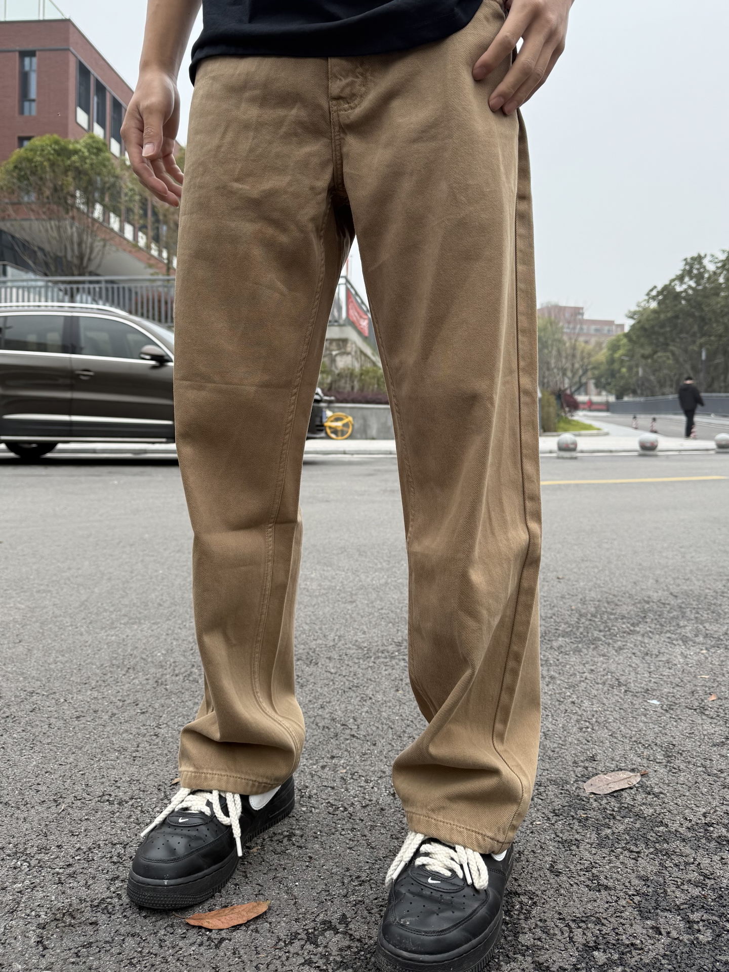 今日份户外OOTD穿搭分享,来自 品牌家这款高街美式纯色牛仔裤👖 入手的卡其色配色上身超级百搭,宽松直筒的版型非常的显高,修饰腿型和身材,搭配短袖外套都好看,整体面料很细腻柔软上身穿起来非常的舒服,面料是不容易褪色的,我身高182体重67公斤选的XL码,喜欢的宝子可以入手!