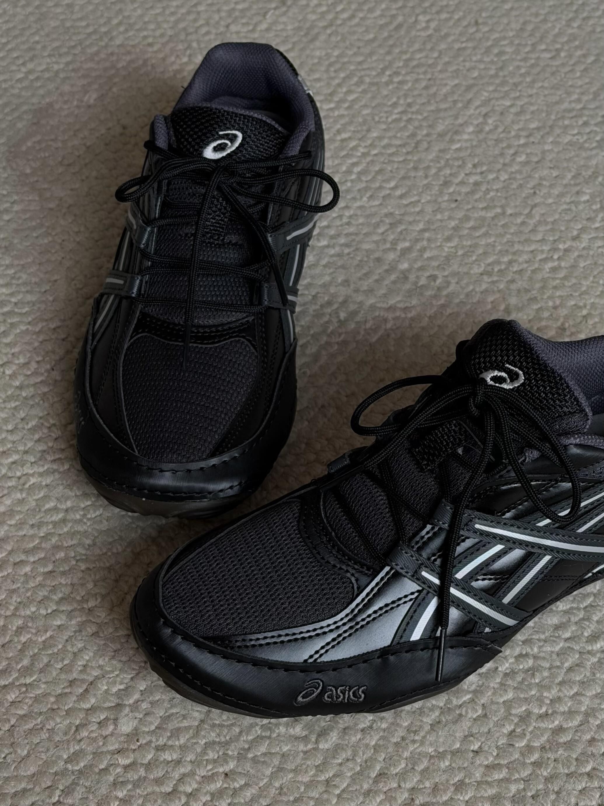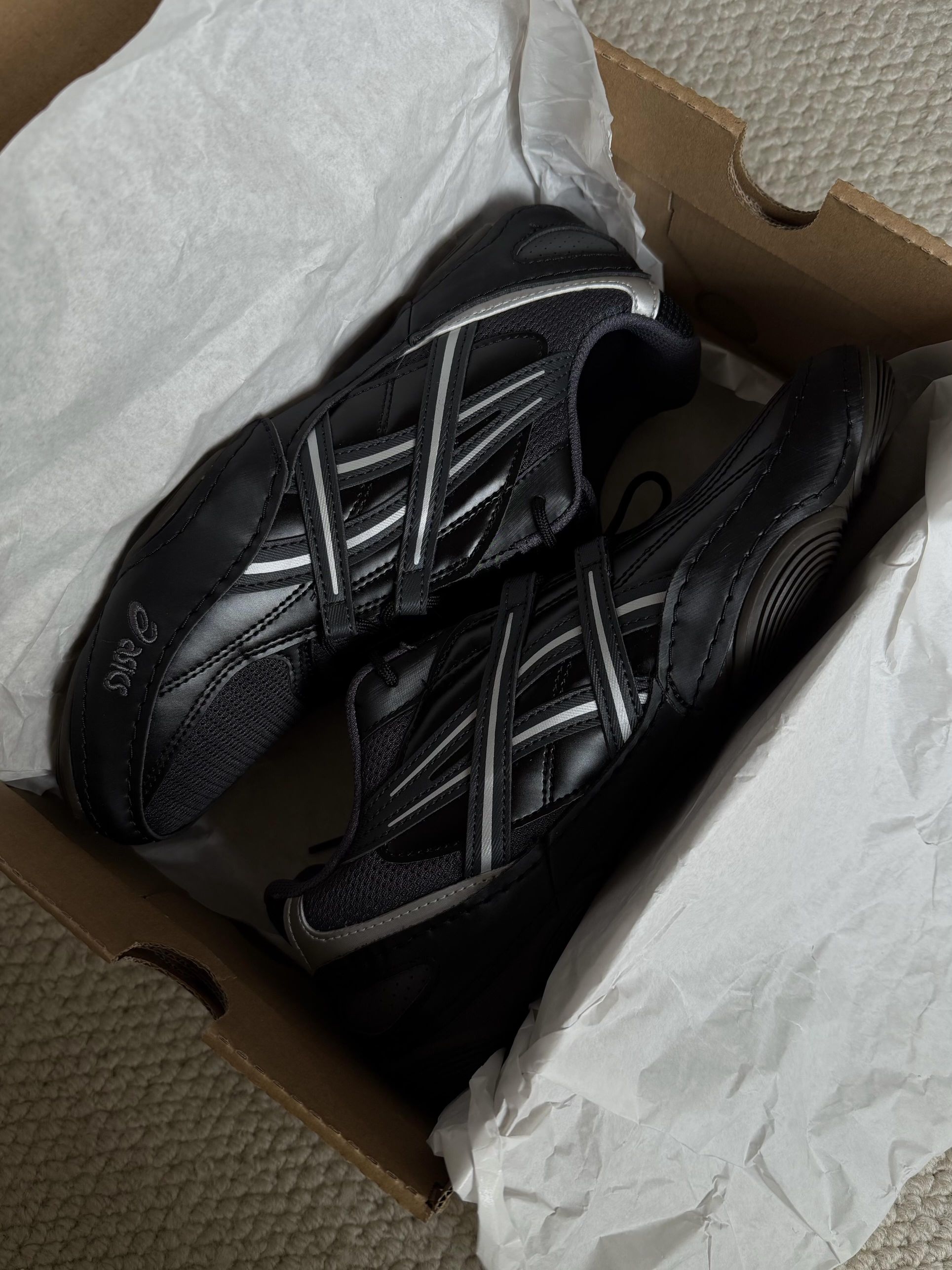 🖤ASICS HYPERSYNC复古运动鞋,黑色网布+合成革拼接,透气又耐穿!鞋侧经典条纹,复古感满满,低帮设计超灵活,日常穿搭或轻运动都OK✨。中底缓震,长时间走路也很舒服,橡胶鞋底抓地力强,