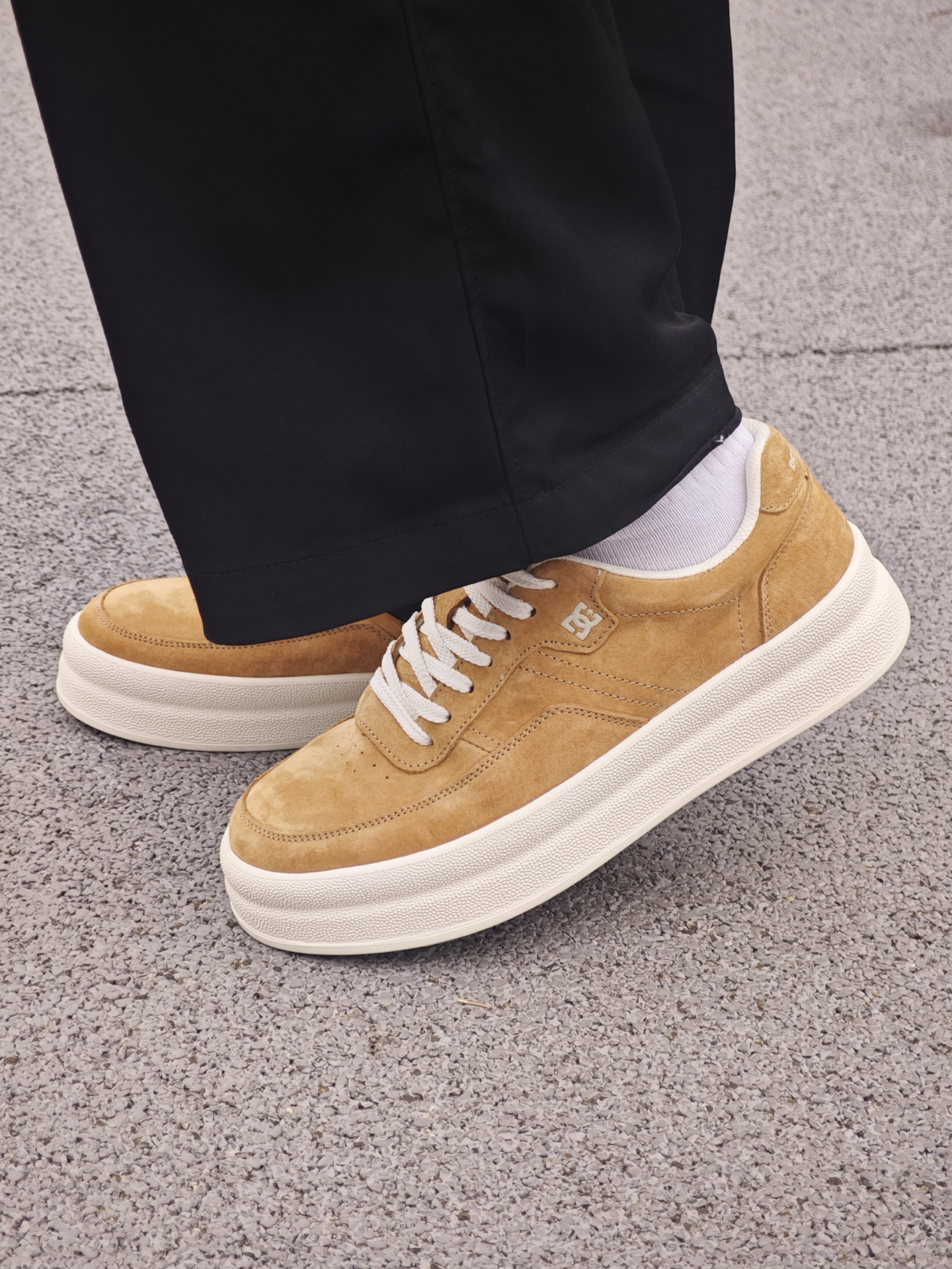 这双DC的板鞋上脚秒变焦点 鞋底厚度刚刚好 不是那种夸张的“增高神器” 但能悄悄拉长腿部线条 小个子男生也能轻松驾驭 搭配休闲裤牛仔裤都是不错的 正常尺码就可以,不偏码