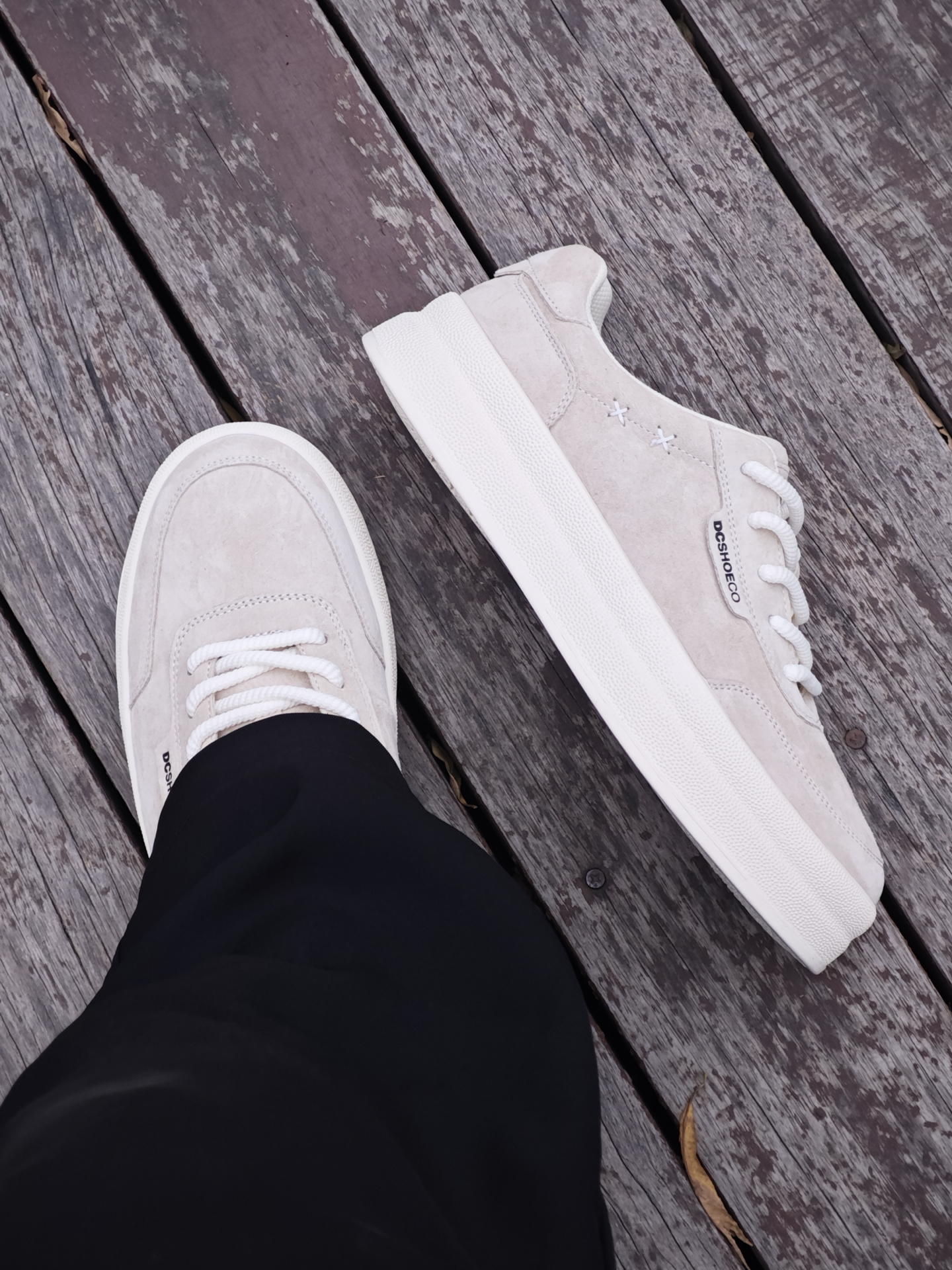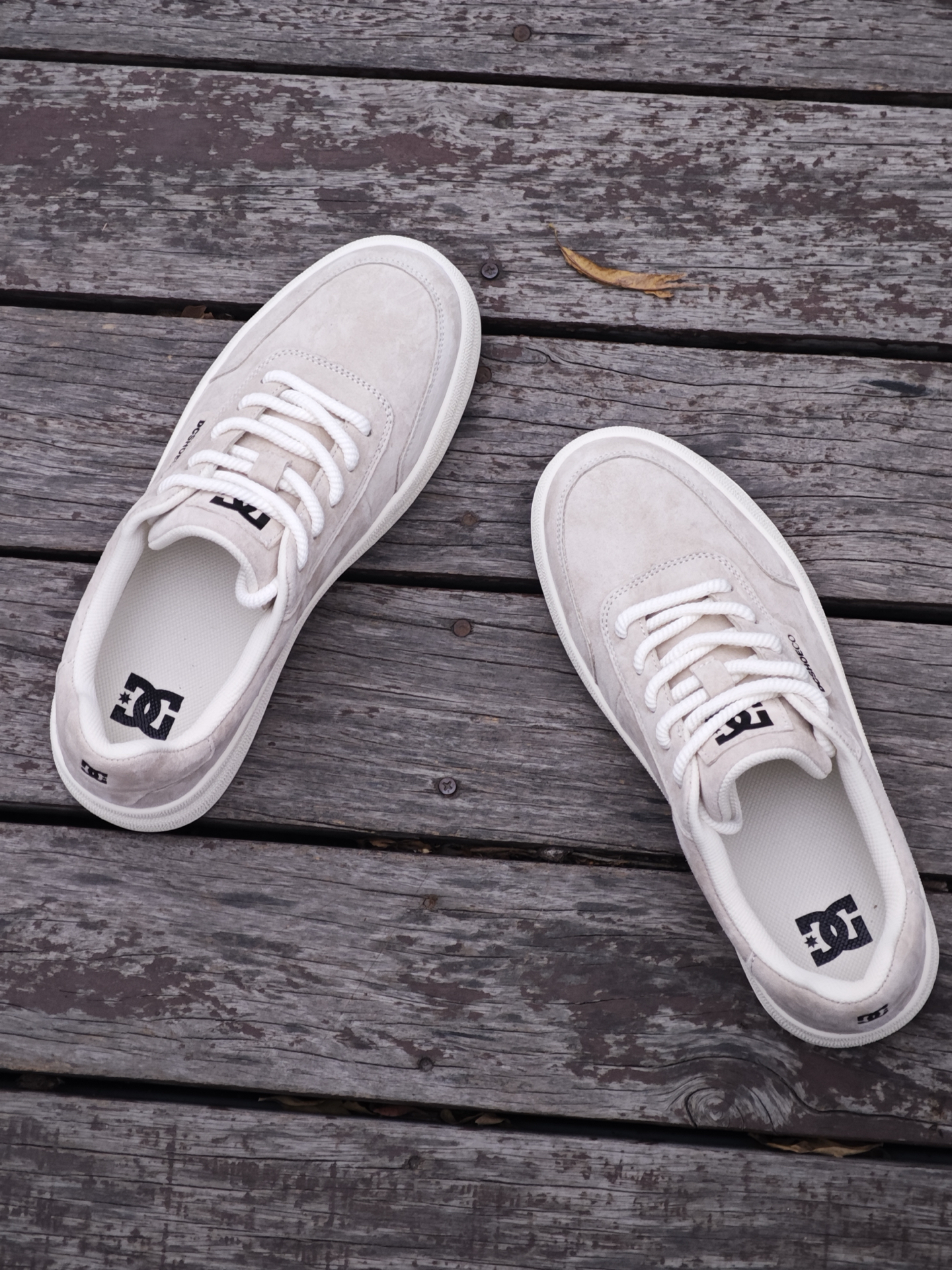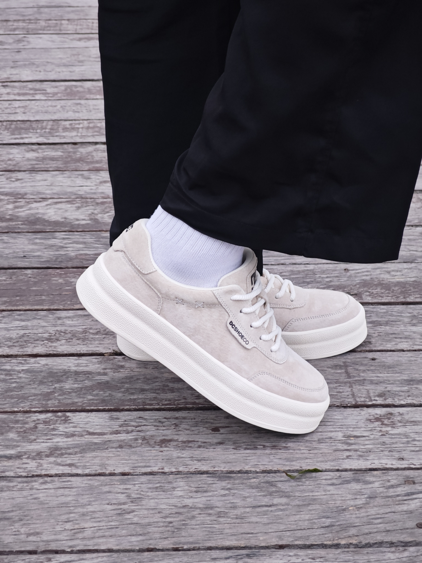 大家好,这里是超酷的啊呜 今天给大家分享一双来自DC板鞋 奶白色麂皮+厚底设计 上脚舒适搭配牛仔裤更显清爽 春天穿也不会闷脚 正常尺码就可以了,不偏码