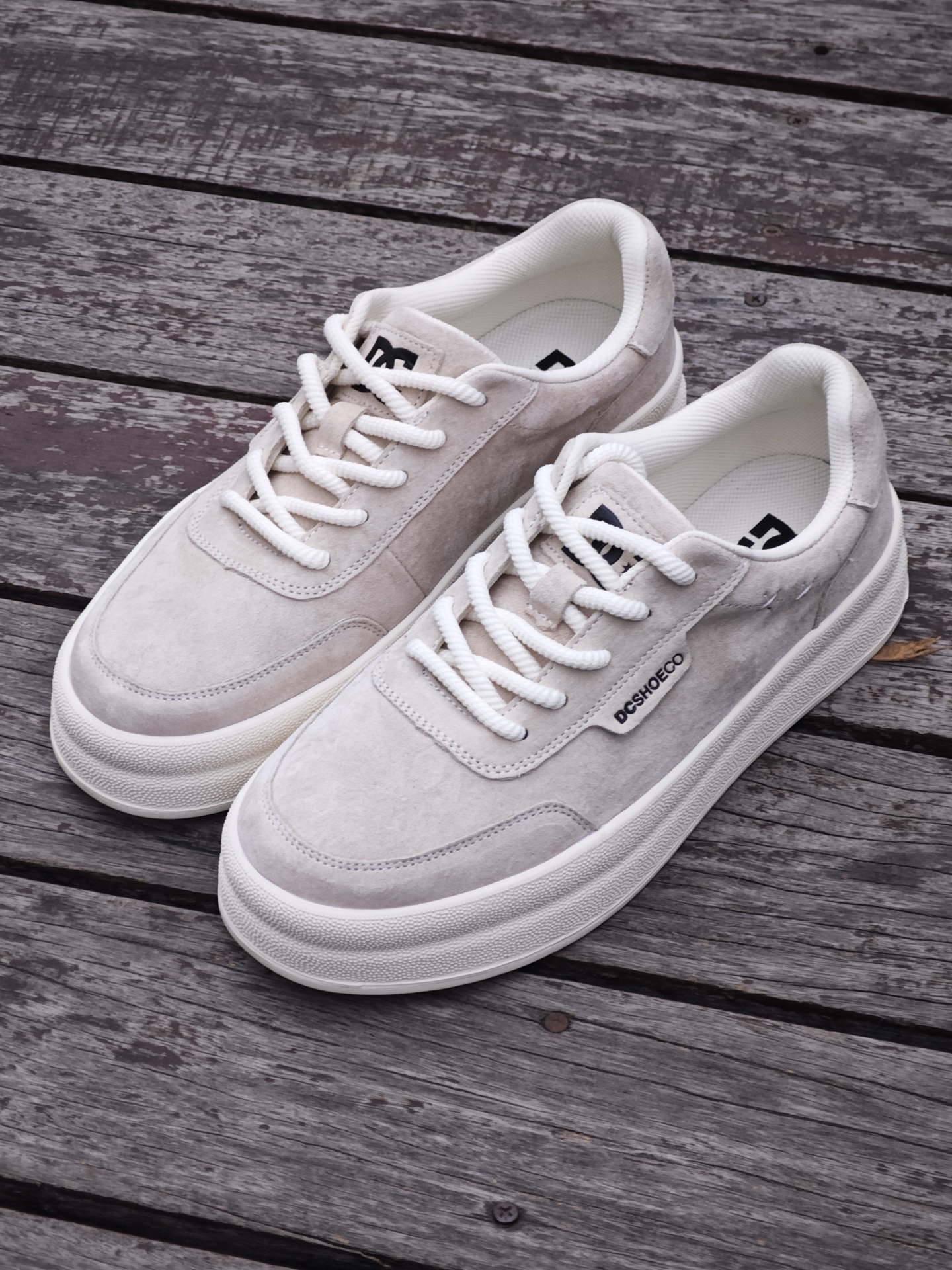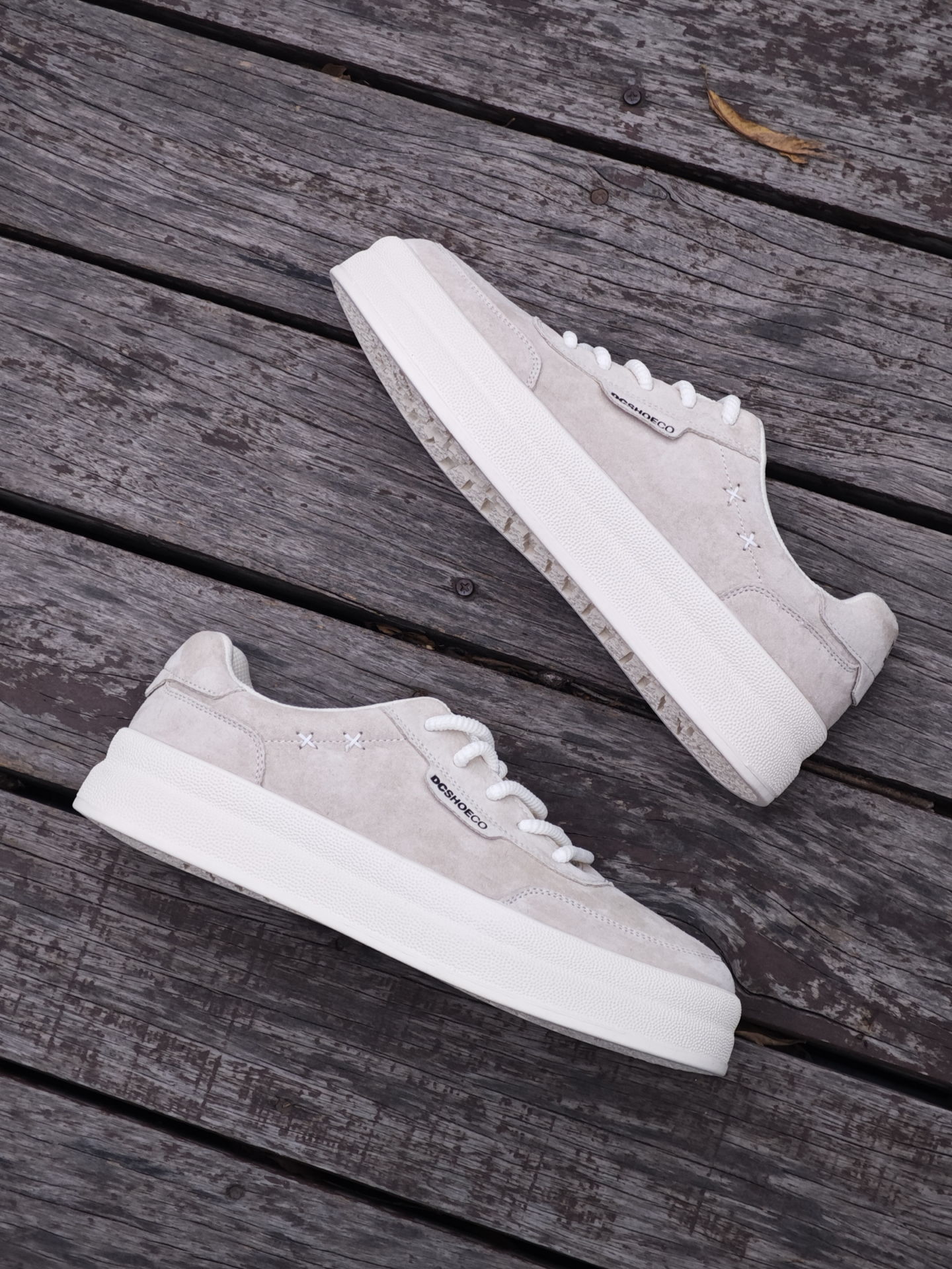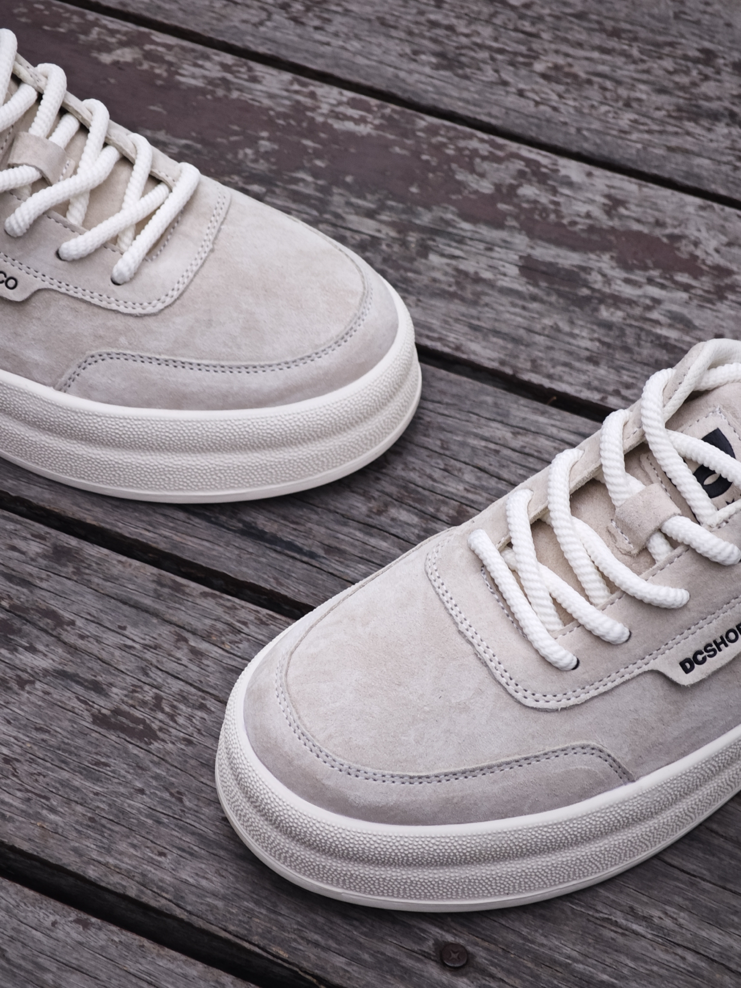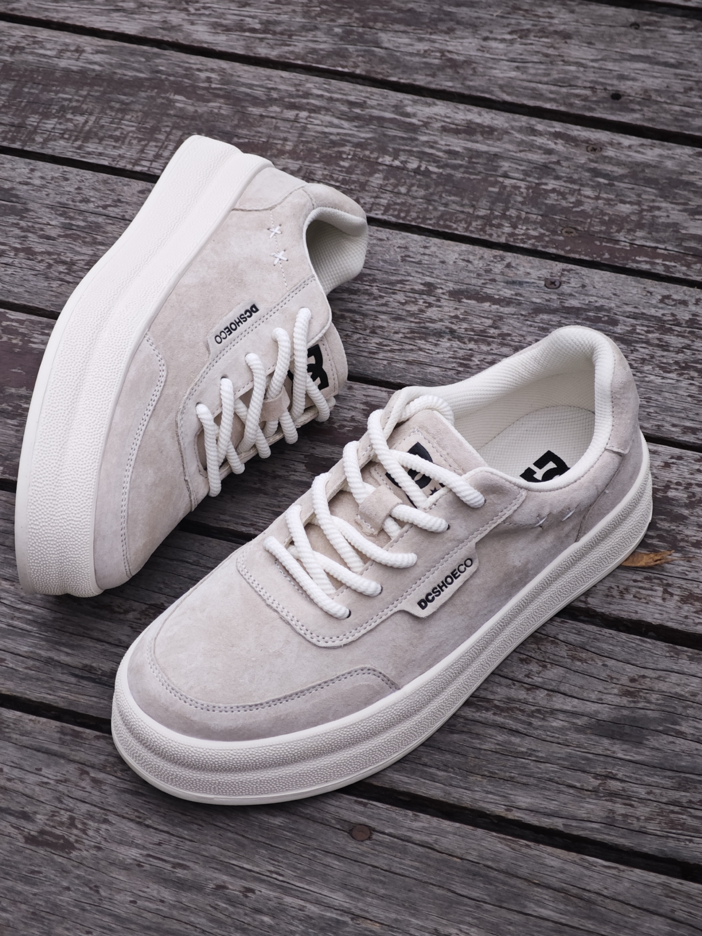 大家好,这里是超酷的啊呜 今天给大家分享一双来自DC板鞋 奶白色麂皮+厚底设计 上脚舒适搭配牛仔裤更显清爽 春天穿也不会闷脚 正常尺码就可以了,不偏码