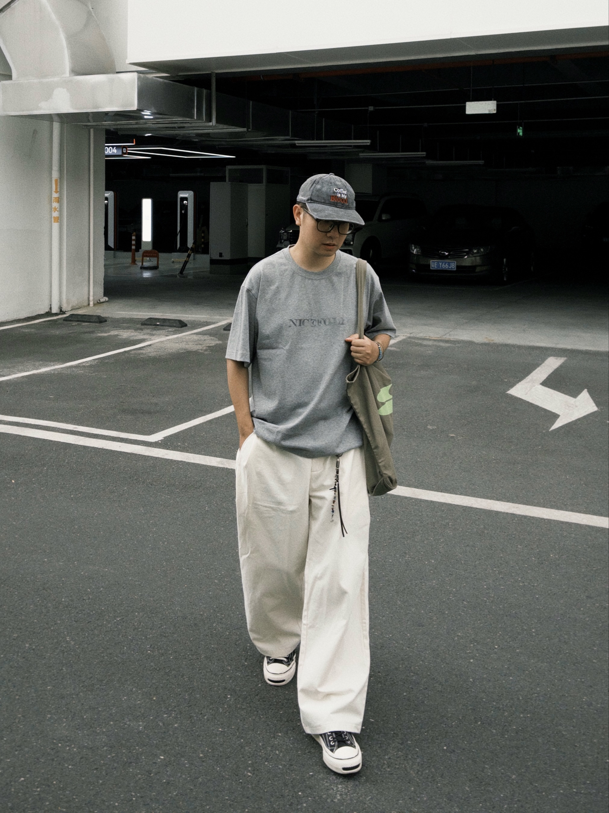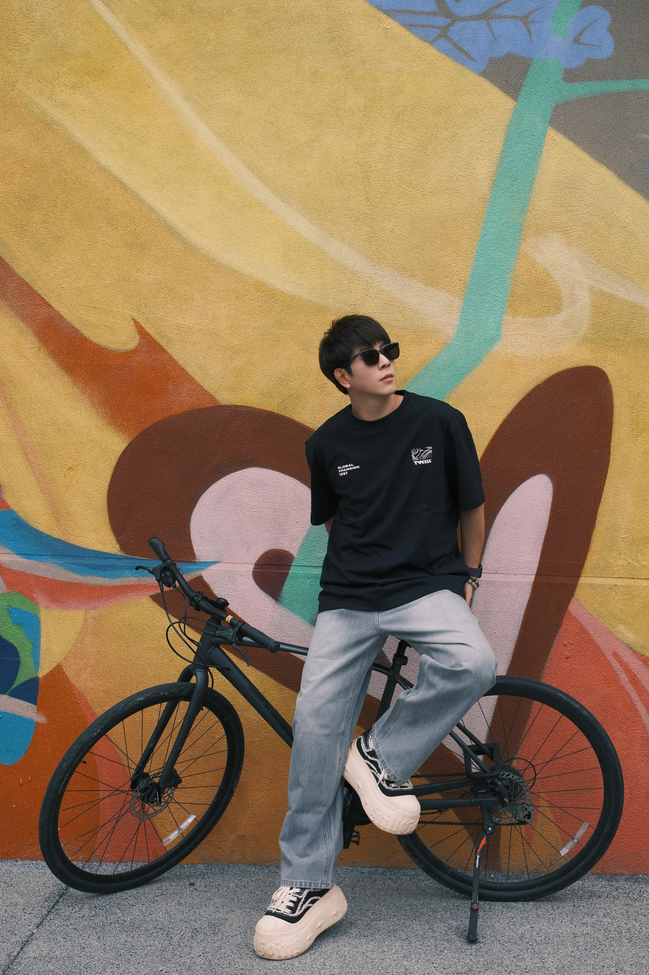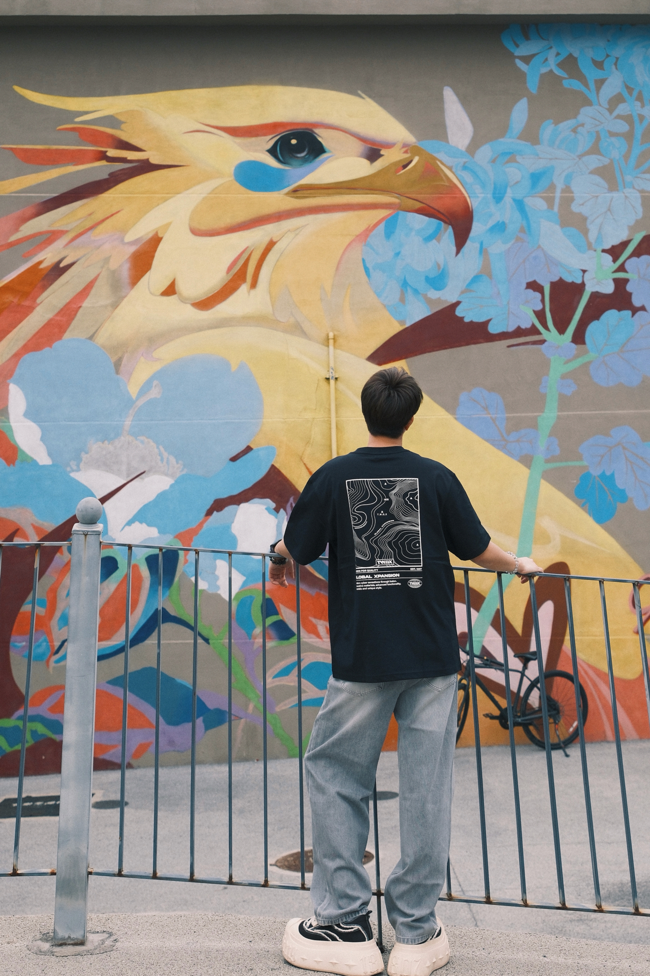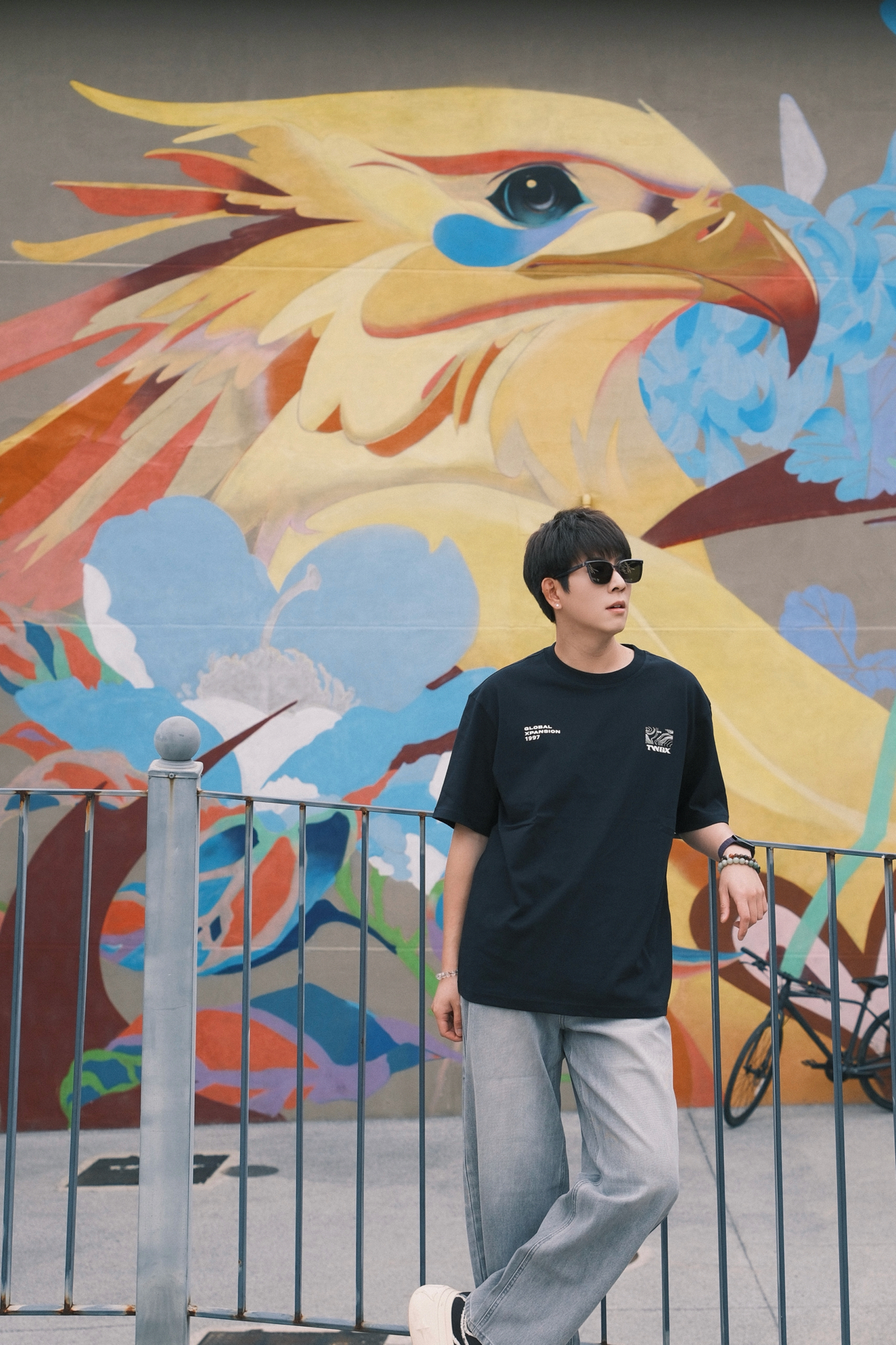 黑T+浅灰牛仔裤的经典组合,是春天最不用费脑的穿搭公式。 Teenie Weenie Men这件常青系列短袖,凉感面料贴肤又透气,胸前的字母印花低调又有细节,背后的等高线图案还藏着一点街头小心思。 搭配同品牌的水洗做旧牛仔裤,宽松微阔的版型刚好修饰腿型,老钱风的质感和复古调性,随便靠在涂鸦墙、倚着单车都很出片。 不用刻意凹造型,墨镜一戴,松弛感直接拉满。 春天就该这样,简单、舒服,又带着点不费力...