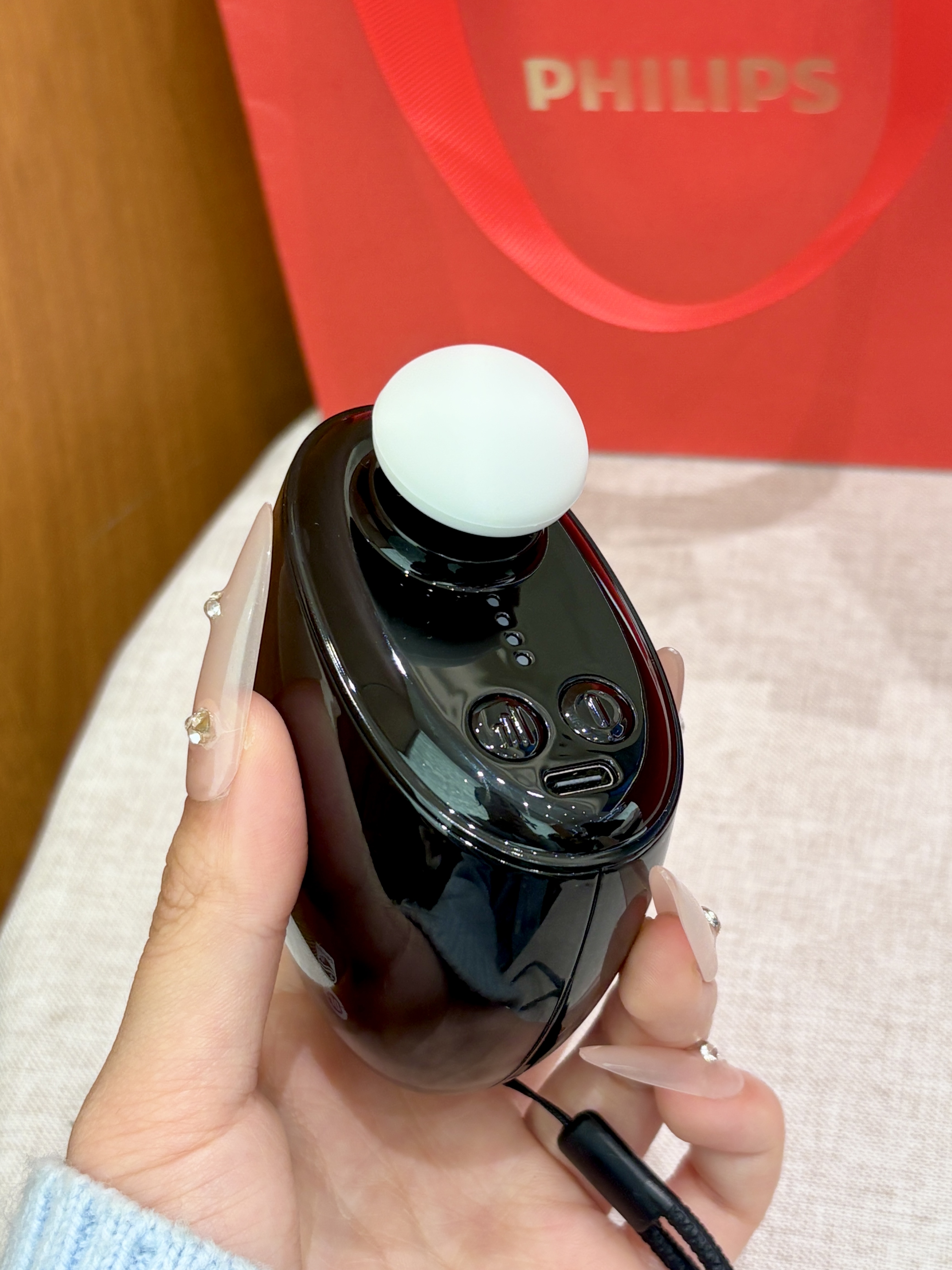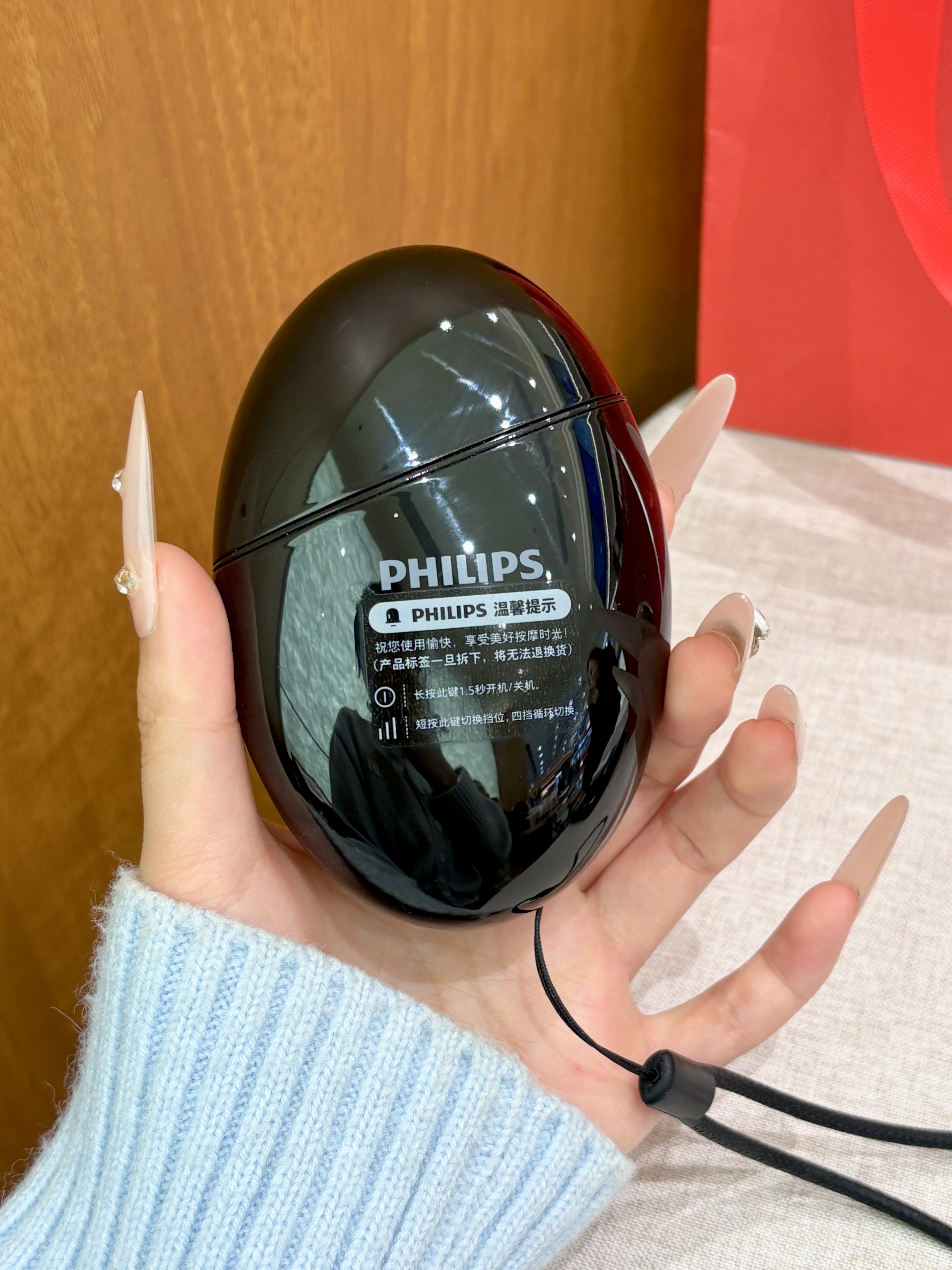 素介个飞利浦新品小鹅蛋筋膜枪 第一眼就被惊艳到了 谁敢信筋膜枪已经是进化到如此小巧了 别看他小小一个 力度还挺大的 里面还送了两个按摩头✨ 面部SPA仪➕头部按摩仪➕松肌筋膜枪 特别是运动完就可以按一按了可素服啦 而且基本上没啥声音 有档次可以调节 用起来也还蛮静音滴 我觉得介个送给女孩子尊嘟hin实用~🥰
