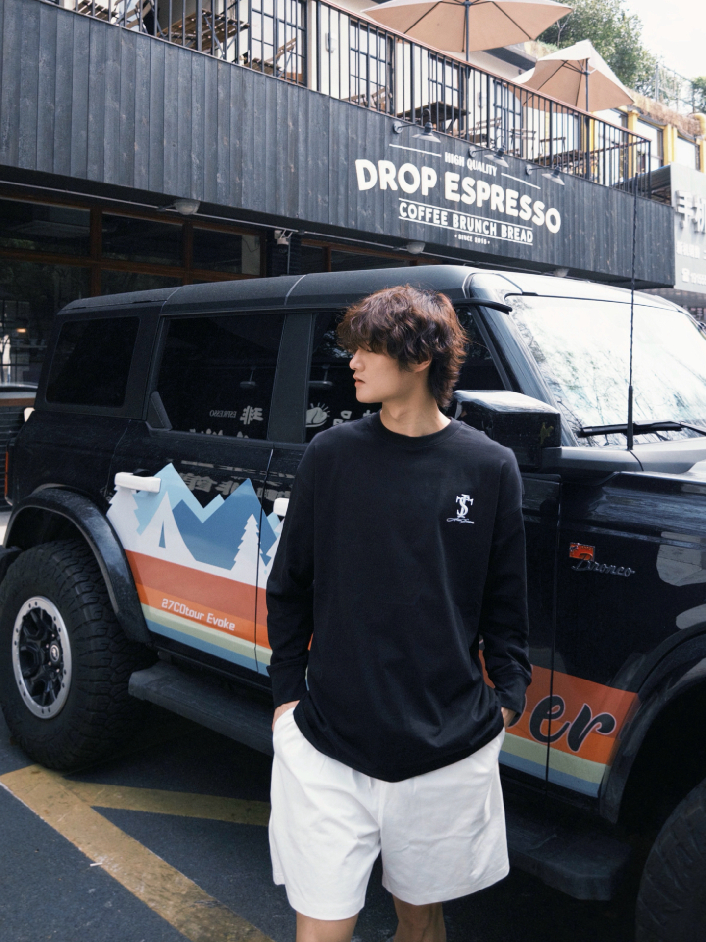 春夏就爱这种简约黑长袖🤍 面料是软糯的纯棉,摸起来巨舒服,贴身穿不扎 宽松落肩版型,上身酷酷的 胸前小logo设计低调高级,不浮夸 日常搭白短裤、牛仔裤都好看,懒人出门一套搞定~