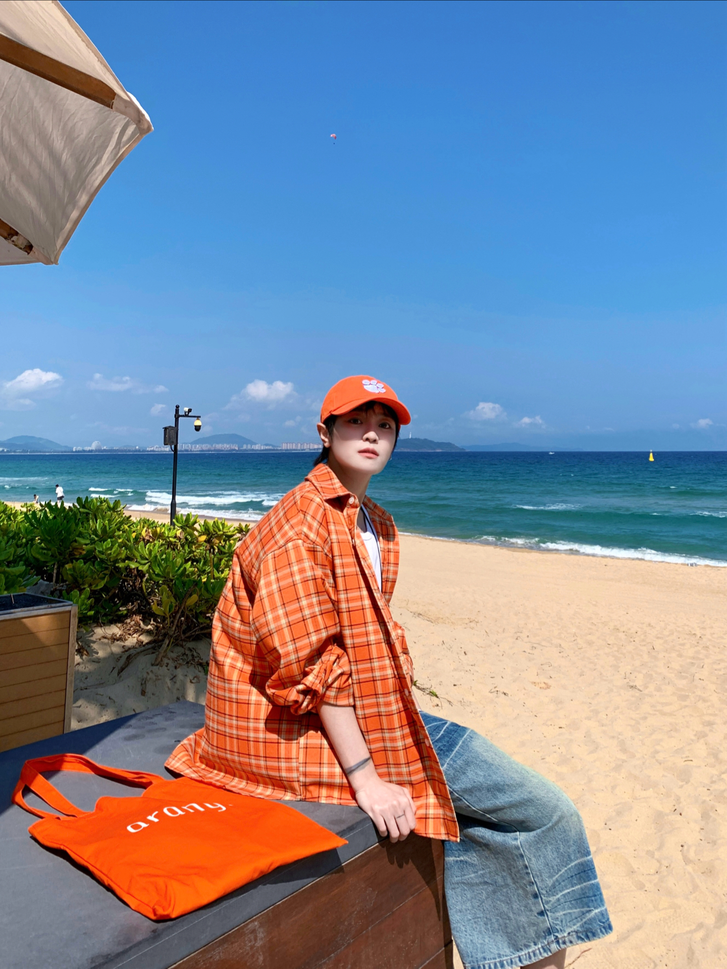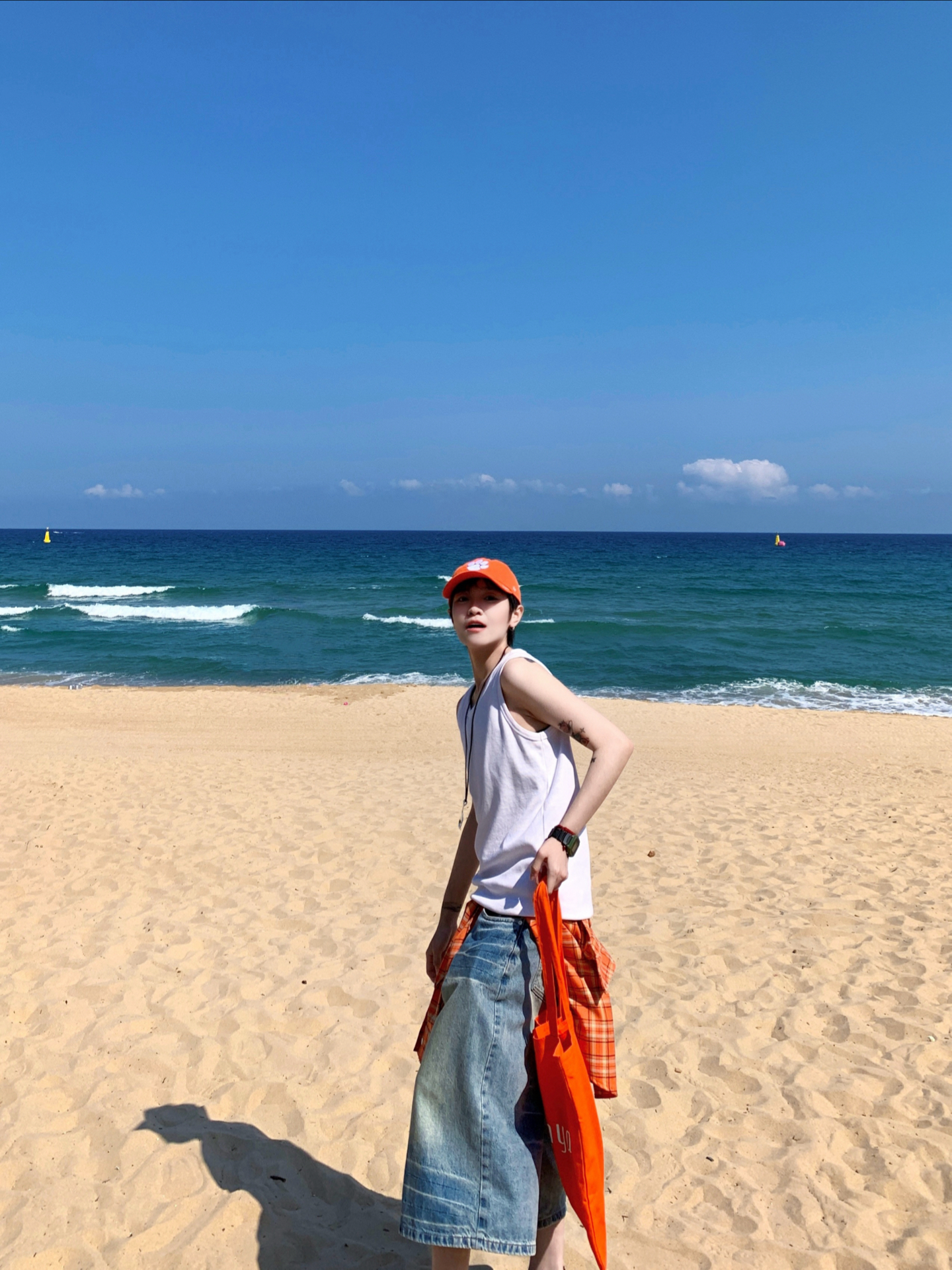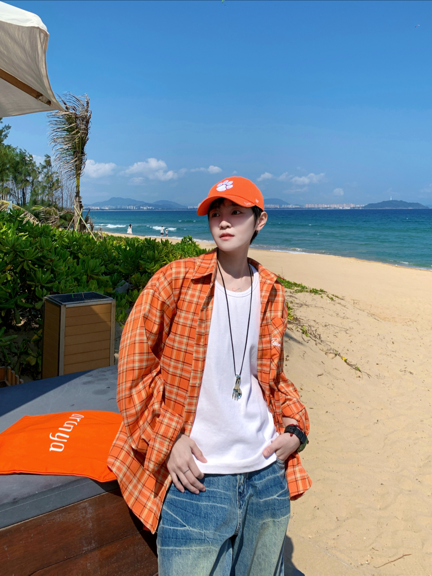 👔 GANG 🎽 SMALL TOWN KID 🩳 GGON 🧢 Era 旅游多巴胺日记📔 去海边一定要穿橘色🍊衬衫! 少年感十足又显白 搭配一条七分牛仔裤 行走的多巴胺吸睛穿搭 🏝️松弛感的同时出片也很有氛围感