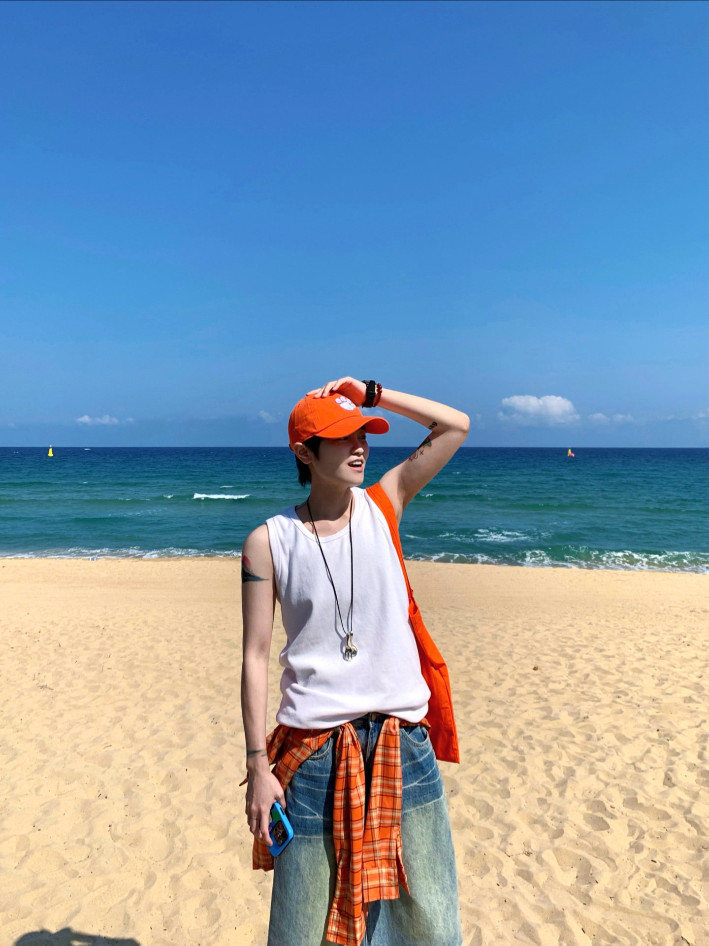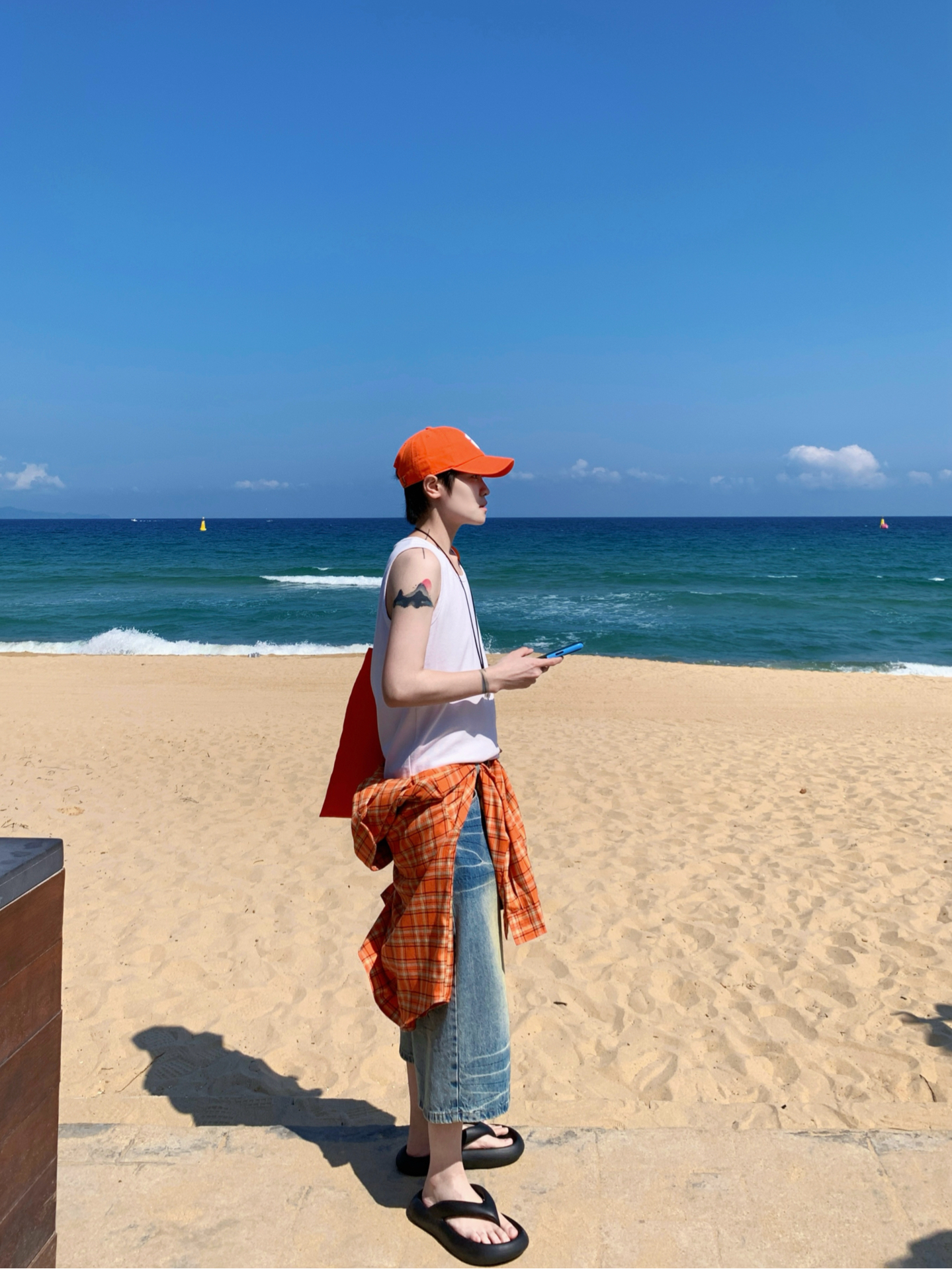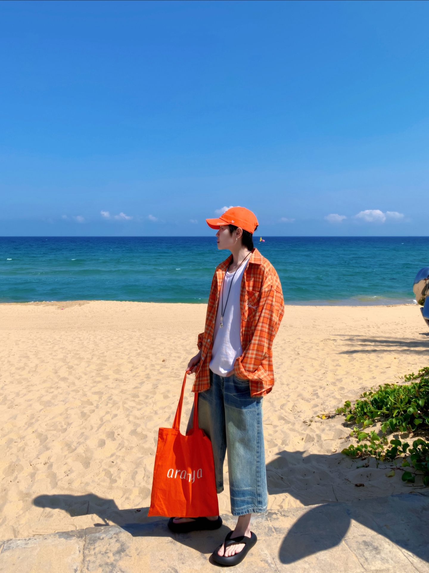 👔 GANG 🎽 SMALL TOWN KID 🩳 GGON 🧢 Era 旅游多巴胺日记📔 去海边一定要穿橘色🍊衬衫! 少年感十足又显白 搭配一条七分牛仔裤 行走的多巴胺吸睛穿搭 🏝️松弛感的同时出片也很有氛围感